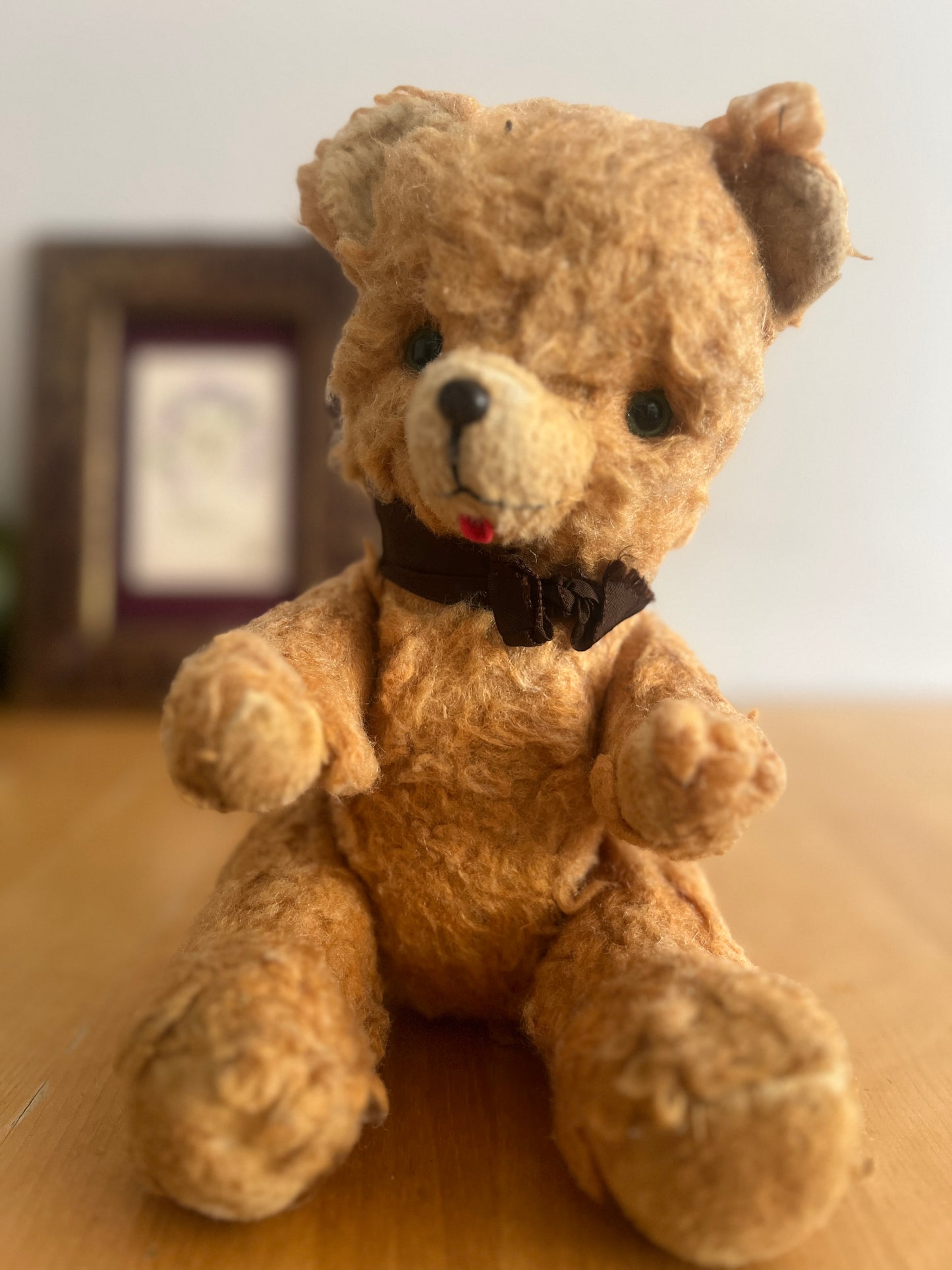 キャメルカラーのふわふわとした毛並みがかわいらしい、ヴィンテージのクマのぬいぐるみです