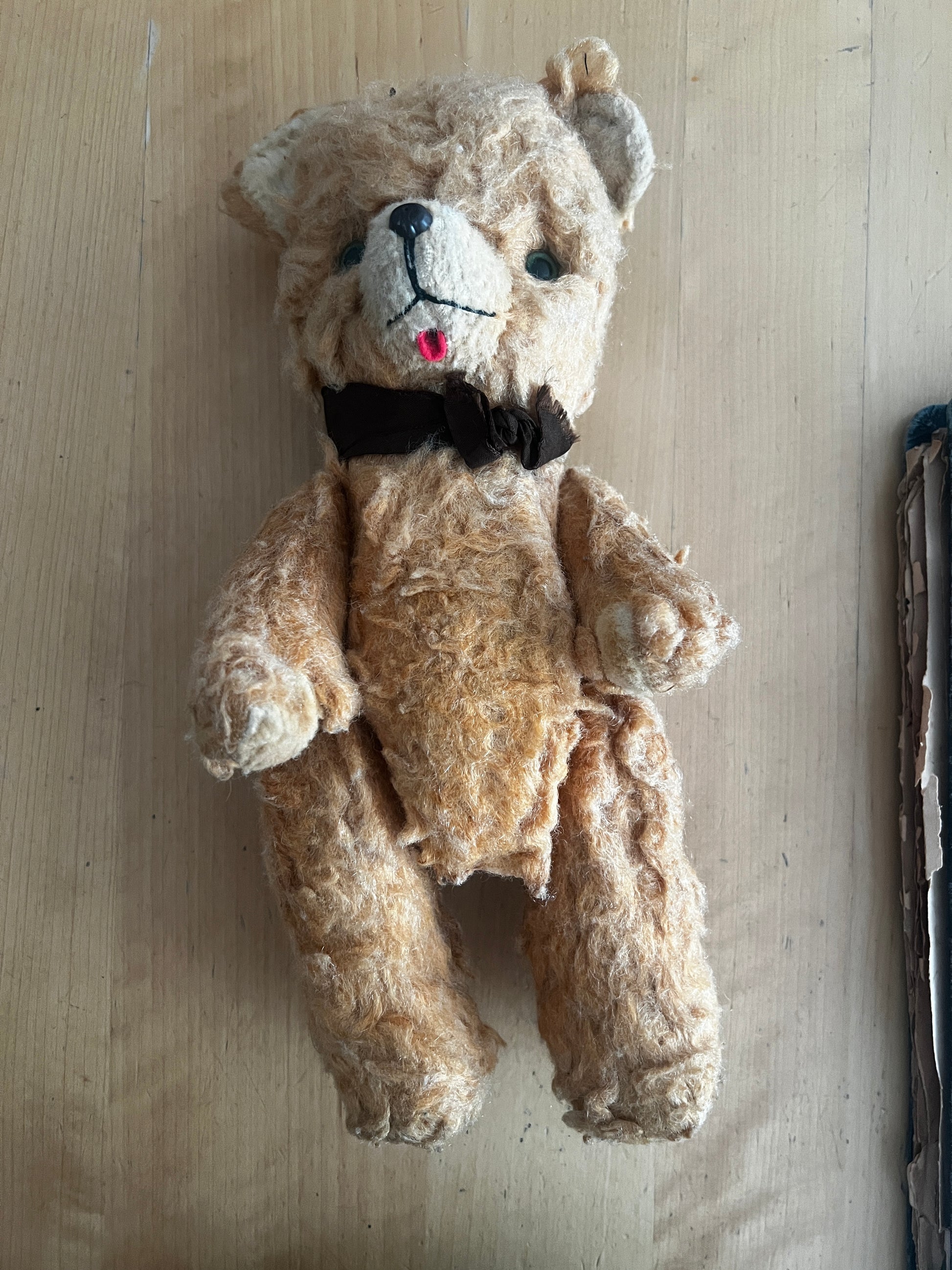 長く大切にされてきたぬいぐるみならではの、温かみと味わいが感じられる一品です