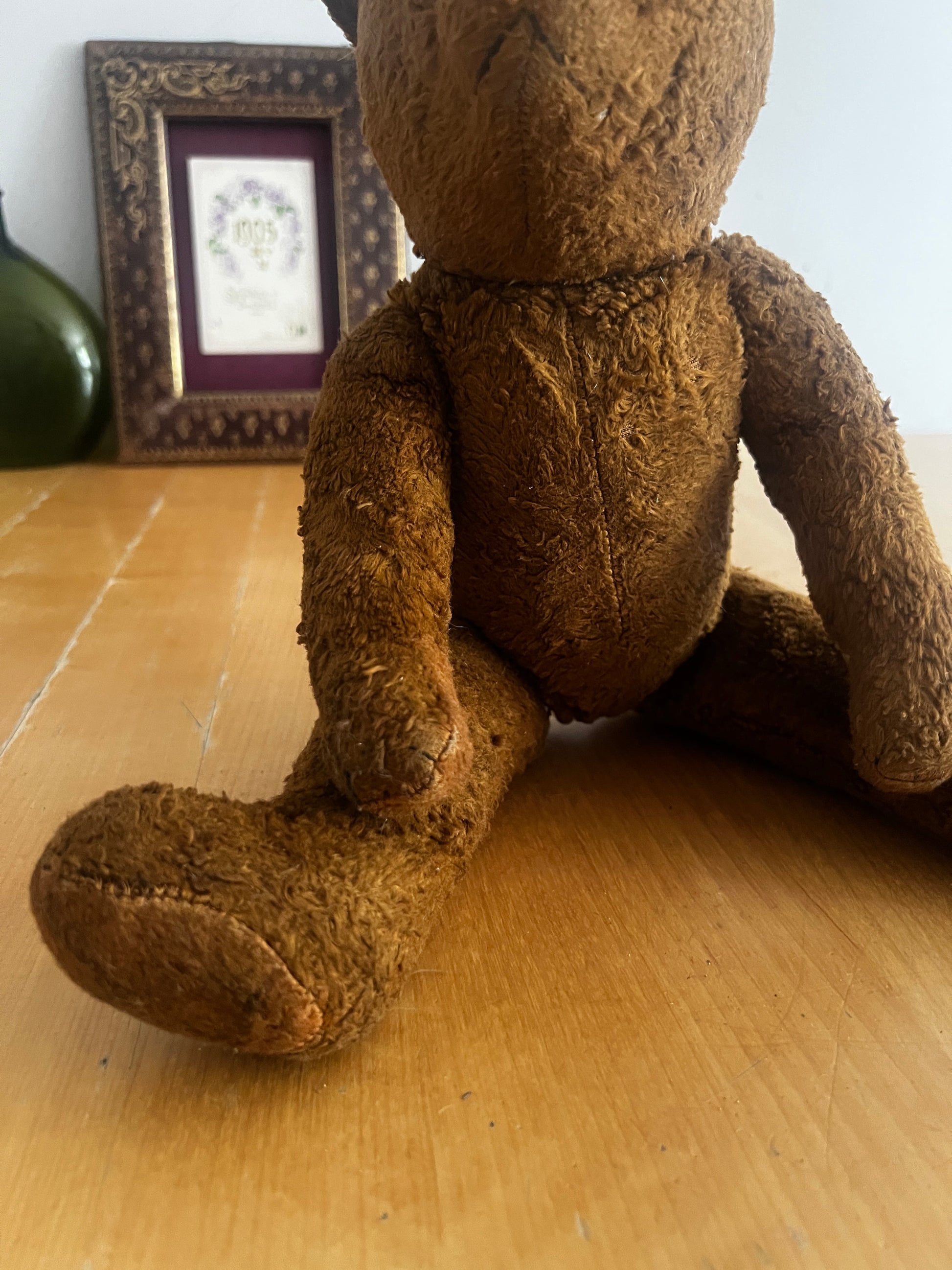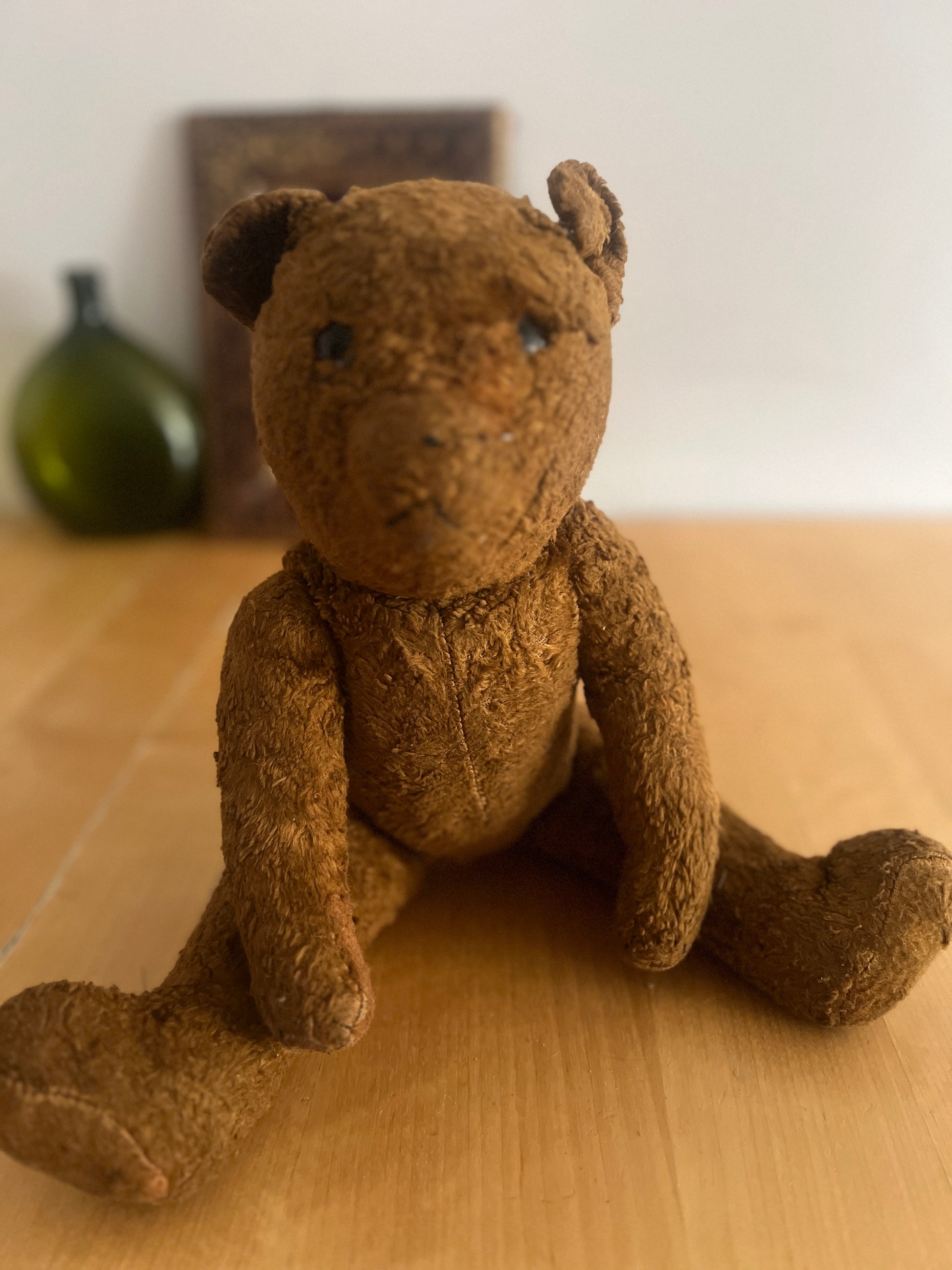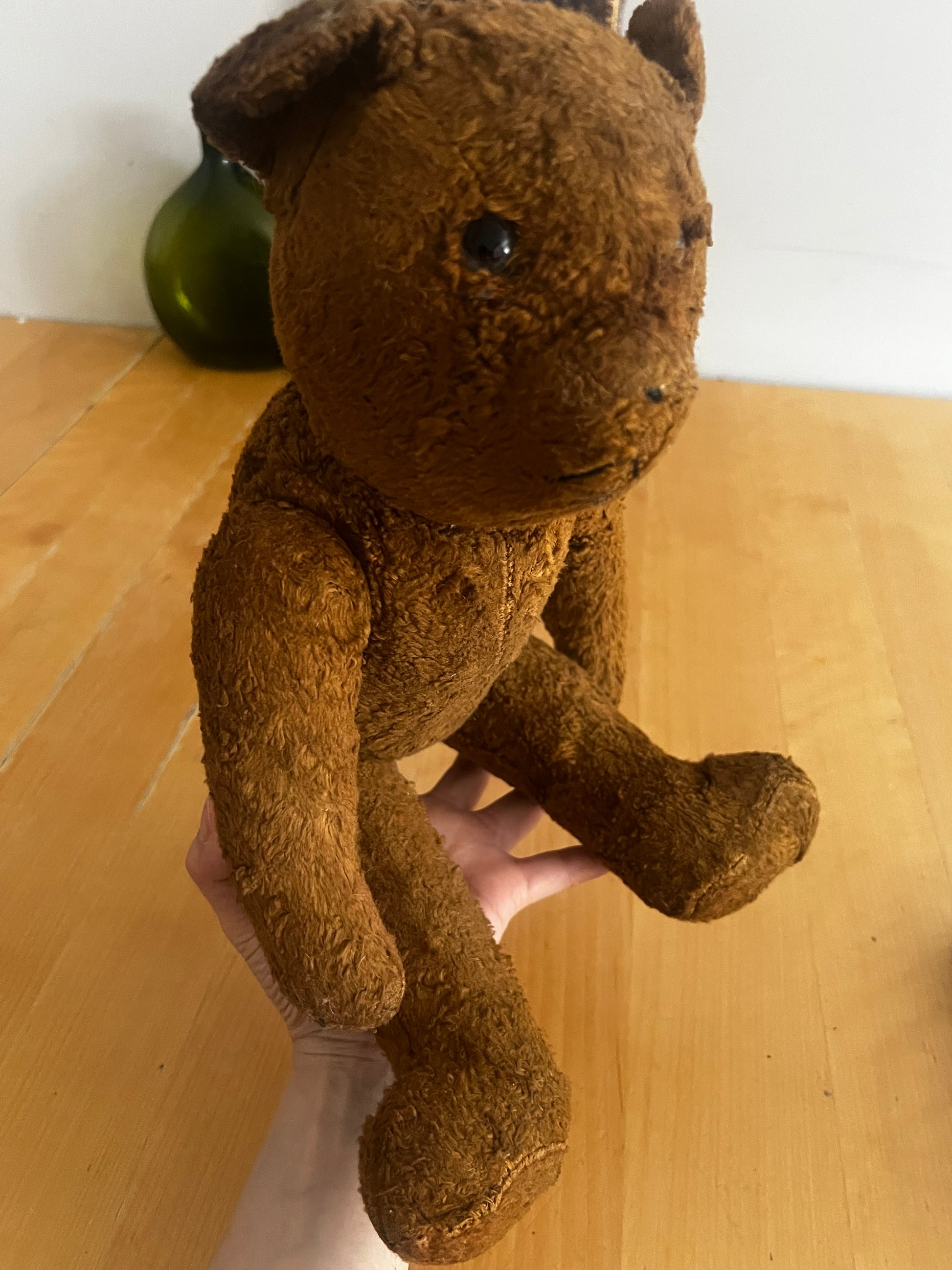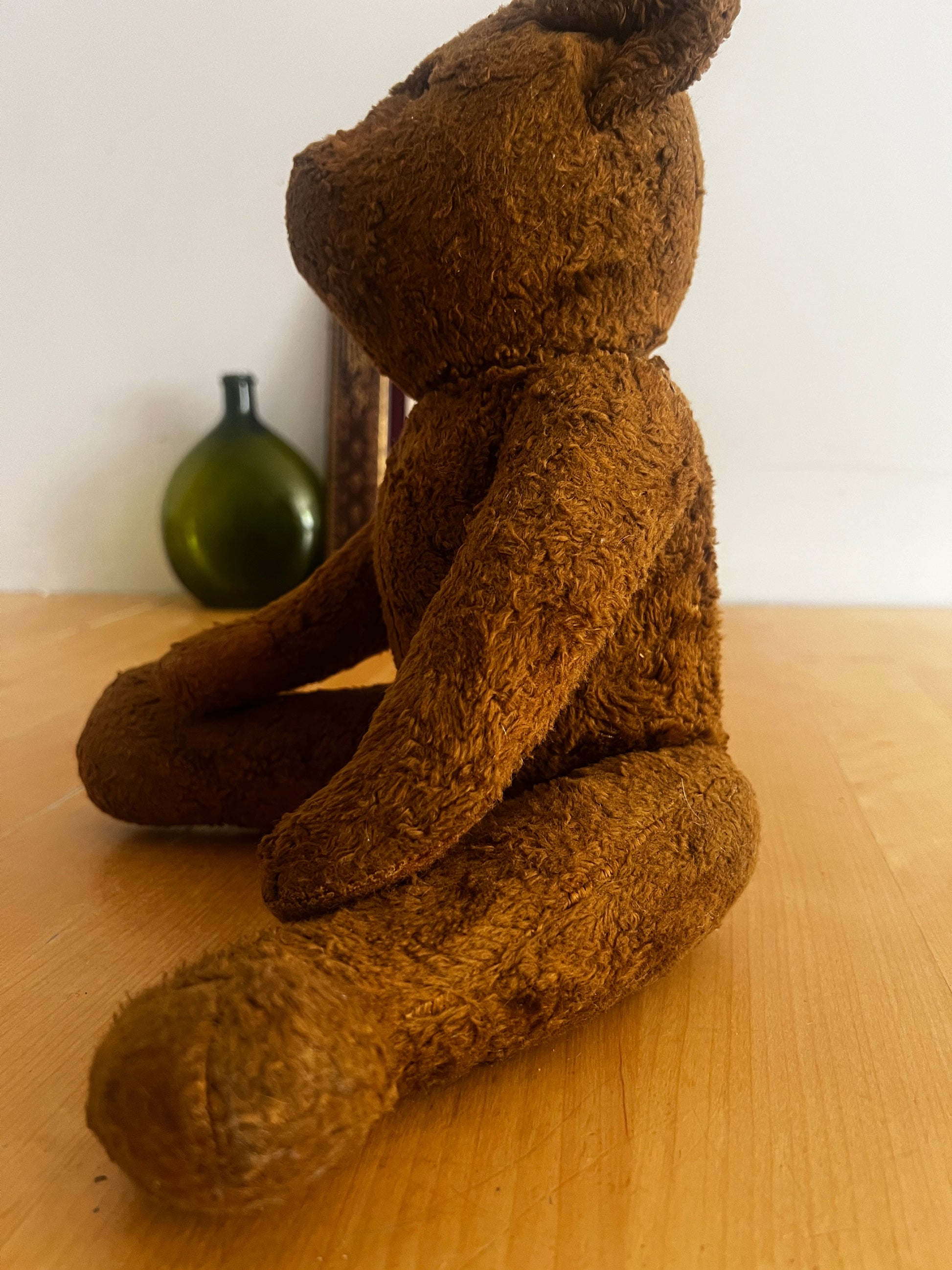 深みのあるブラウンカラーが印象的な、ヴィンテージのクマのぬいぐるみです