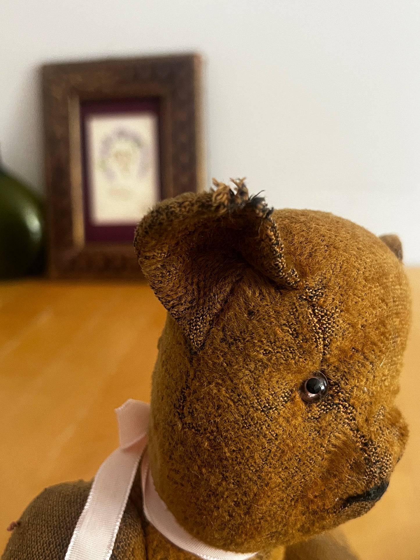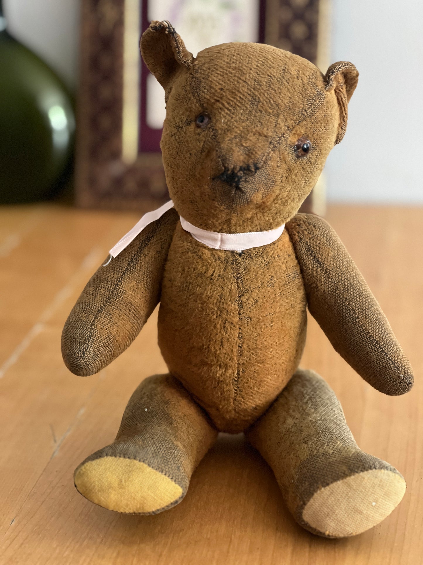 耳に小さなダメージがあり、全体的に経年による消耗が見られますが、それもまた味わいとして感じられる一品
