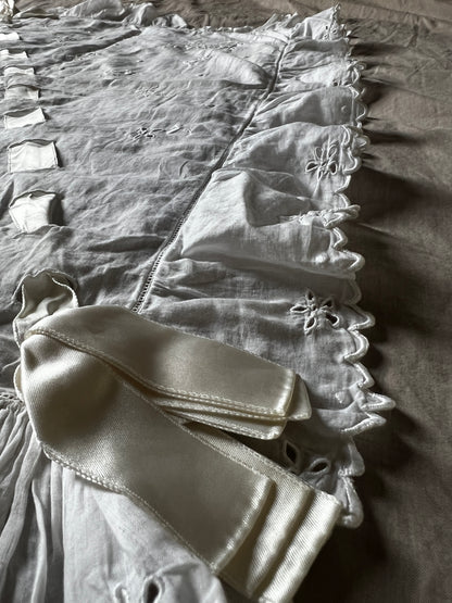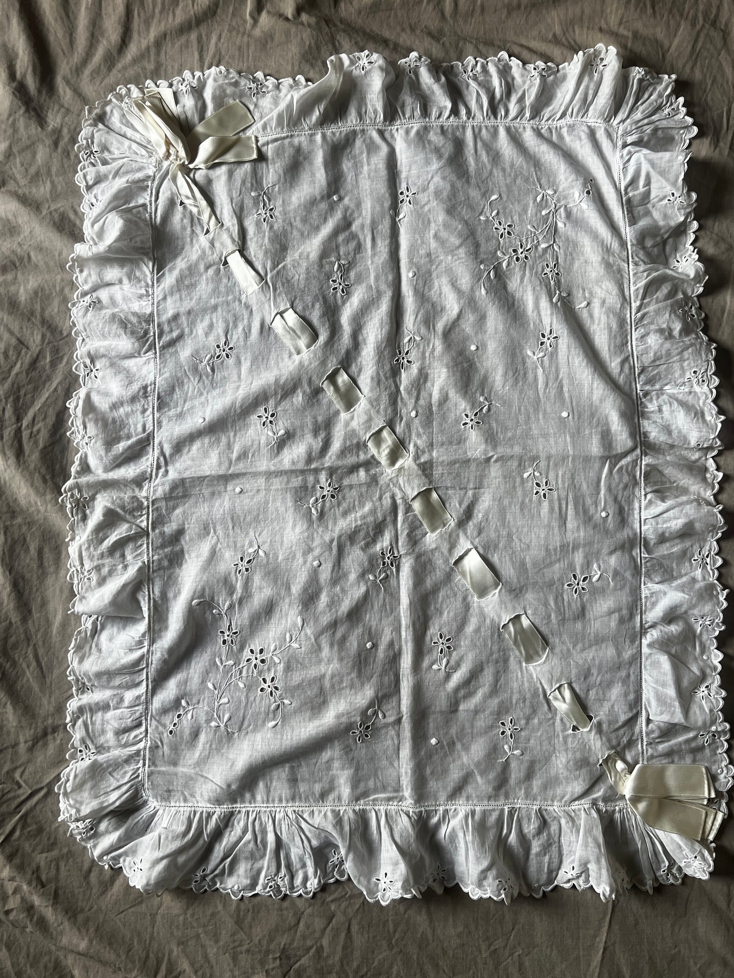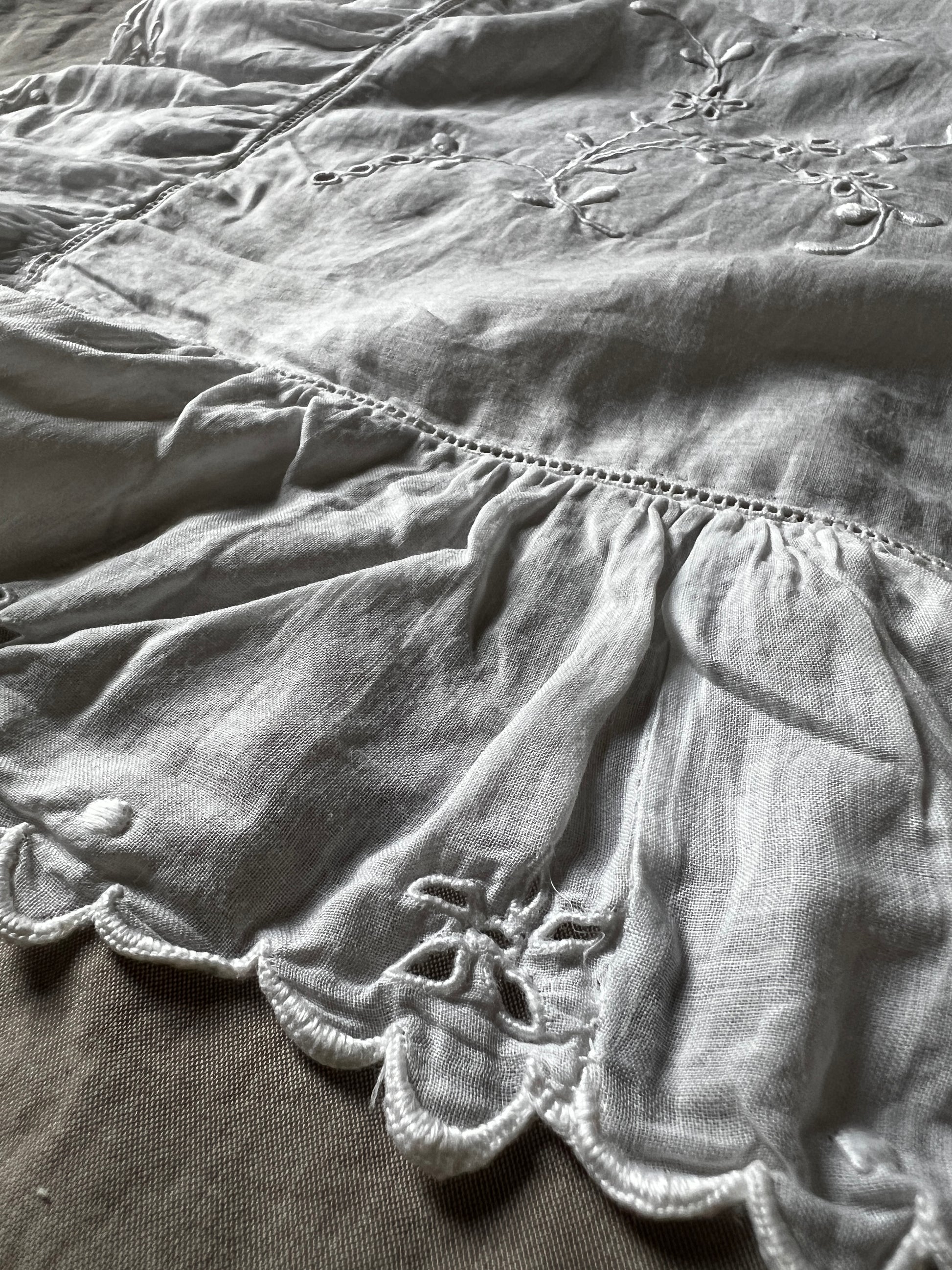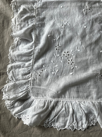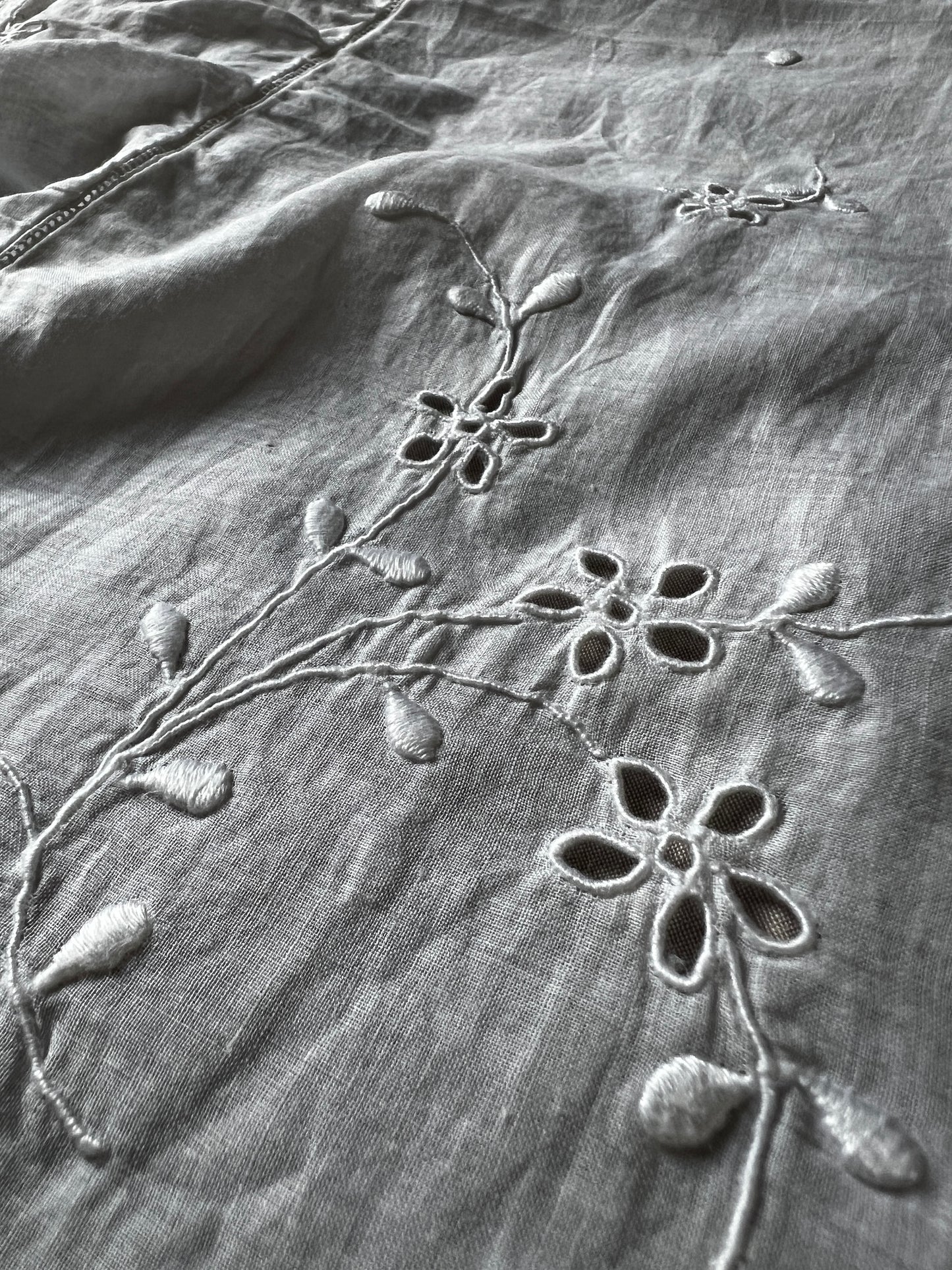 薄くやわらかなコットン地に白刺繍が施された、繊細でやさしい印象のクロスです