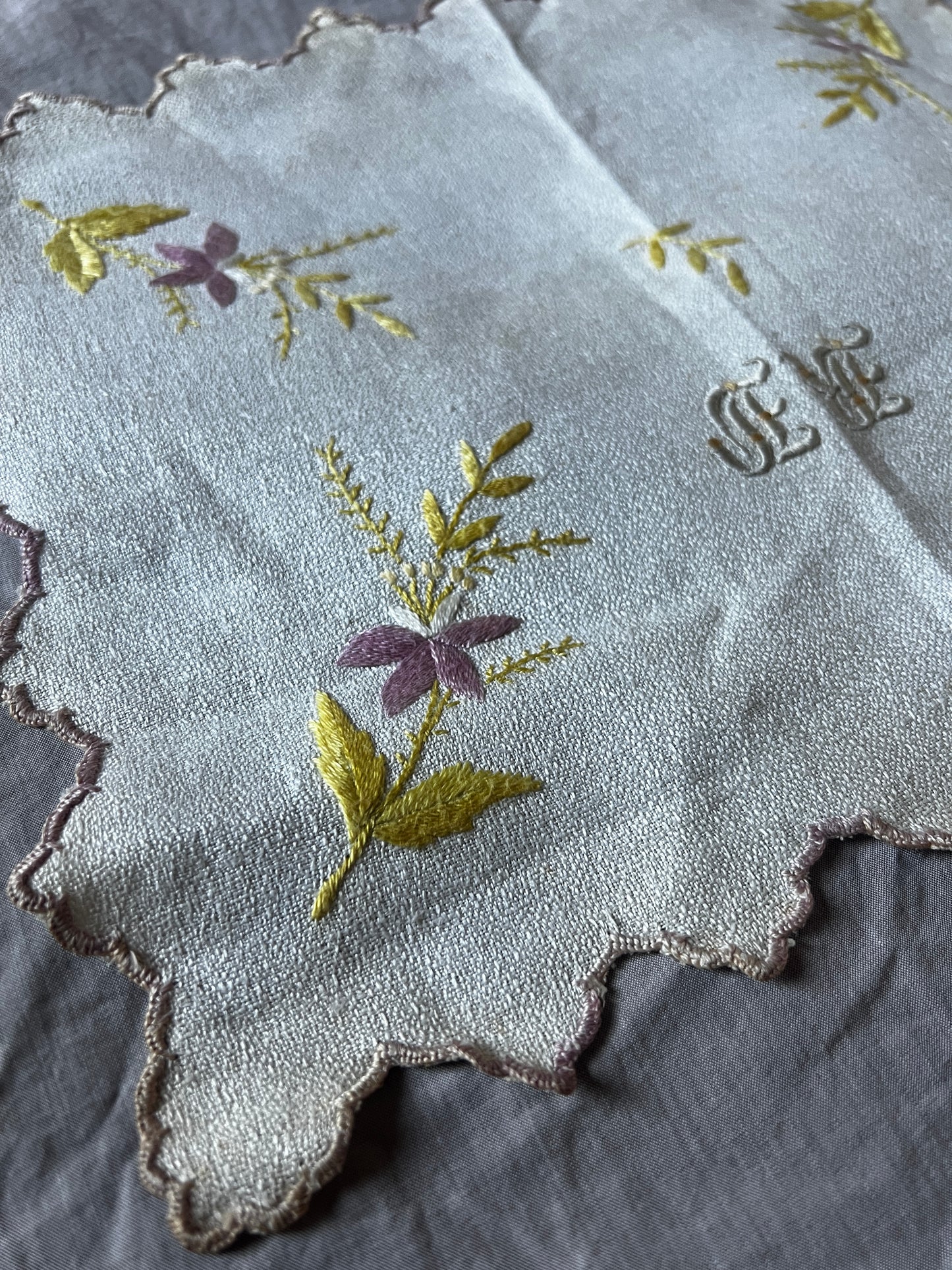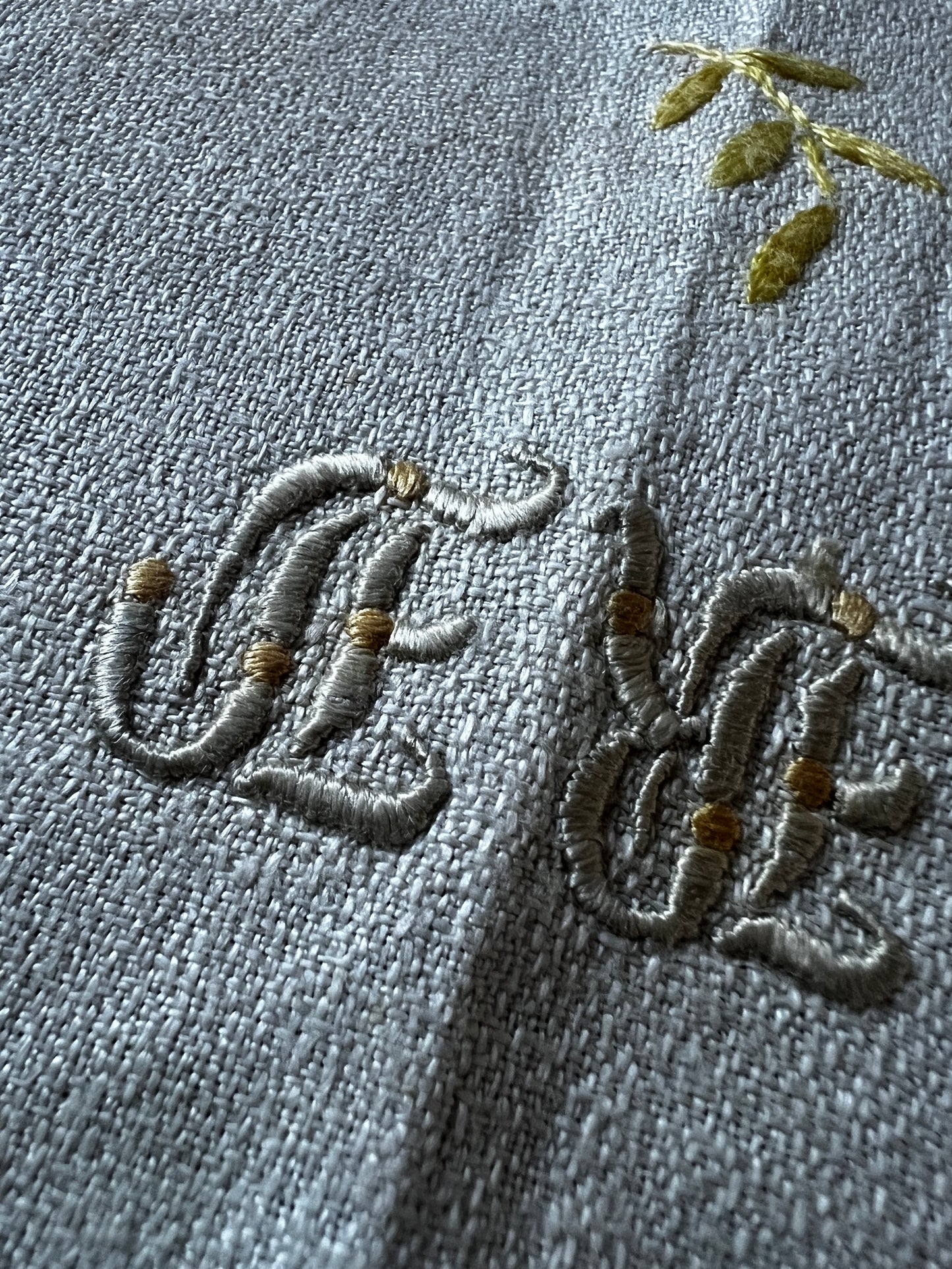 丁寧に仕上げられたモノグラム刺繍も味わい深く、全体に上品な印象を添えています