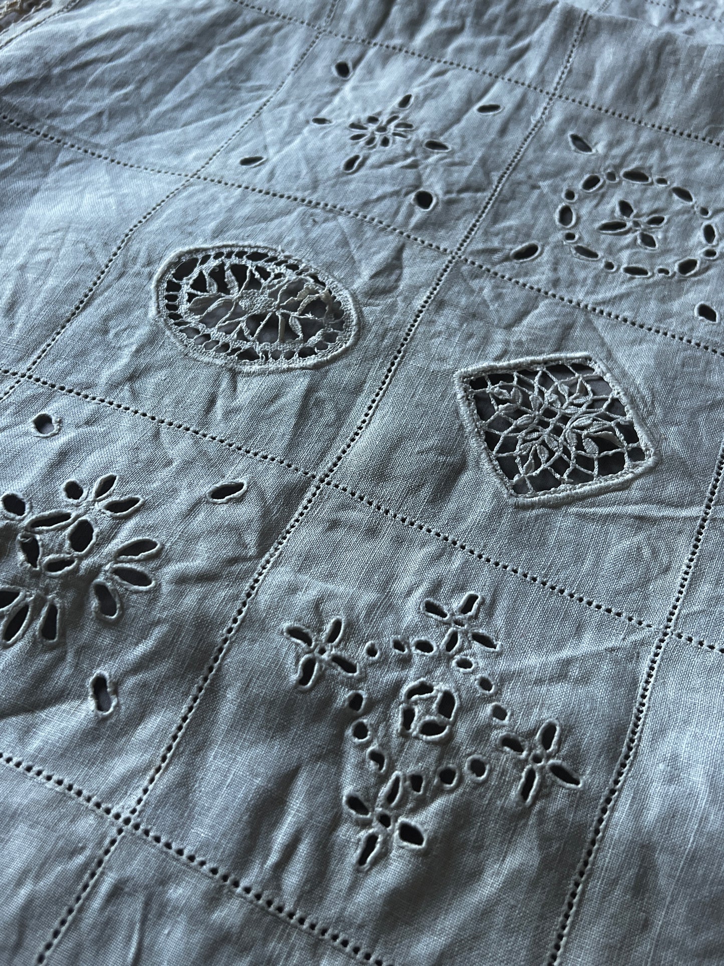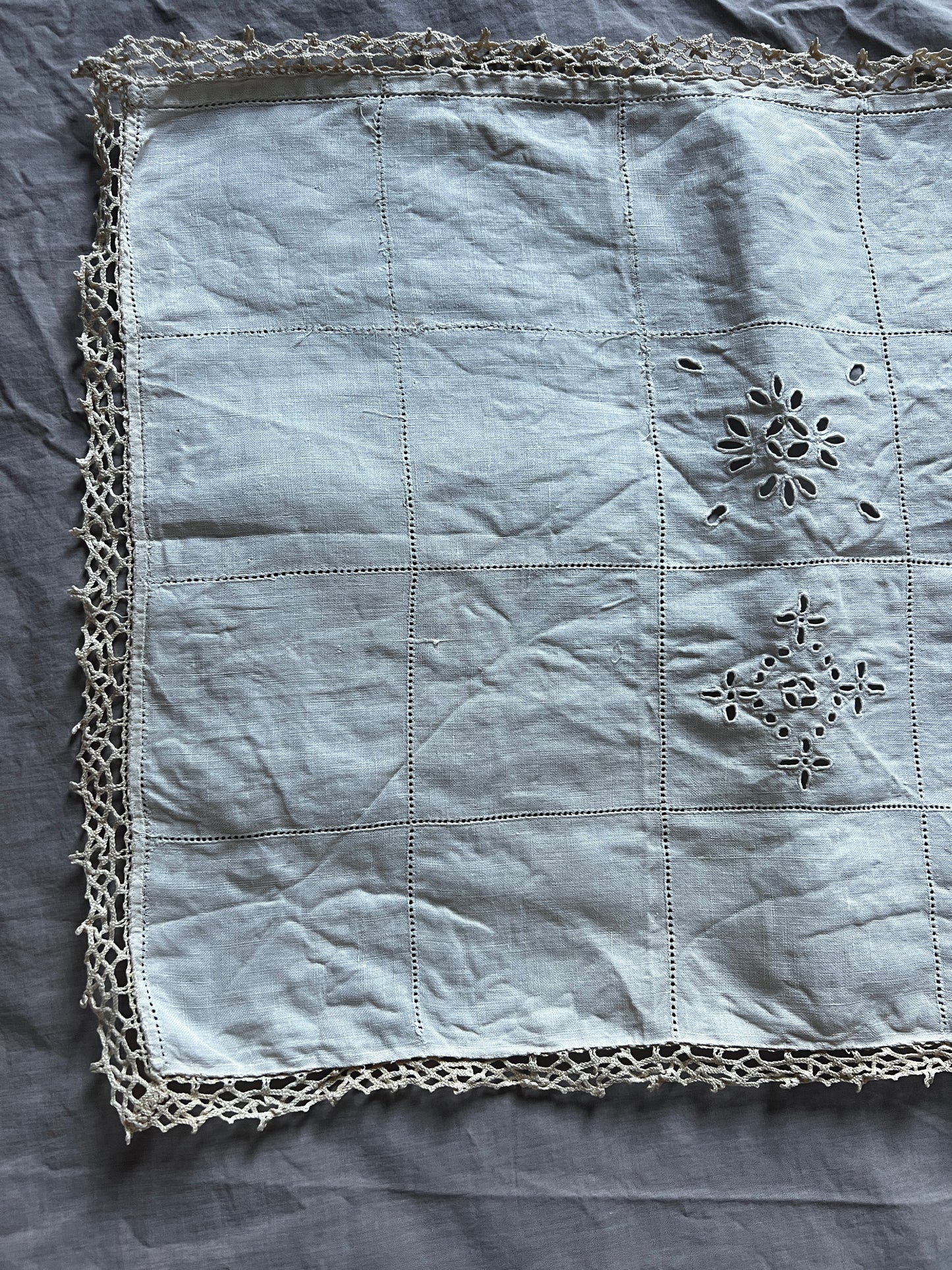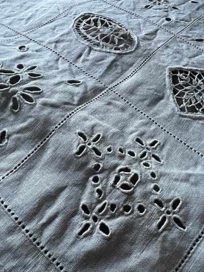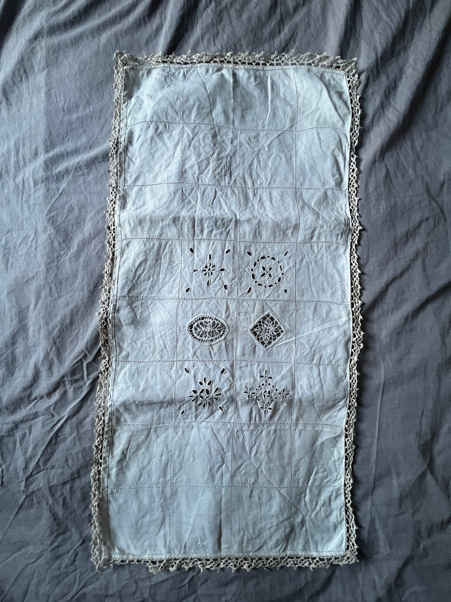 刺繍とレースが中央にバランスよく配置された長方形のクロスです