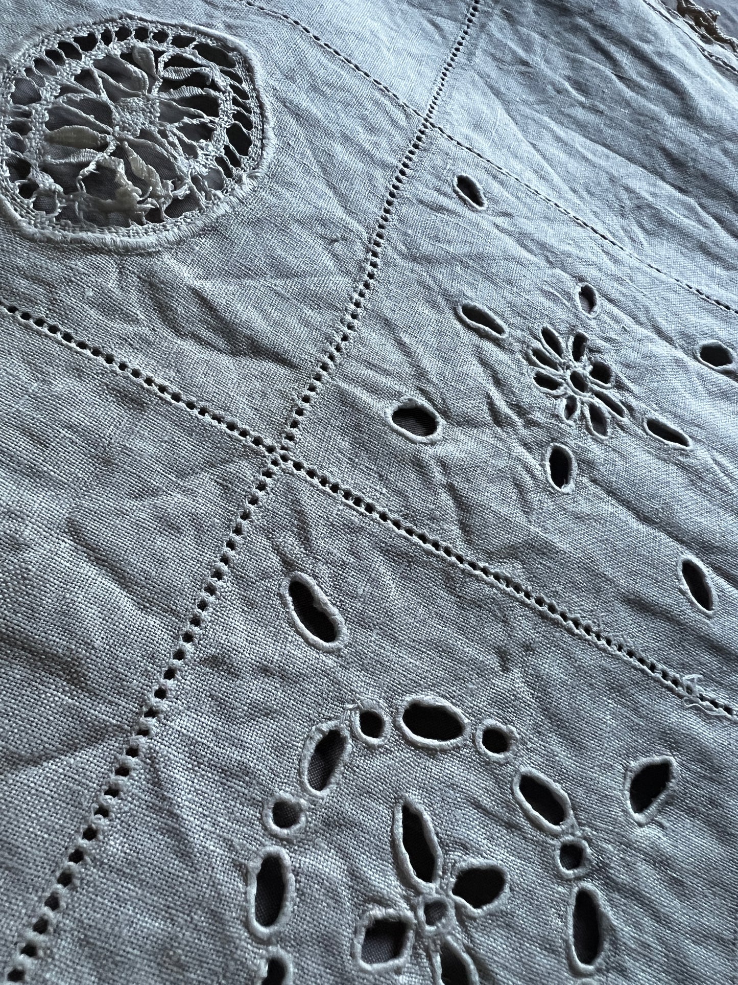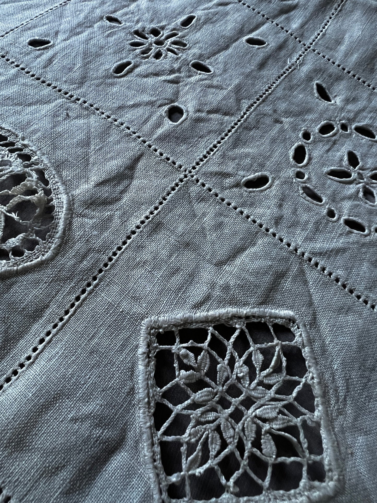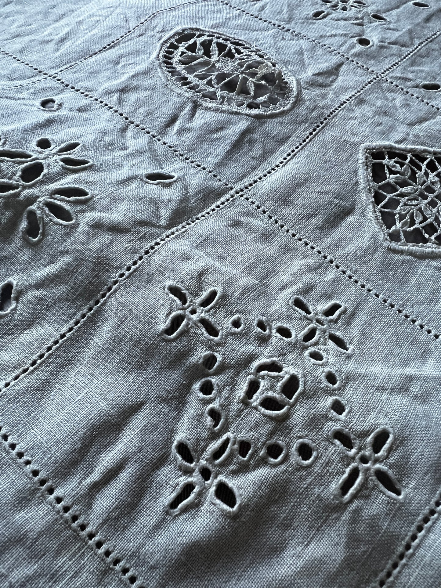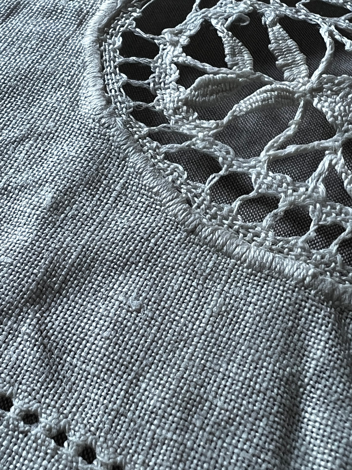 刺繍とレースが中央にバランスよく配置された長方形のクロスです