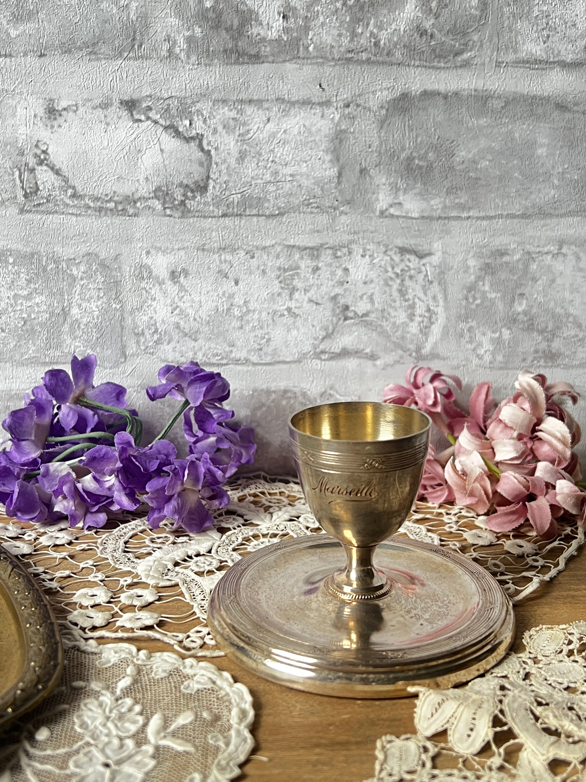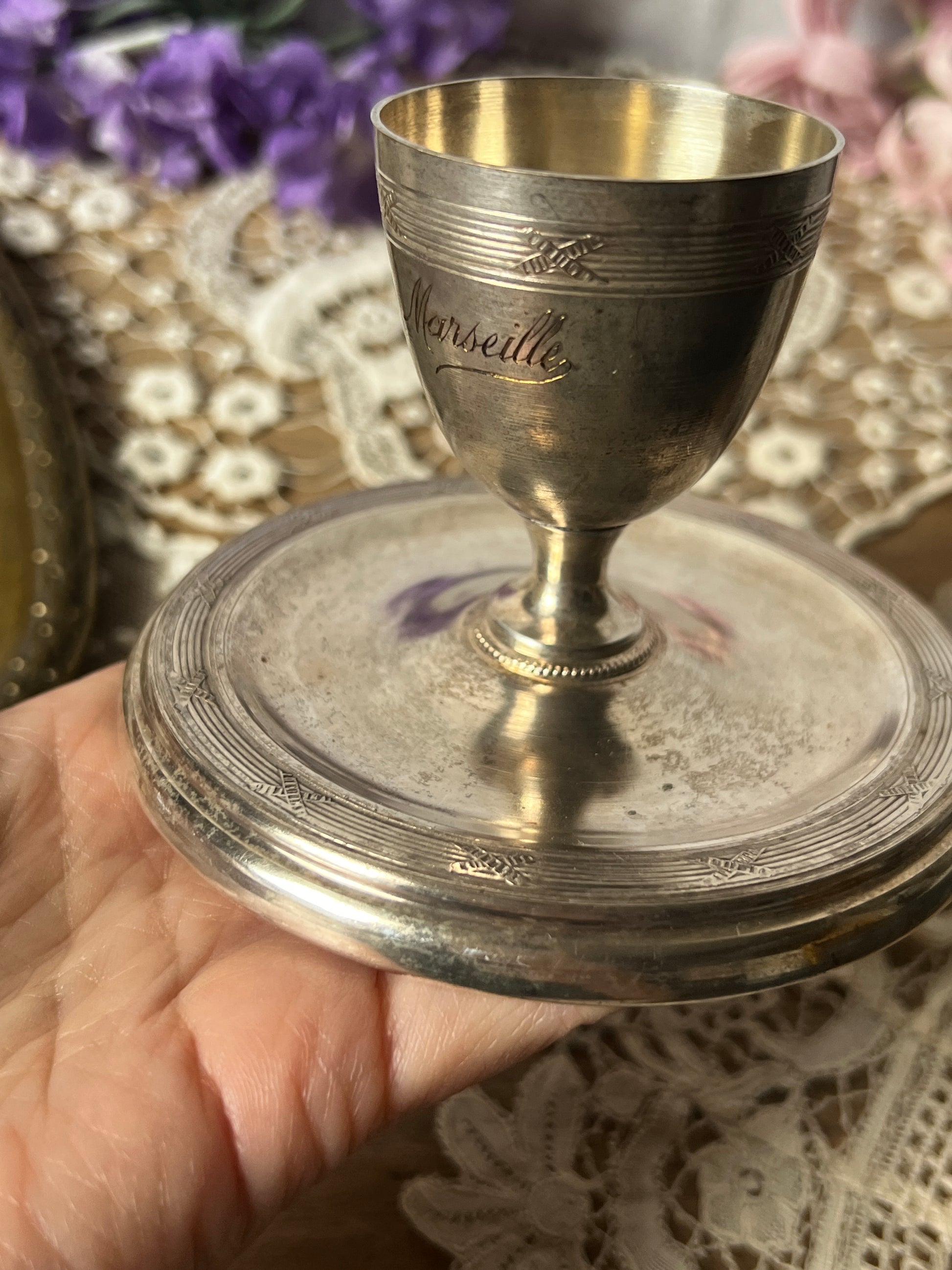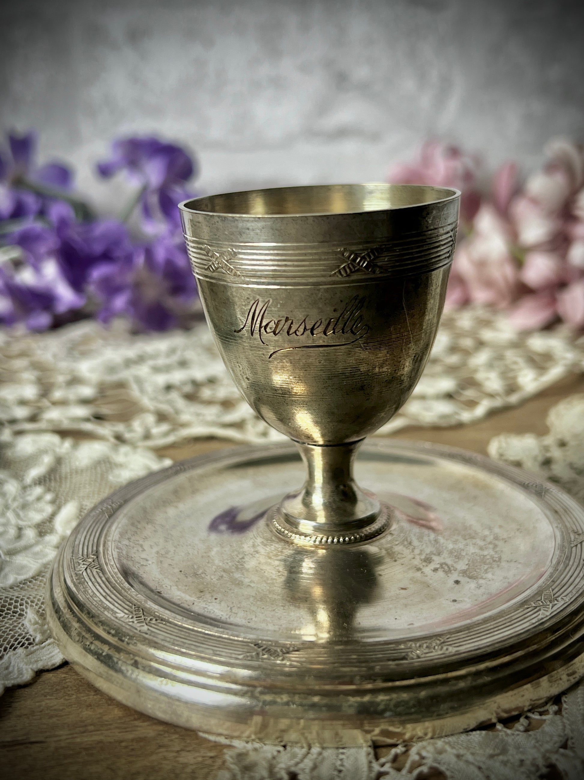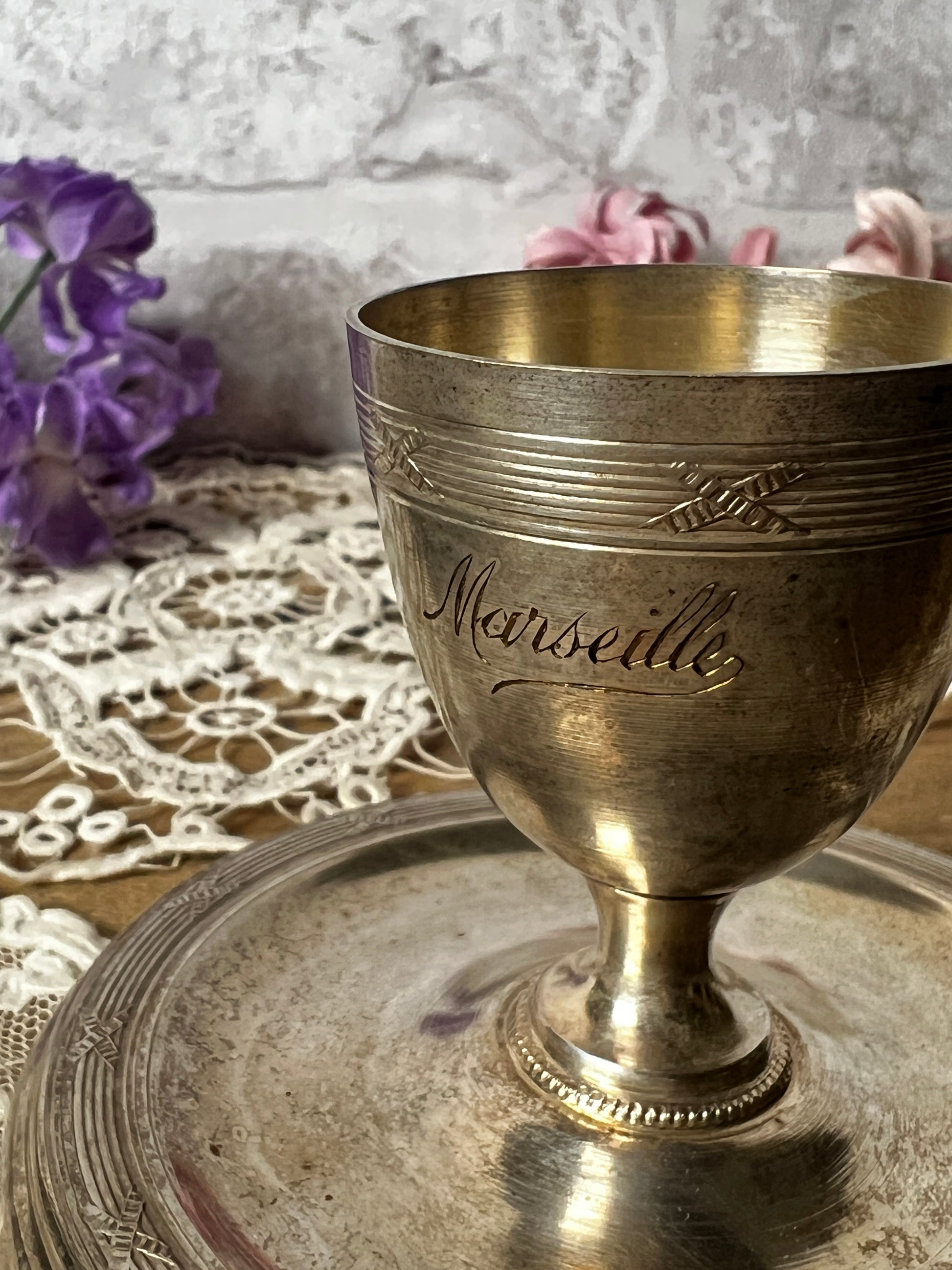 エッグカップ部分には、流れるような美しい書体で「Marseille」の文字が刻まれており、さりげないアクセントとなっています