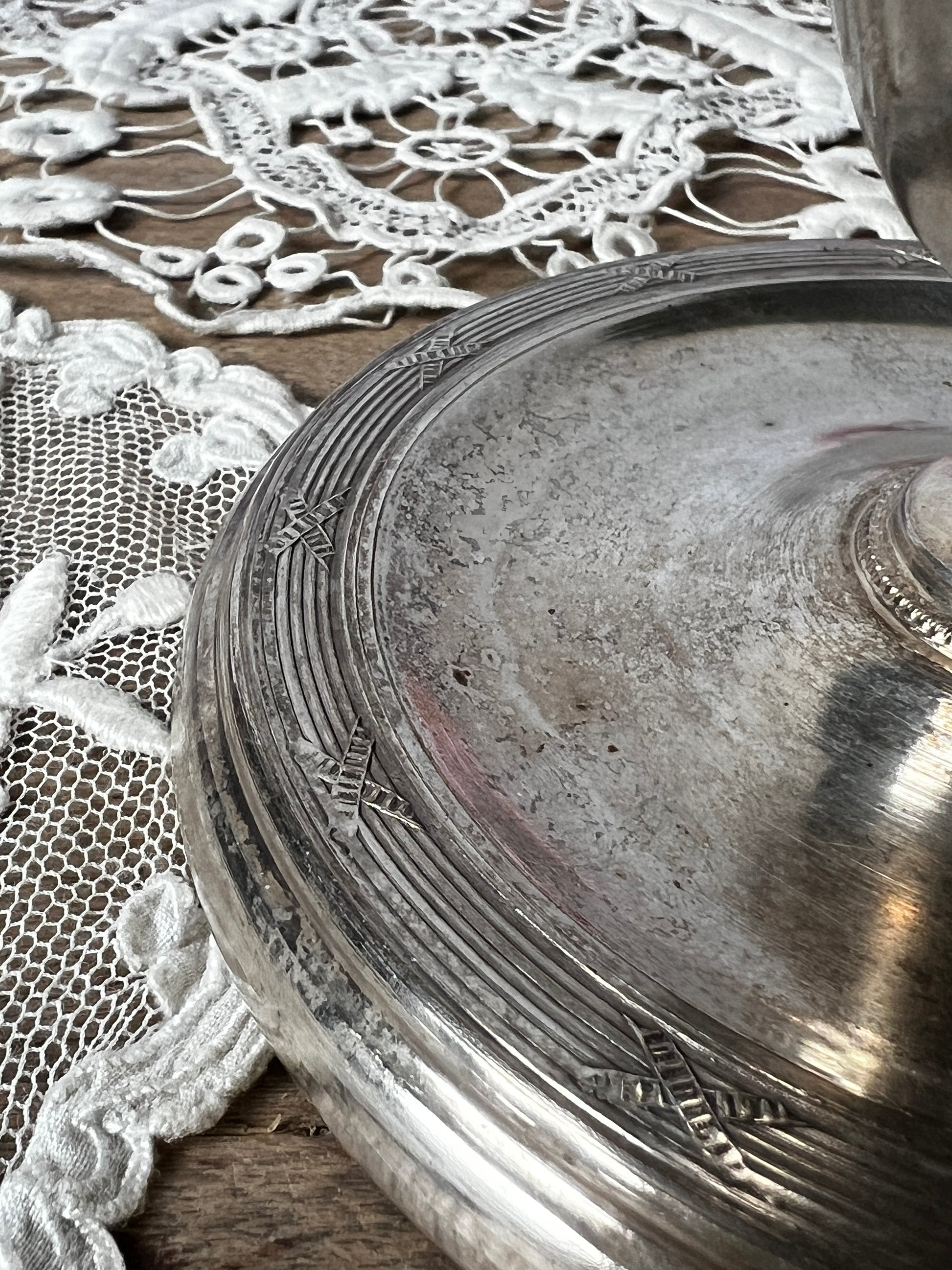 刻印は確認できませんが、表面には銀メッキ加工が施されていると推測されます