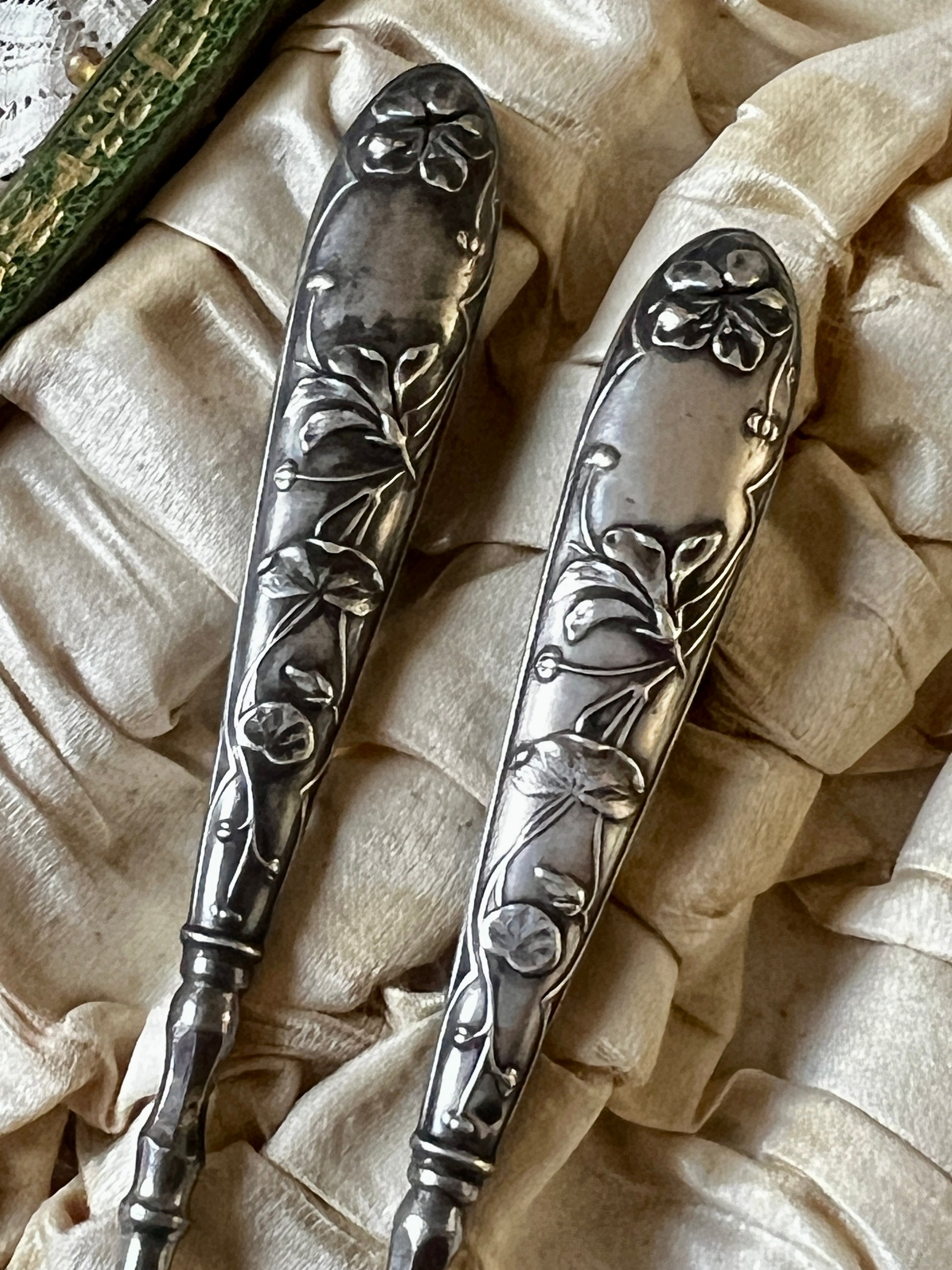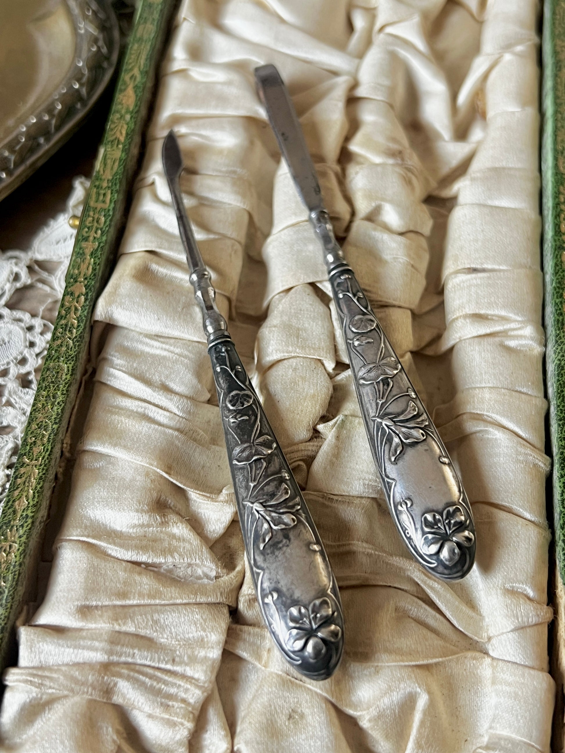 銀製の美しい絵細工が施されたハンドケア用具のセットです
