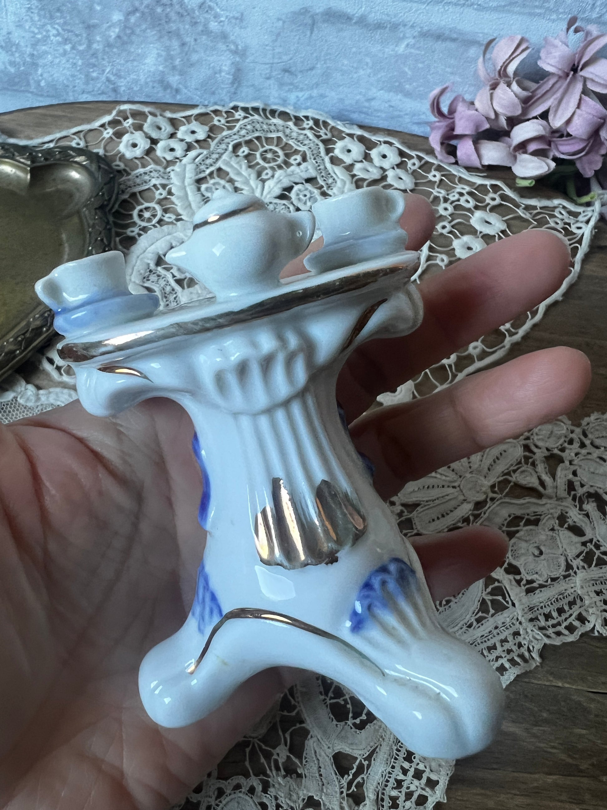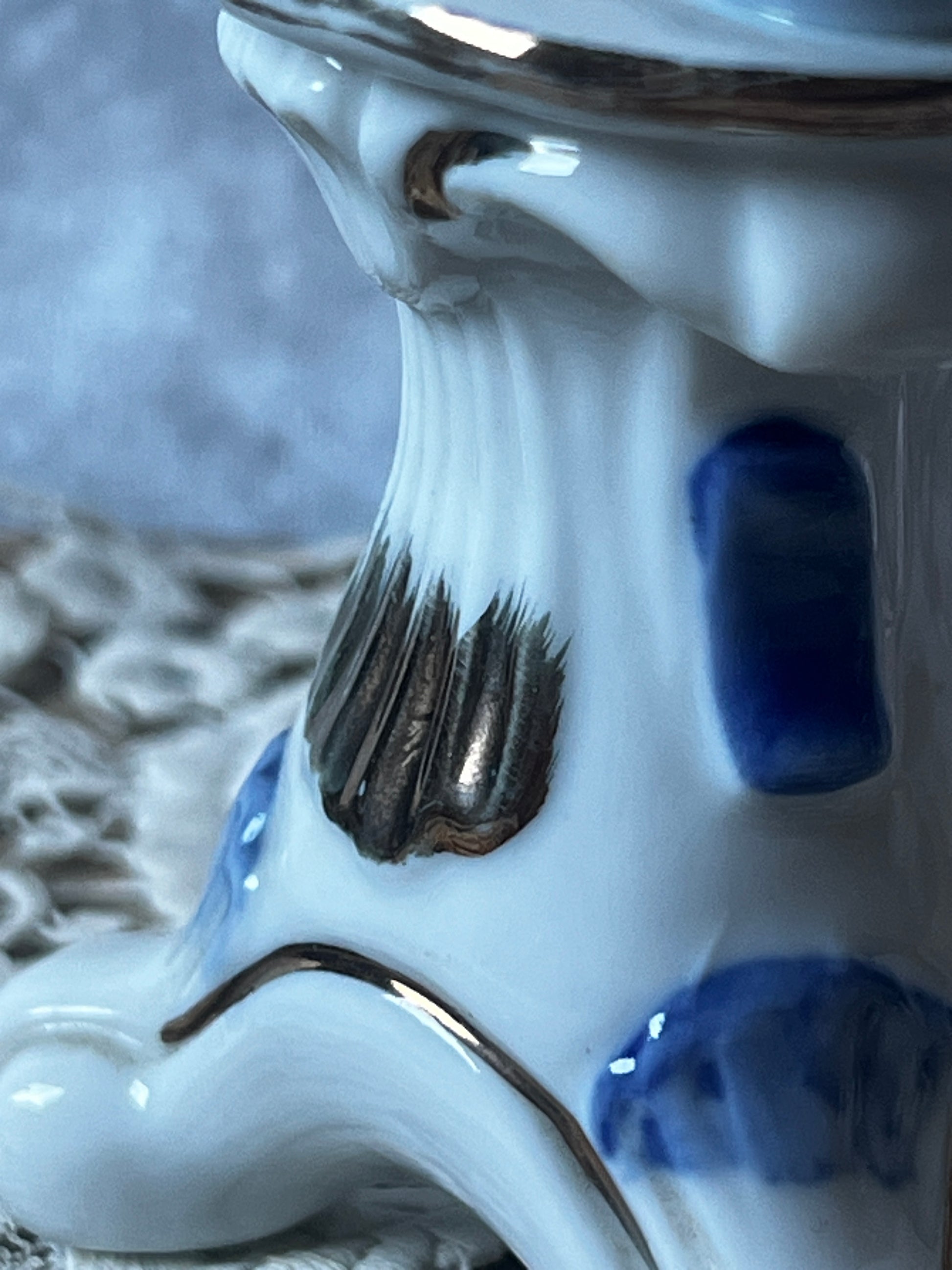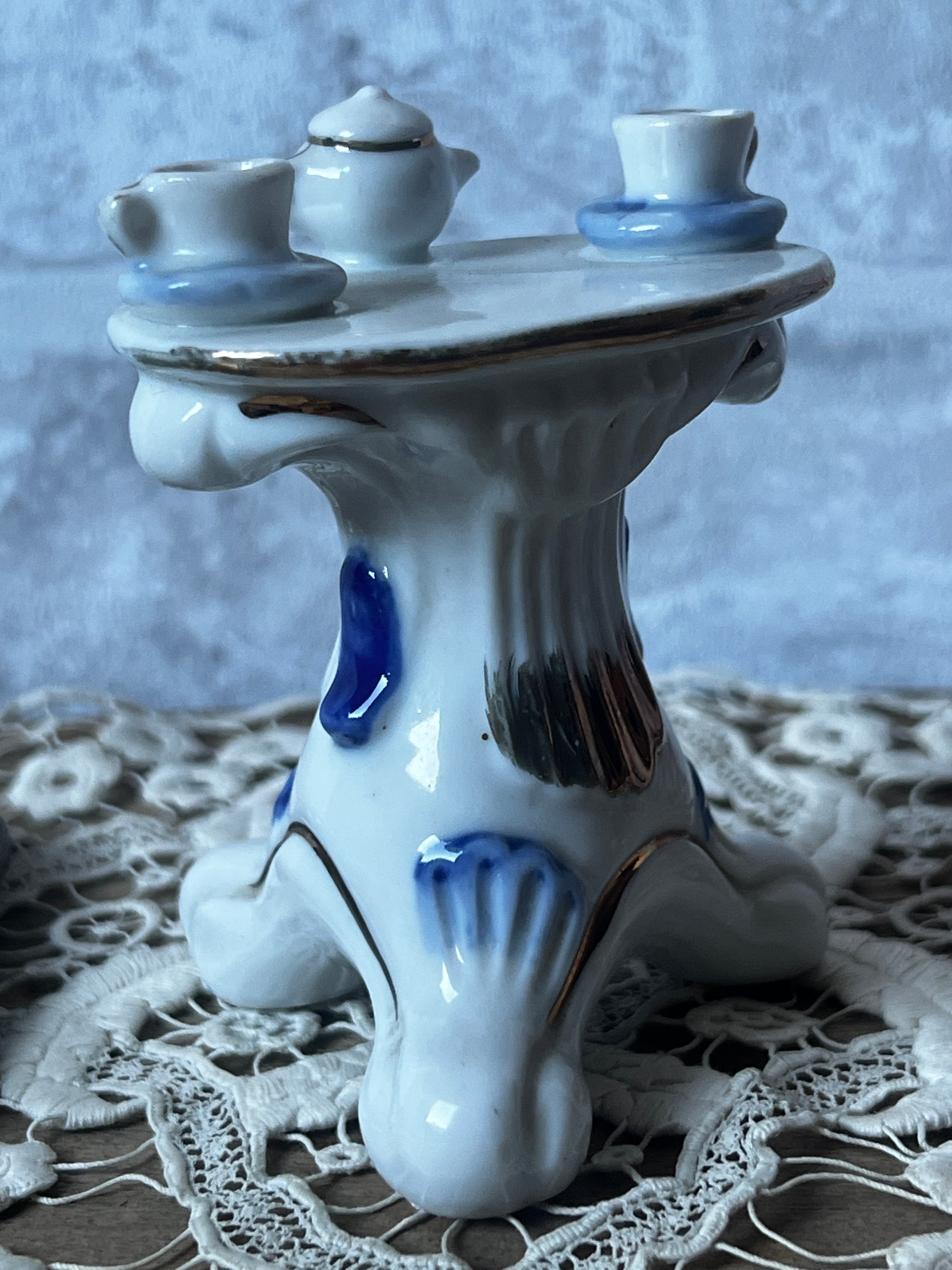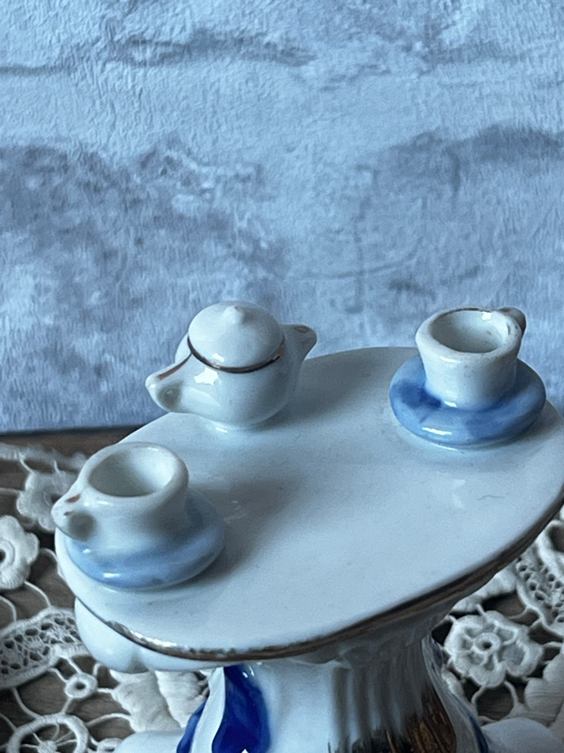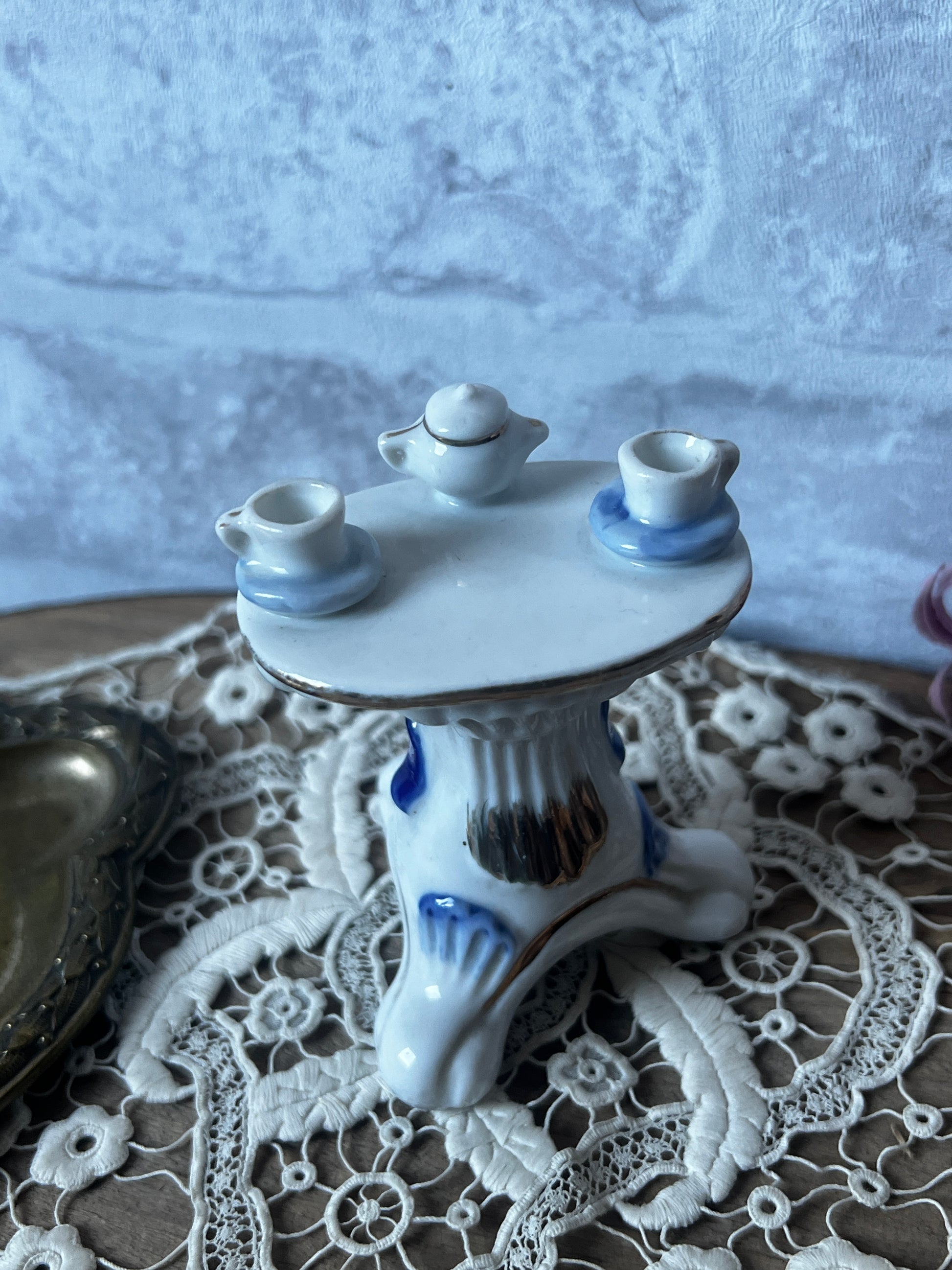 白地にブルーとゴールドで彩色された、爽やかな印象のミニチュアテーブルです