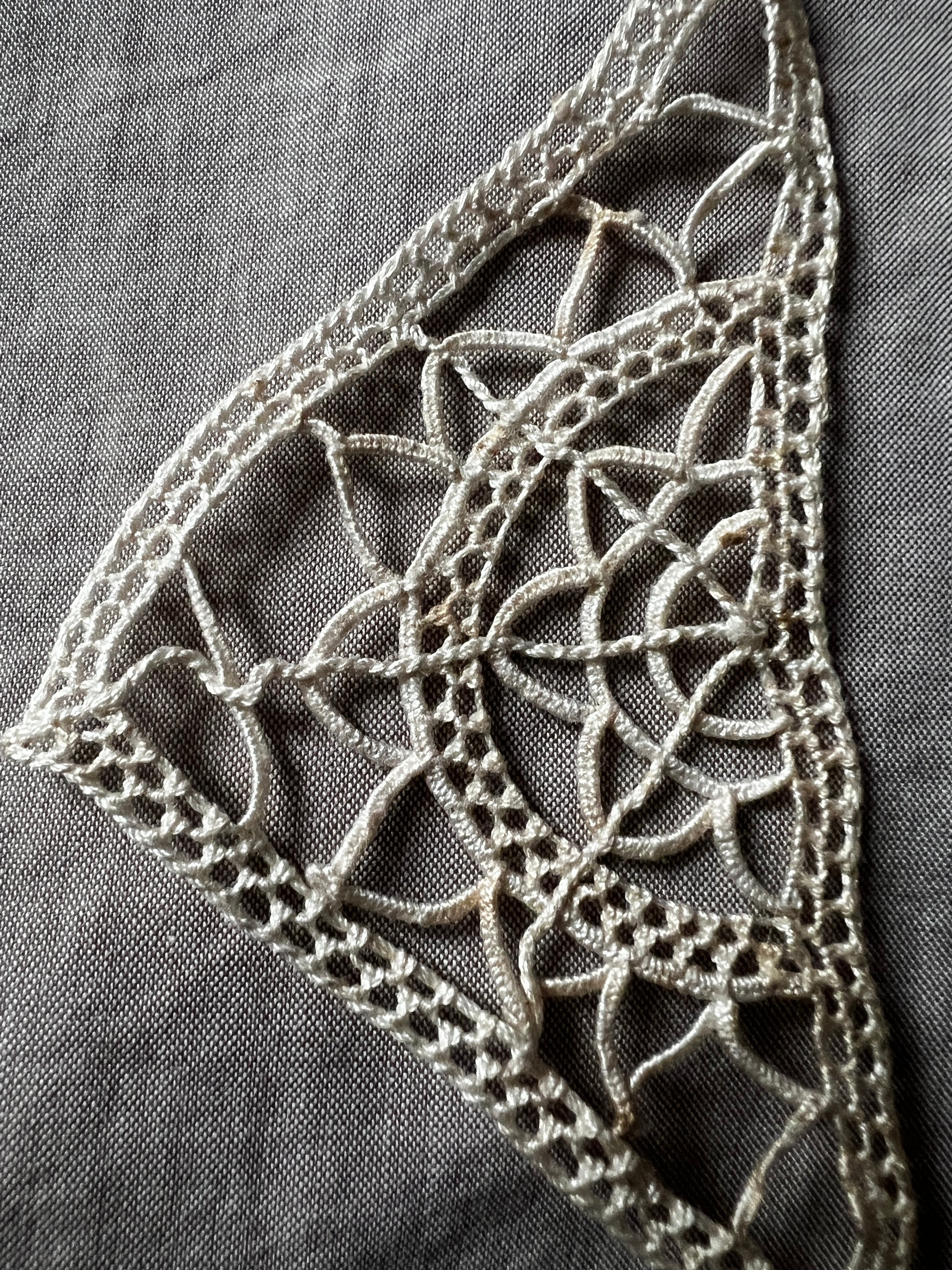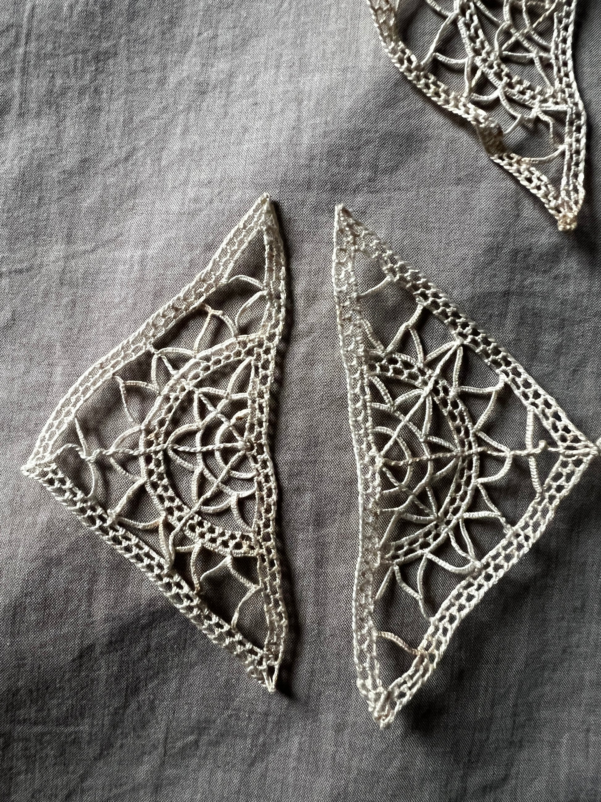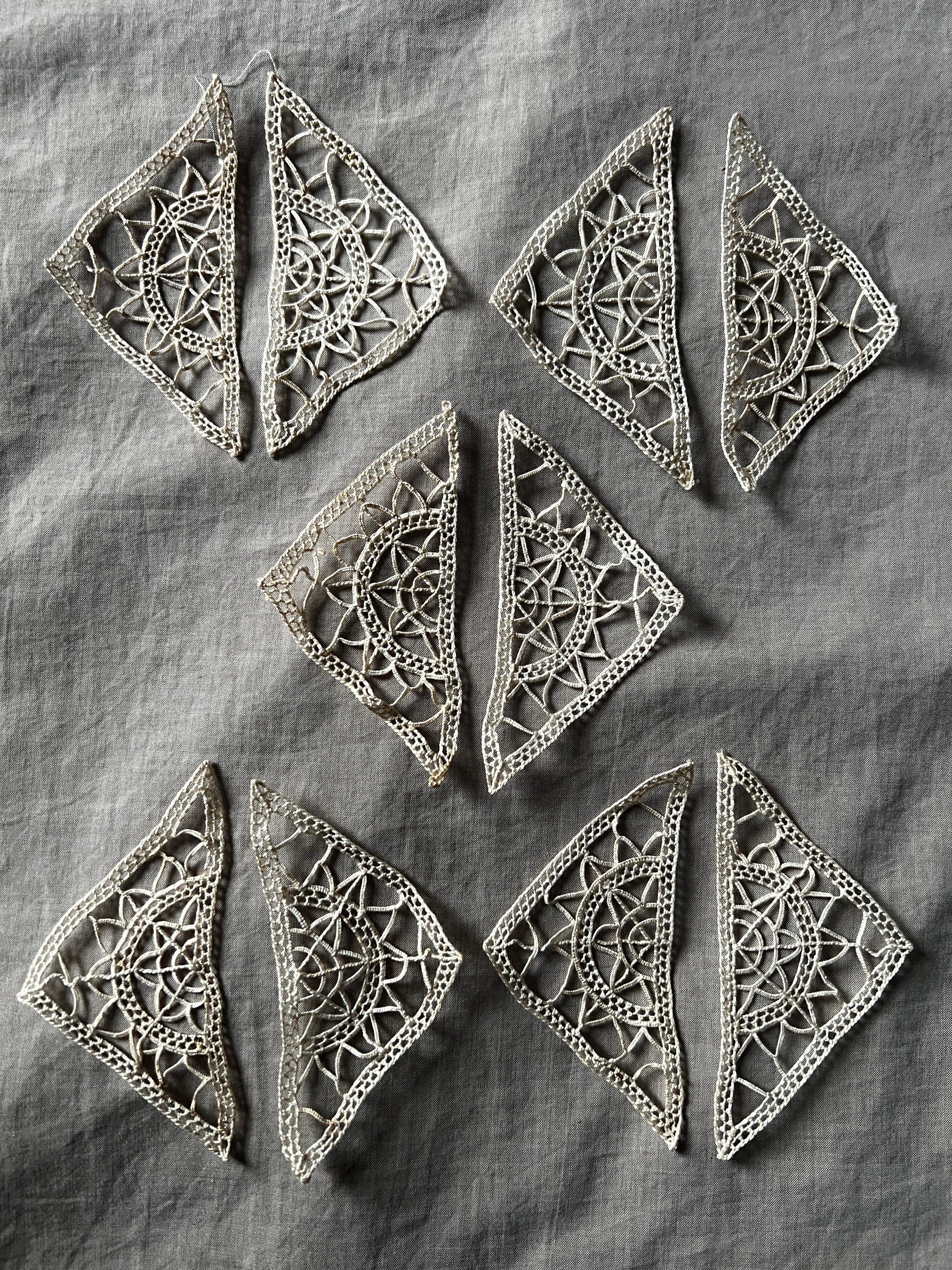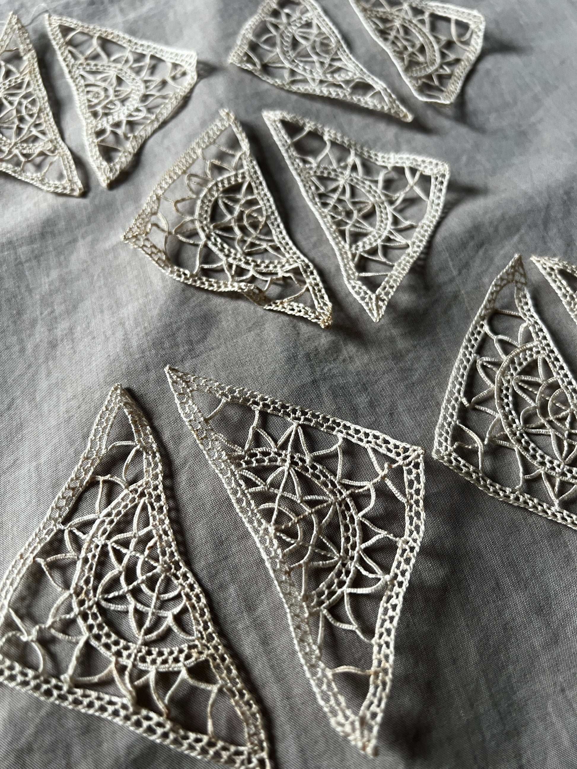繊細な手仕事が光る小さな三角形のニードルレースモチーフを10枚セットにしました