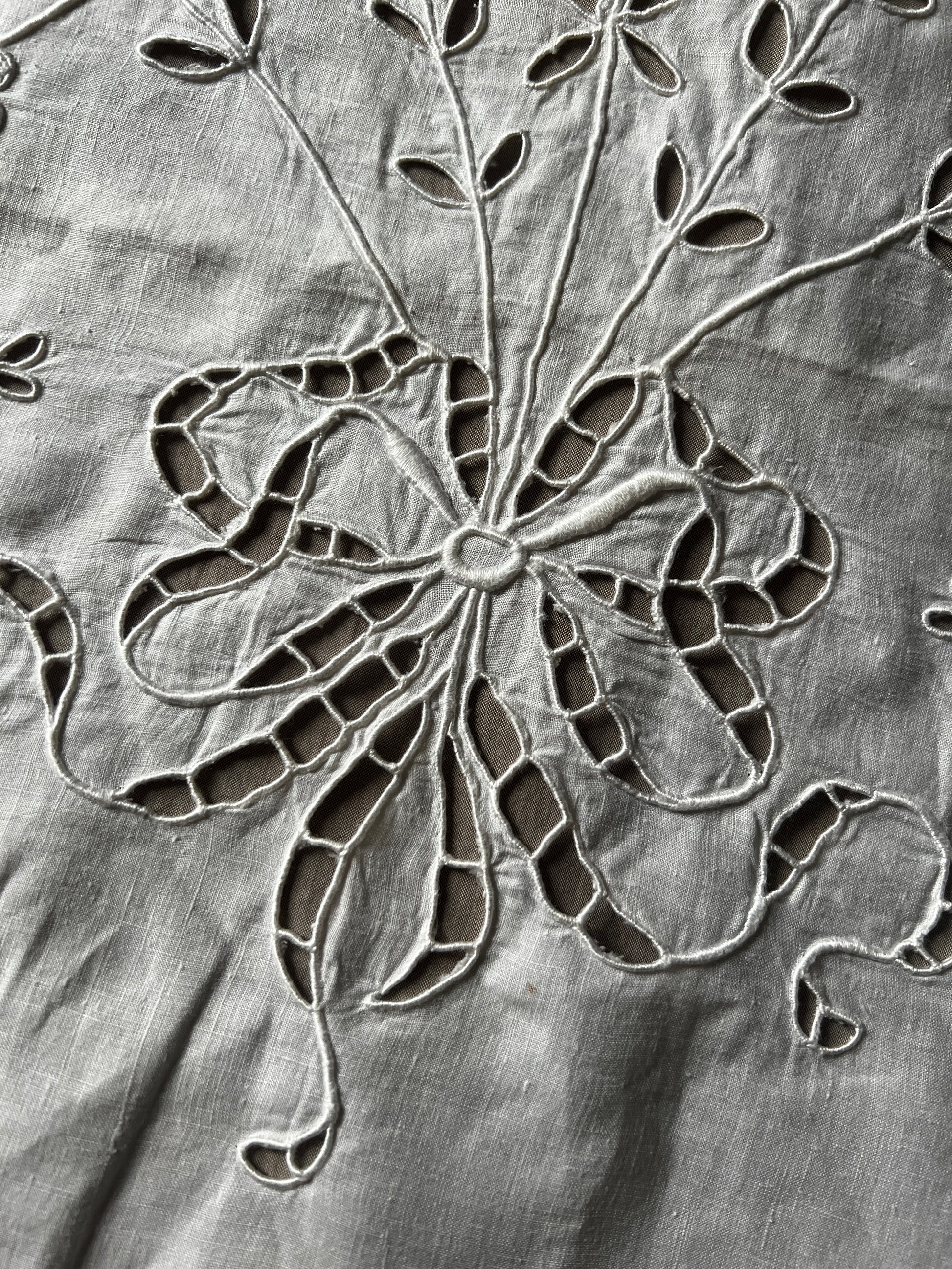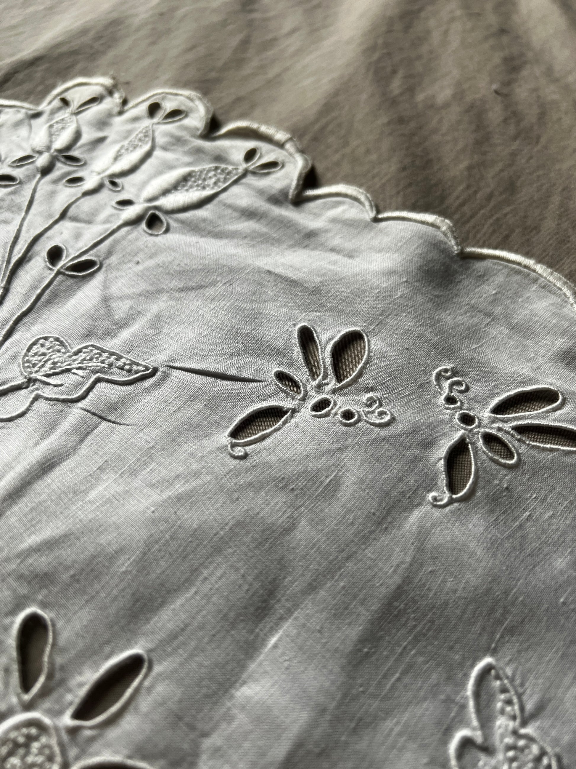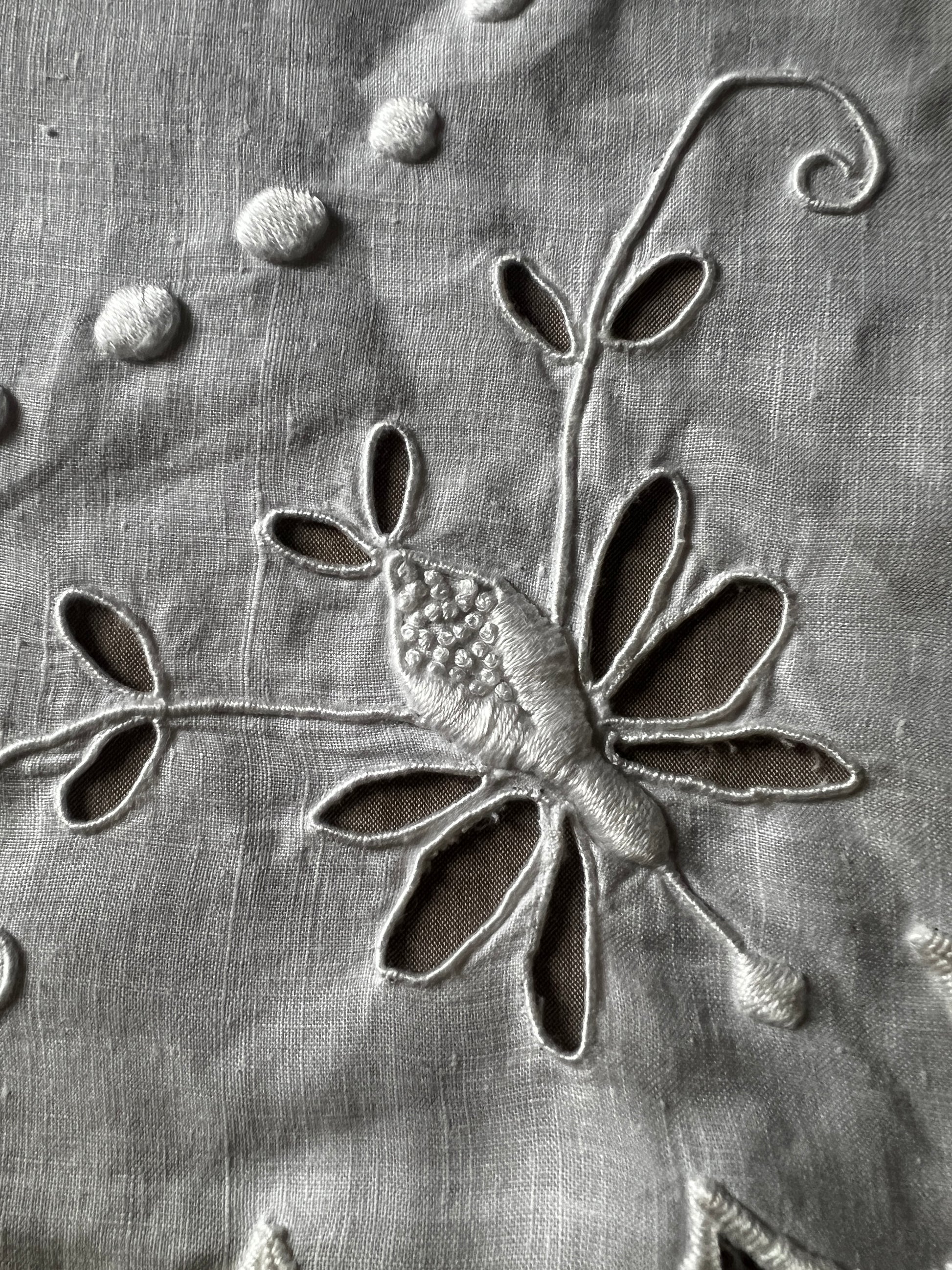 リボンに彩られたブーケや舞う蝶々が繊細に刺繍された、美麗なクロスです