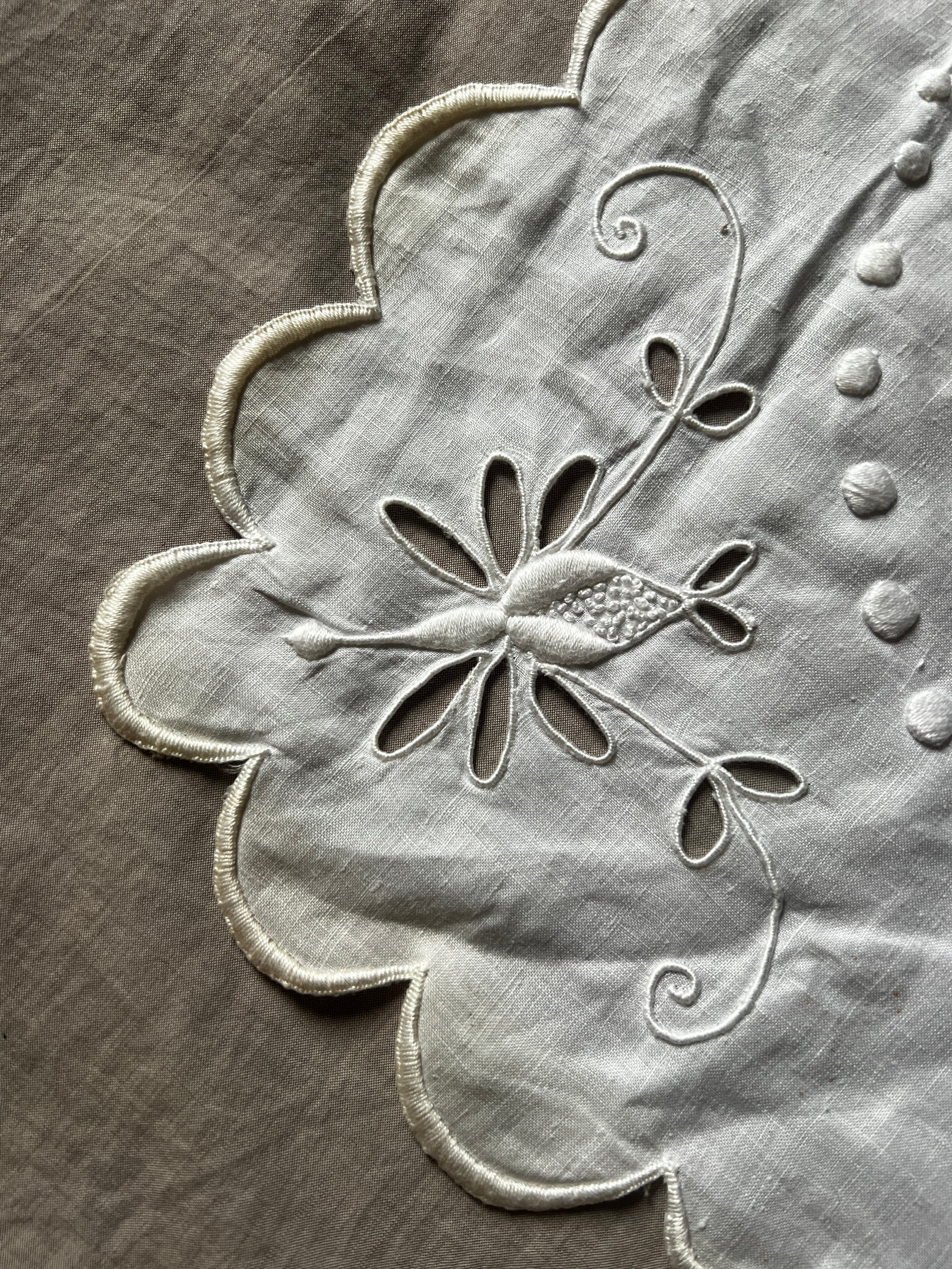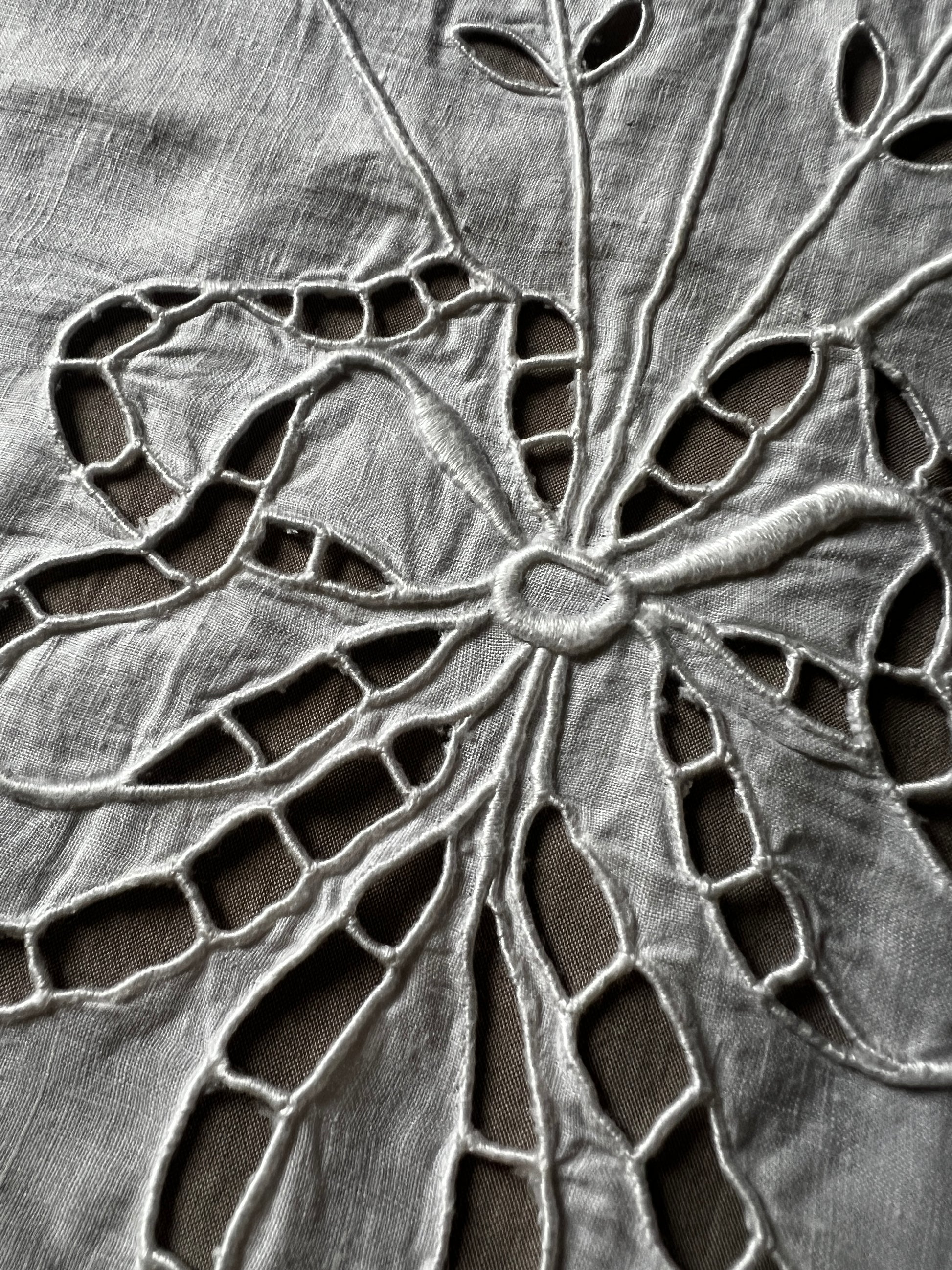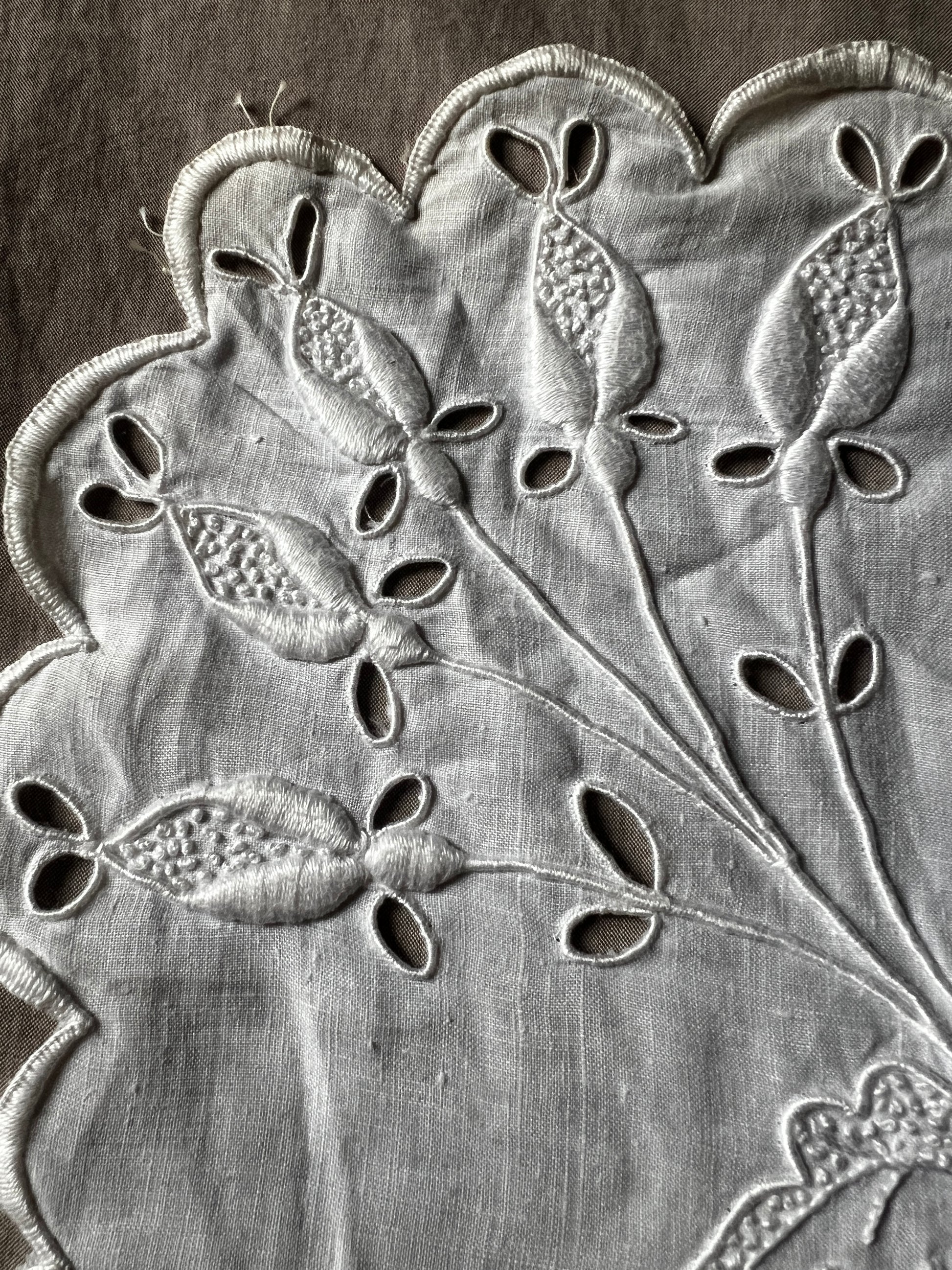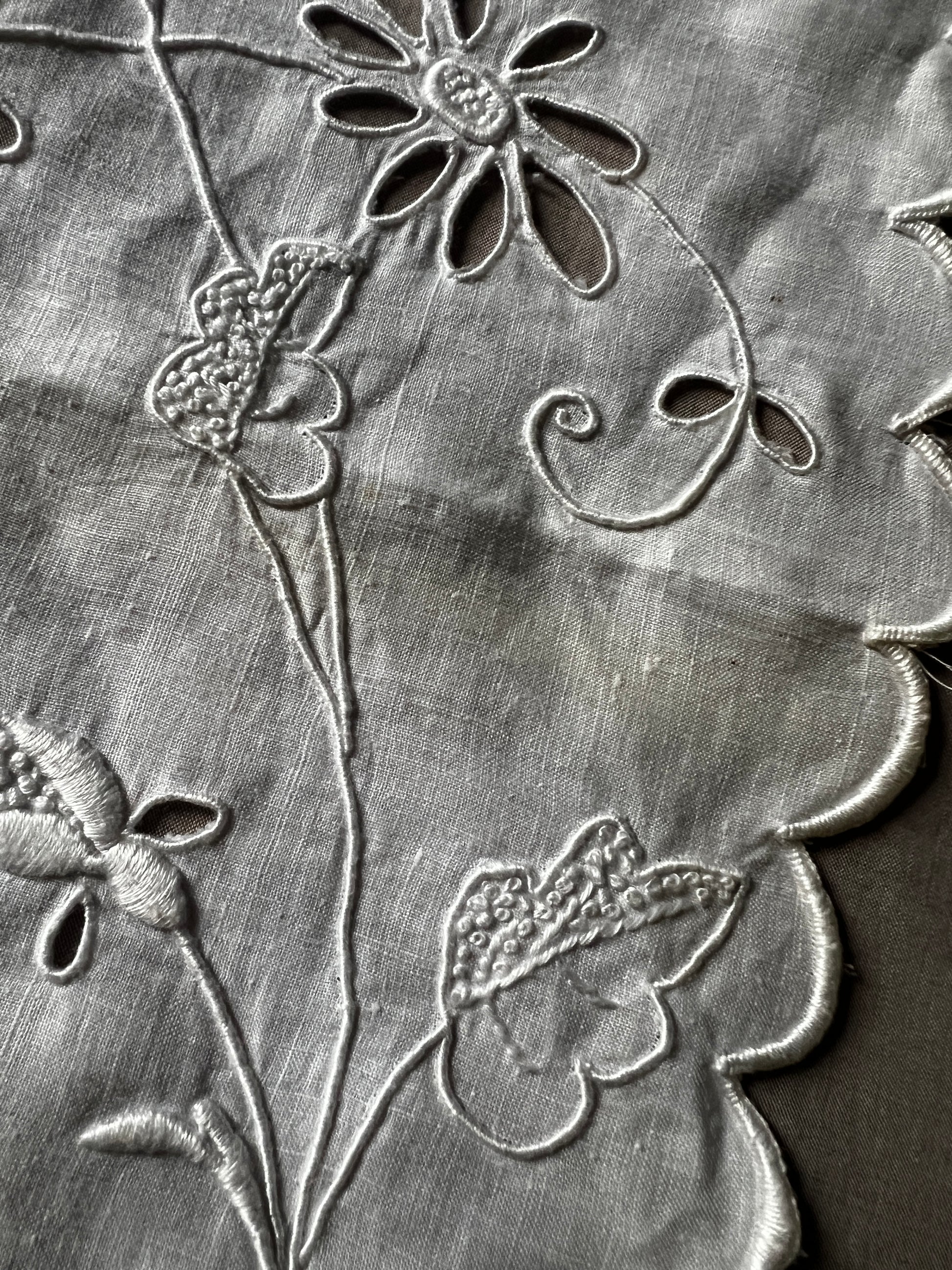 リボンに彩られたブーケや舞う蝶々が繊細に刺繍された、美麗なクロスです