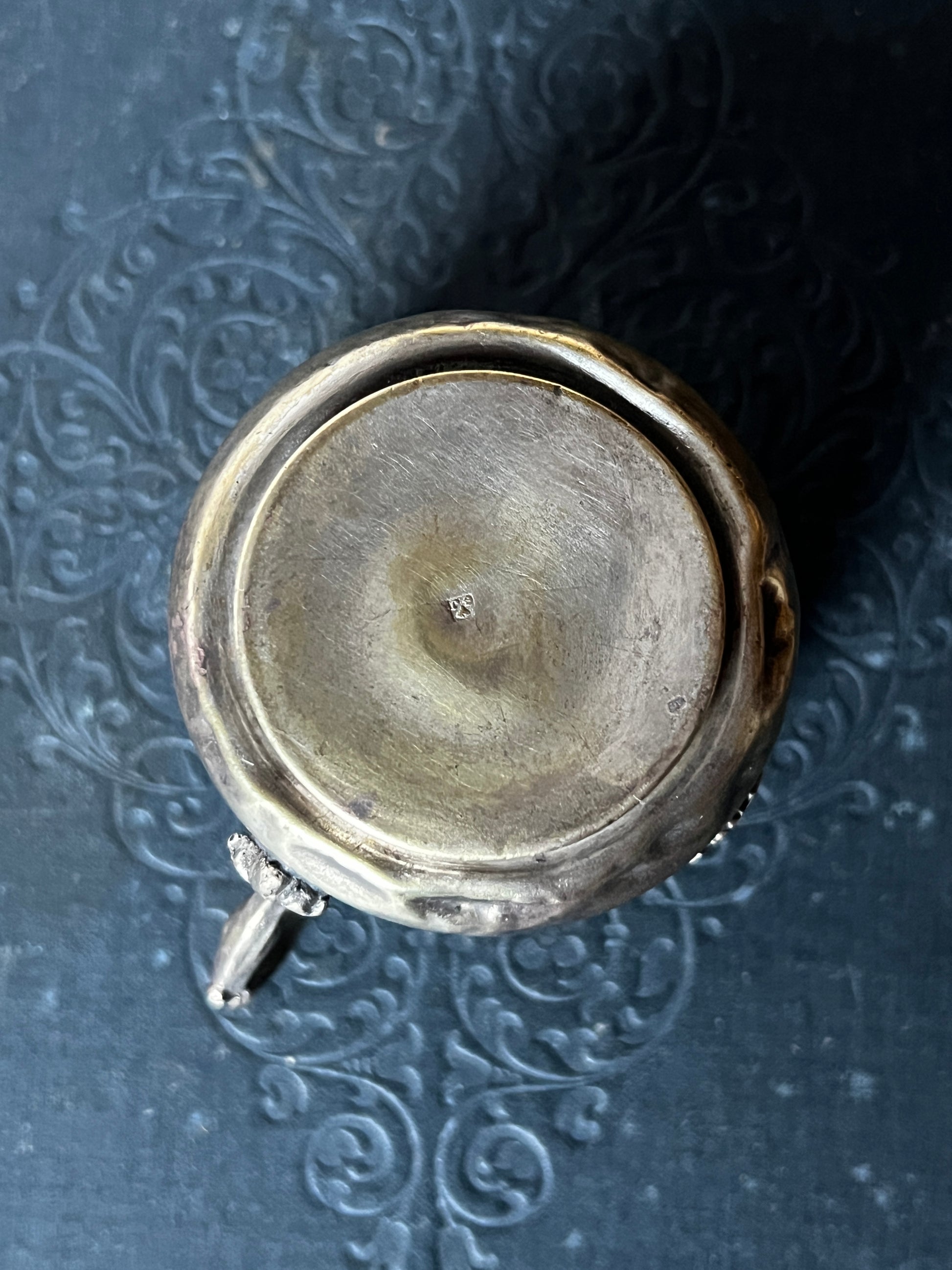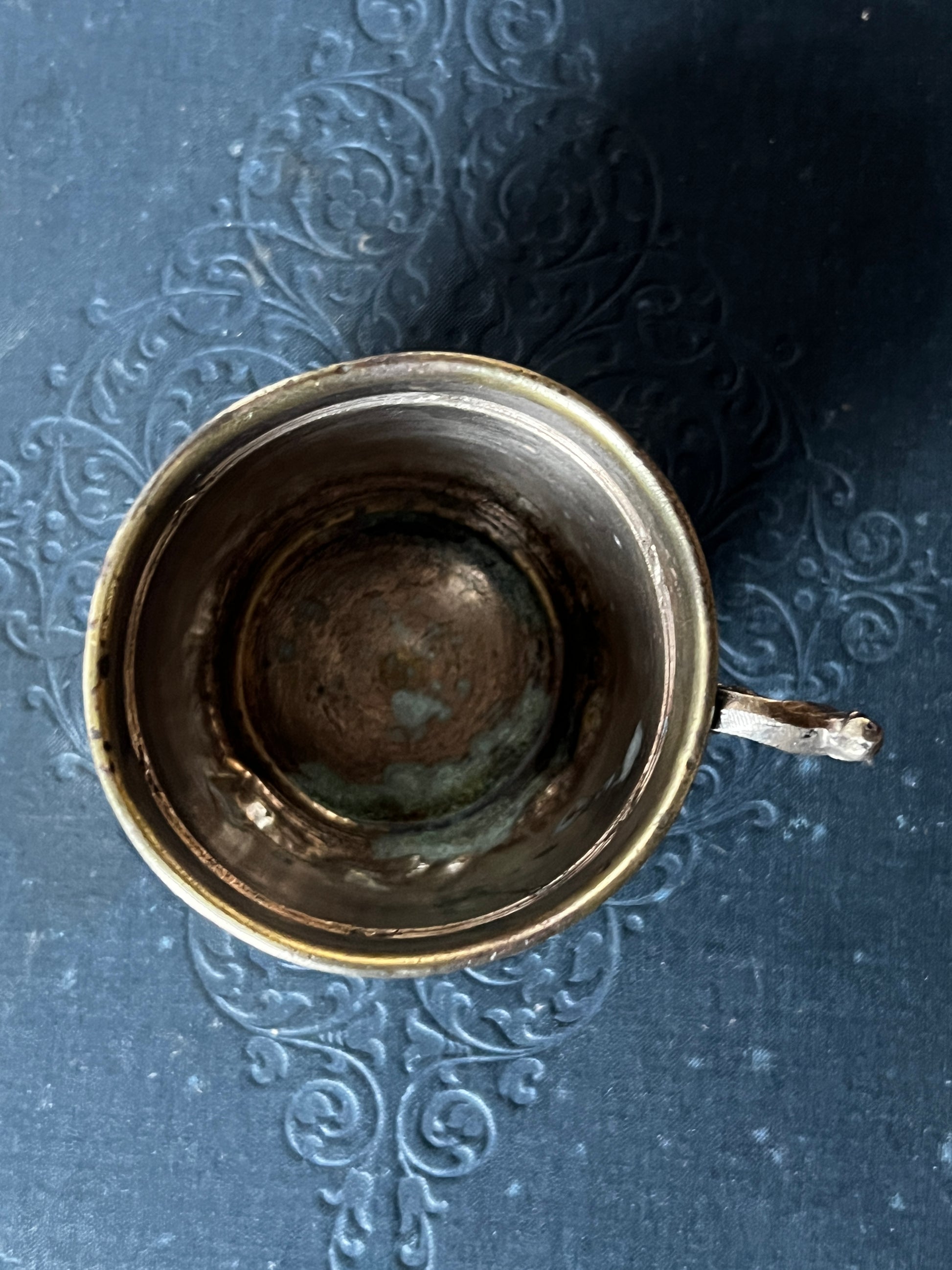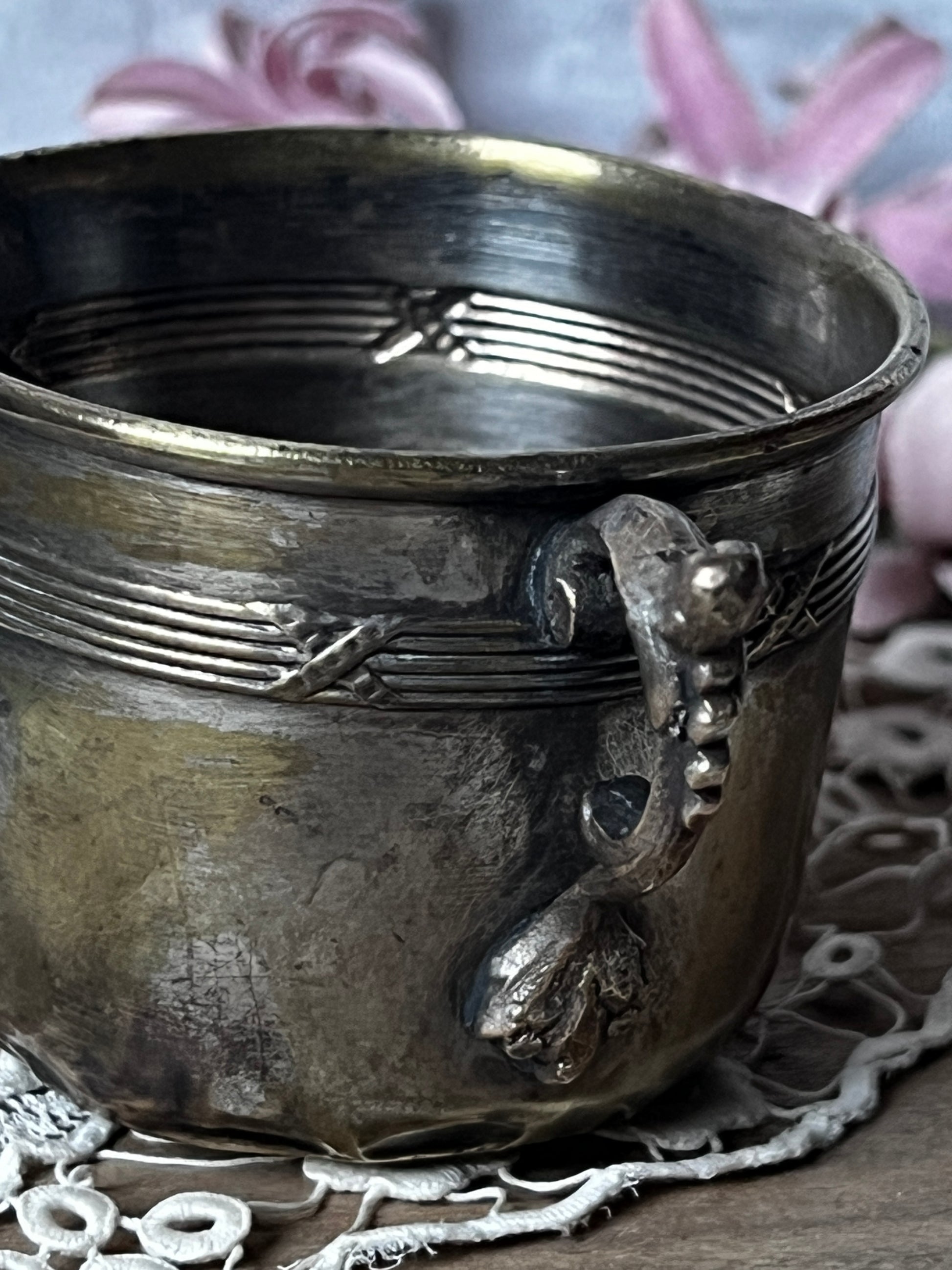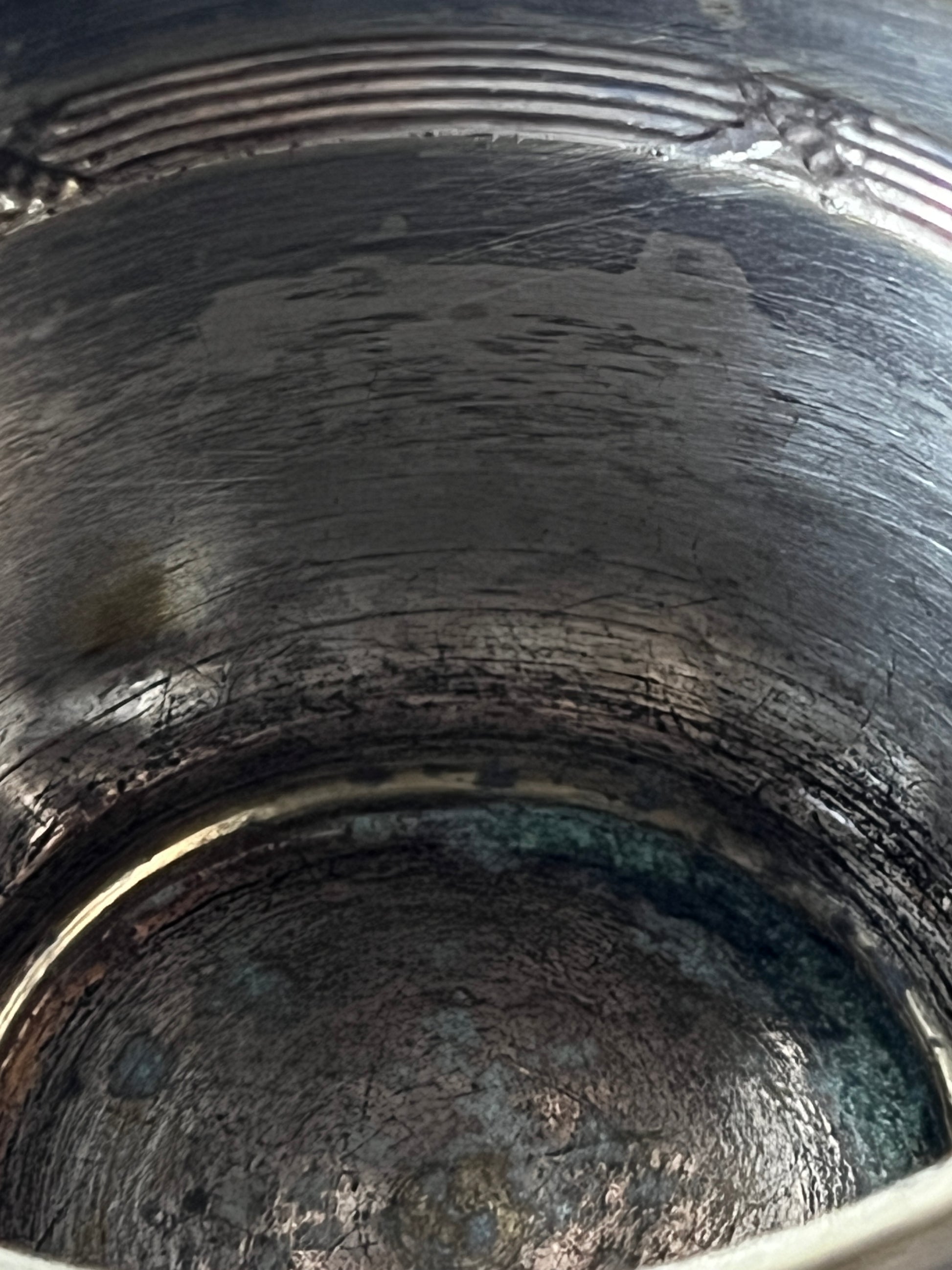王冠の紋章が刻まれた、気品漂う銀メッキ製の古いカップです