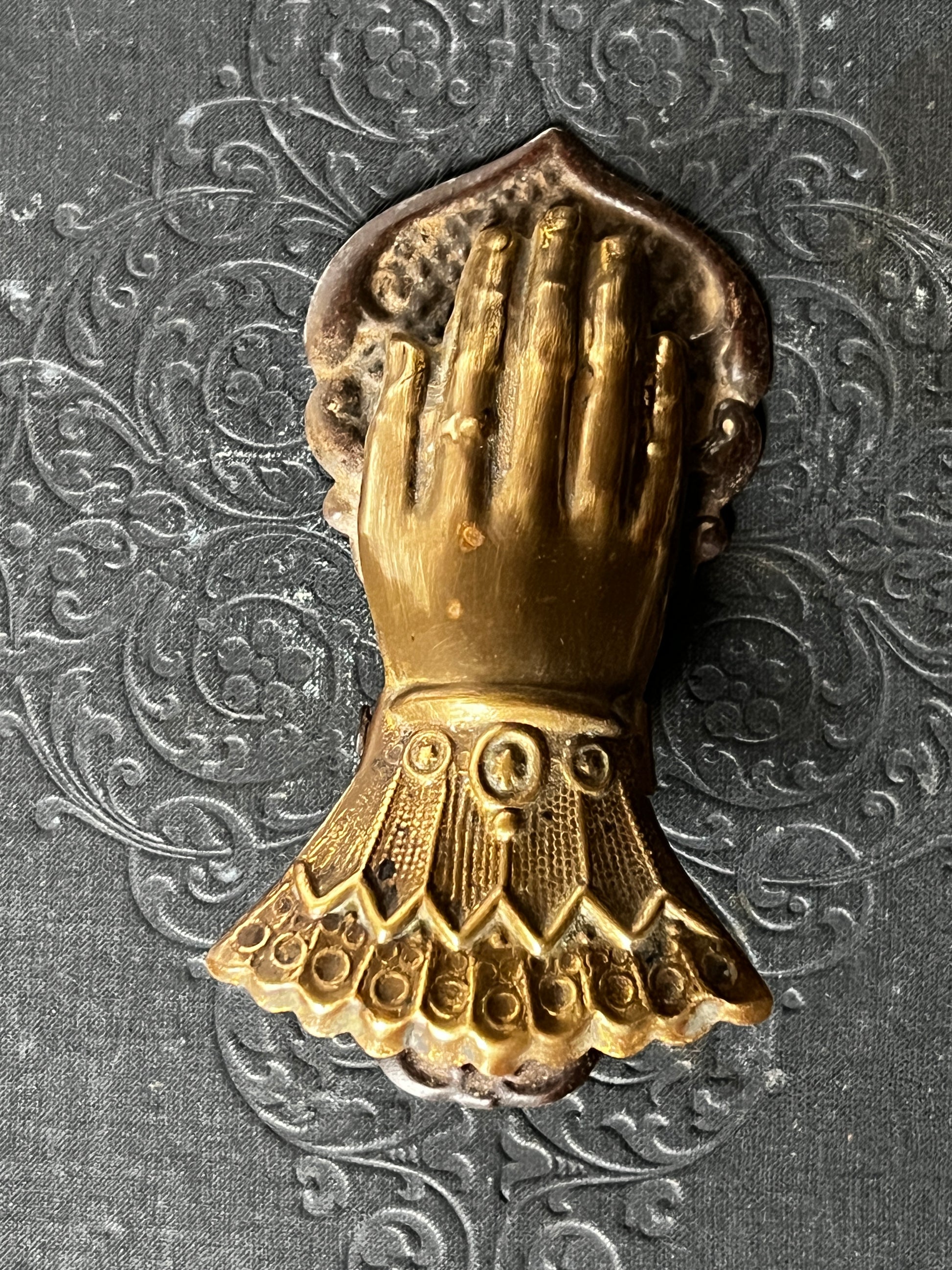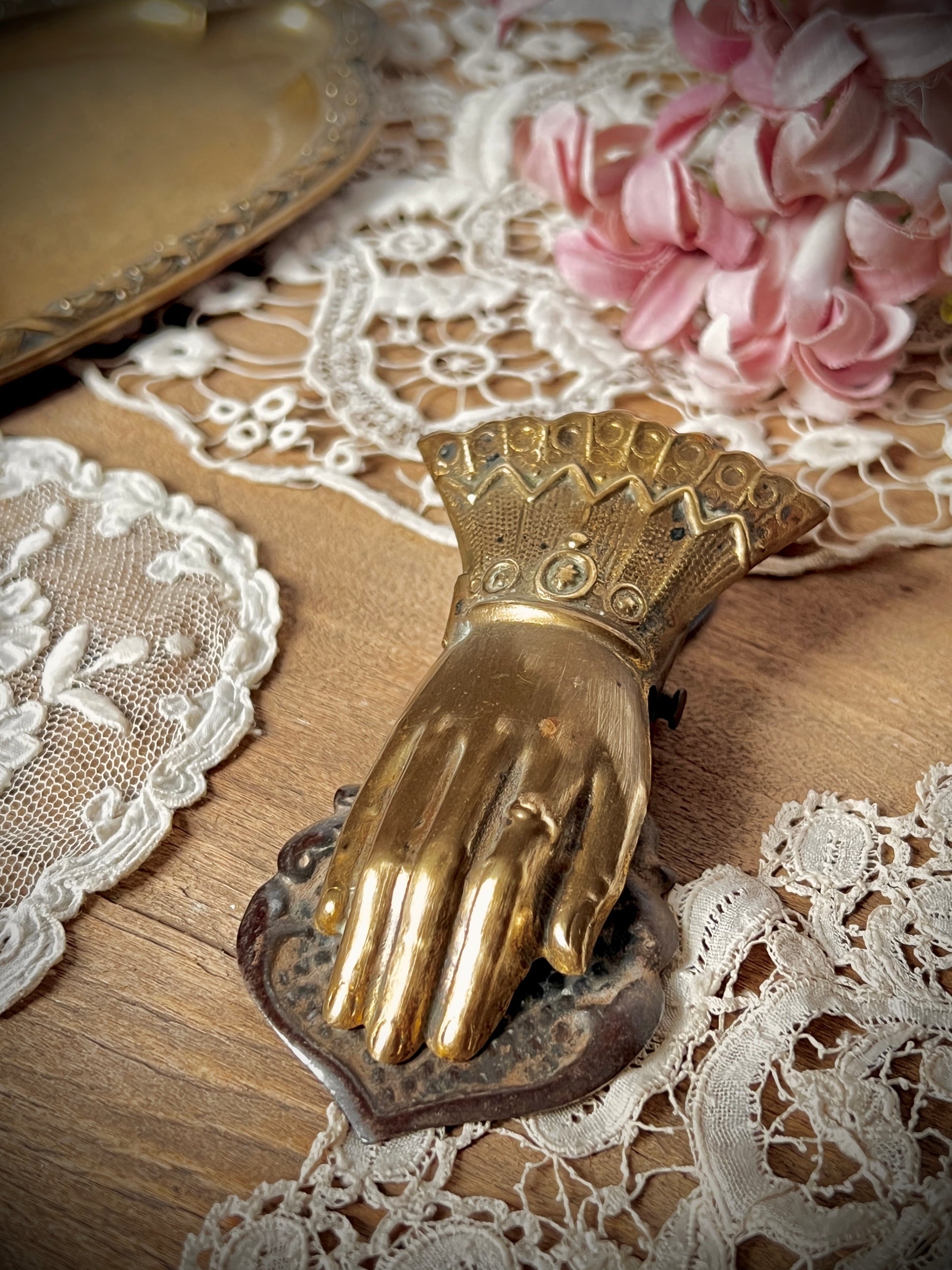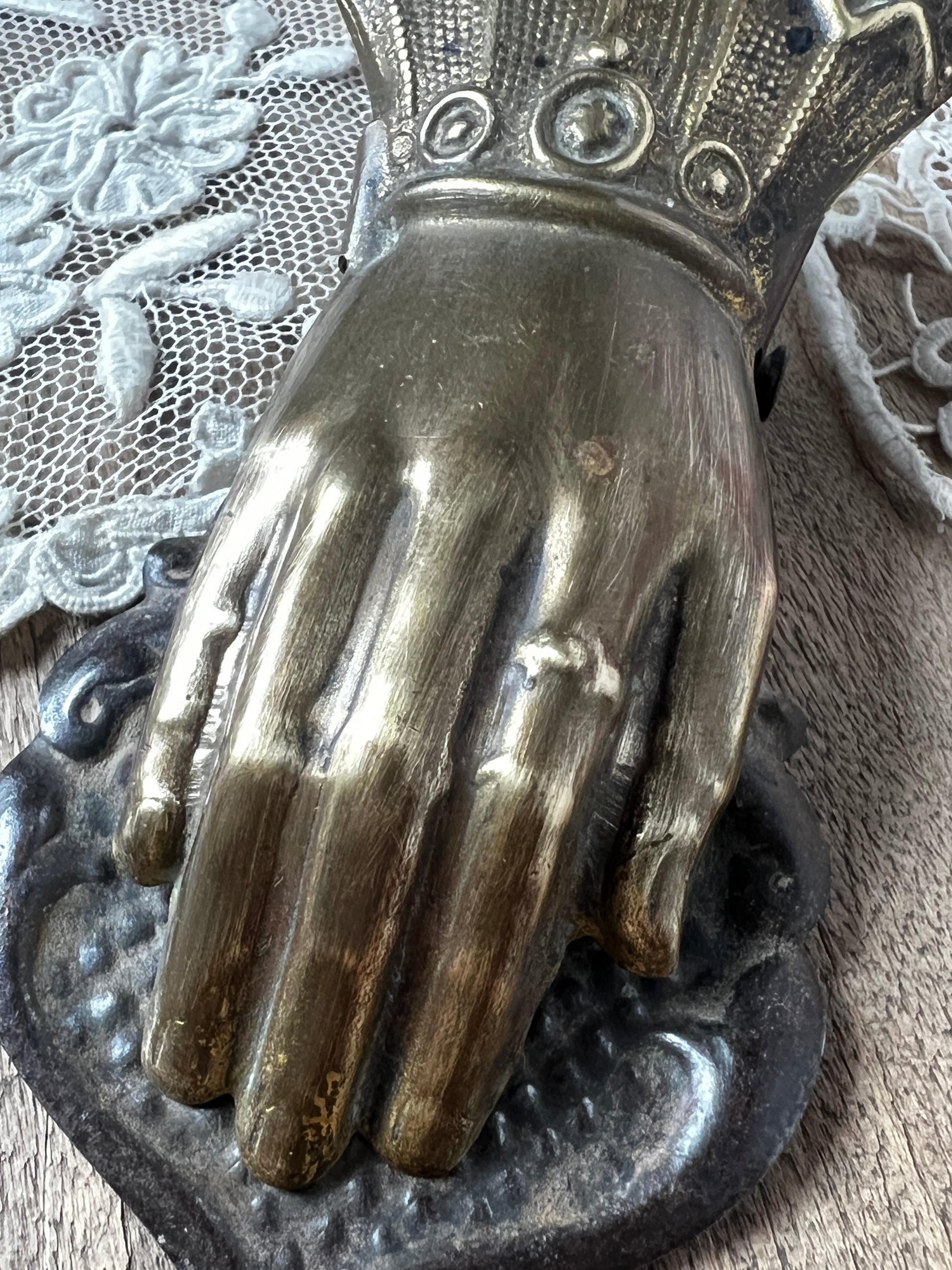 ハンドモチーフ部分は真鍮製で、台座部分はアイアン製
