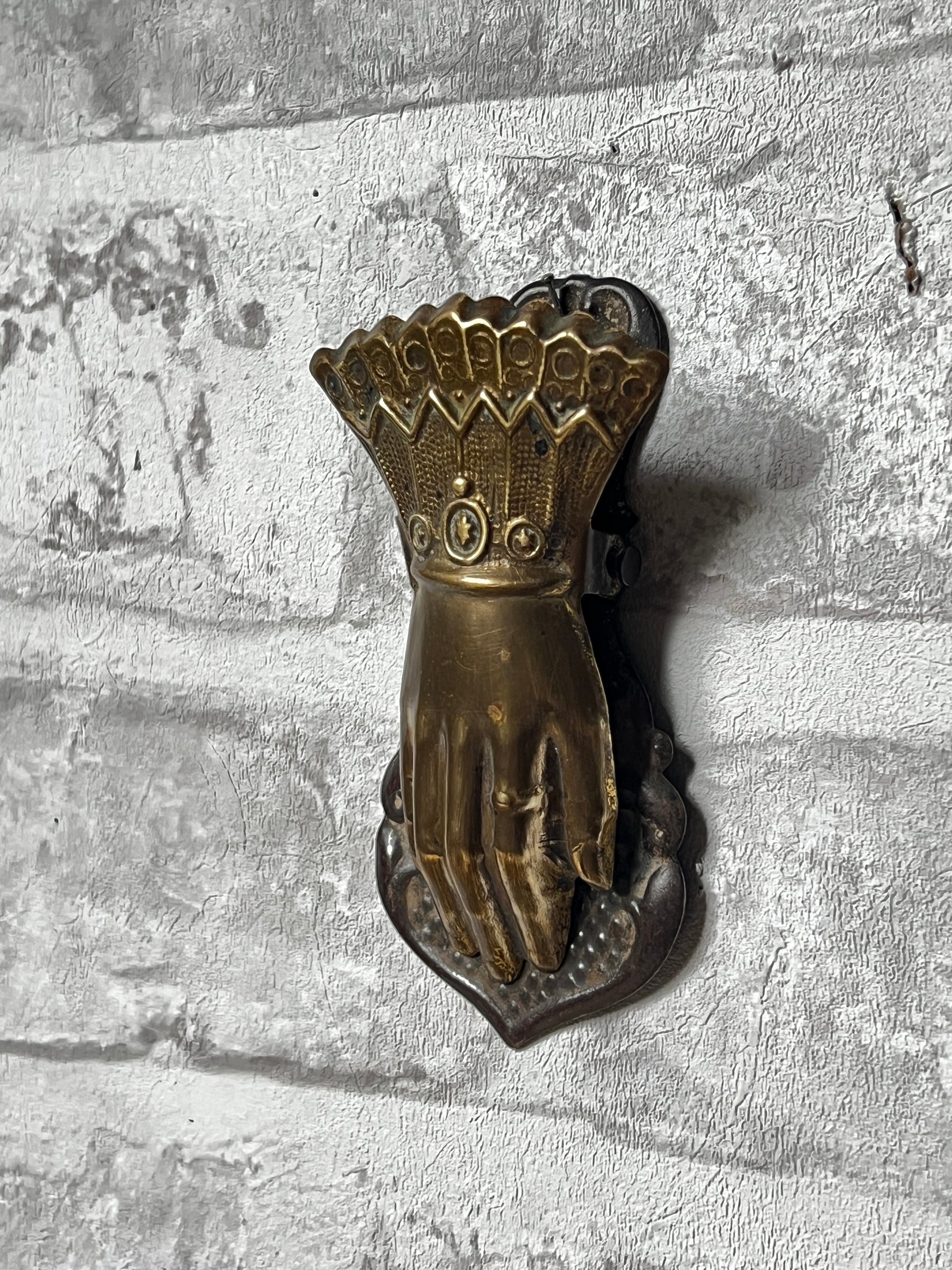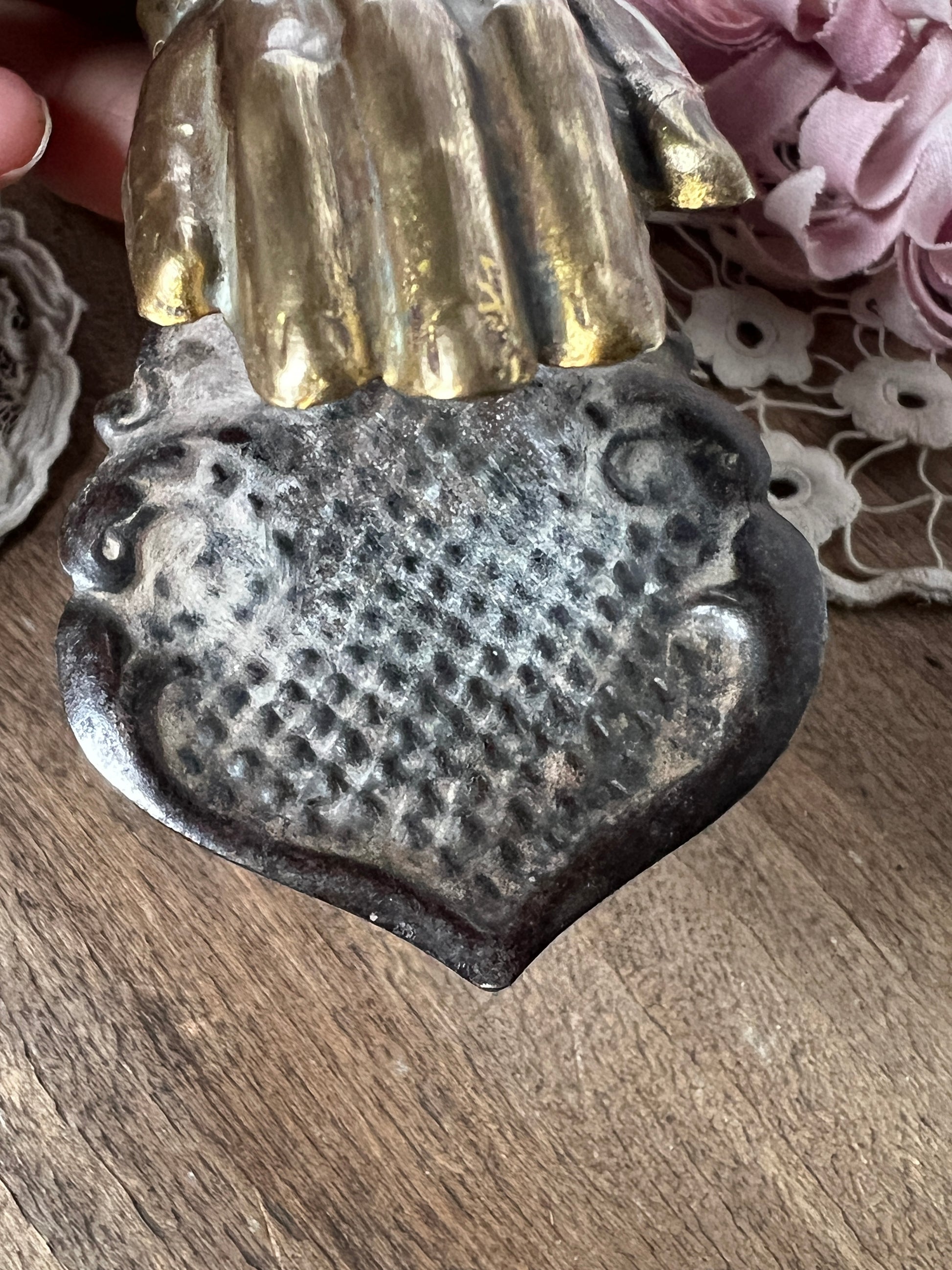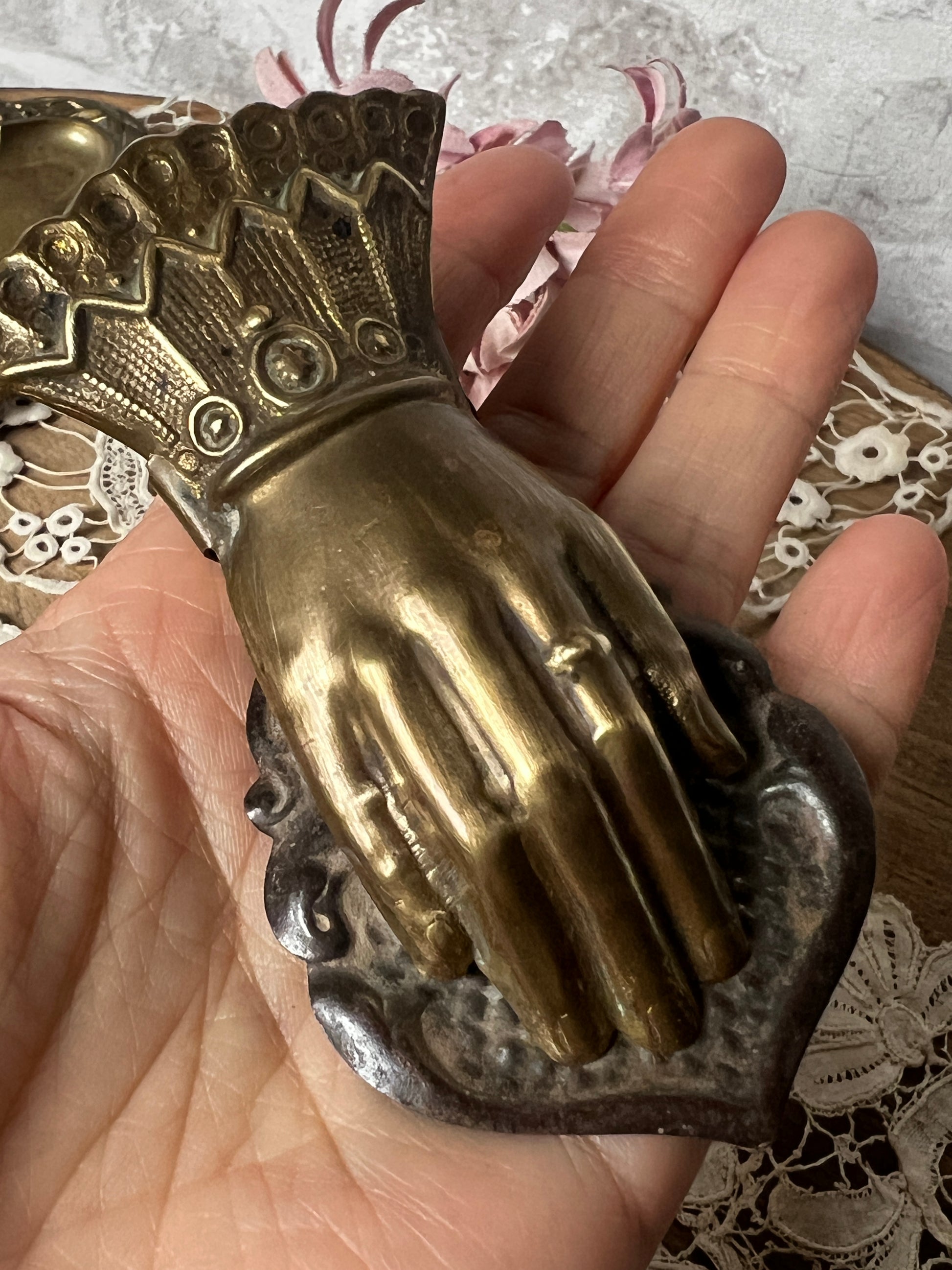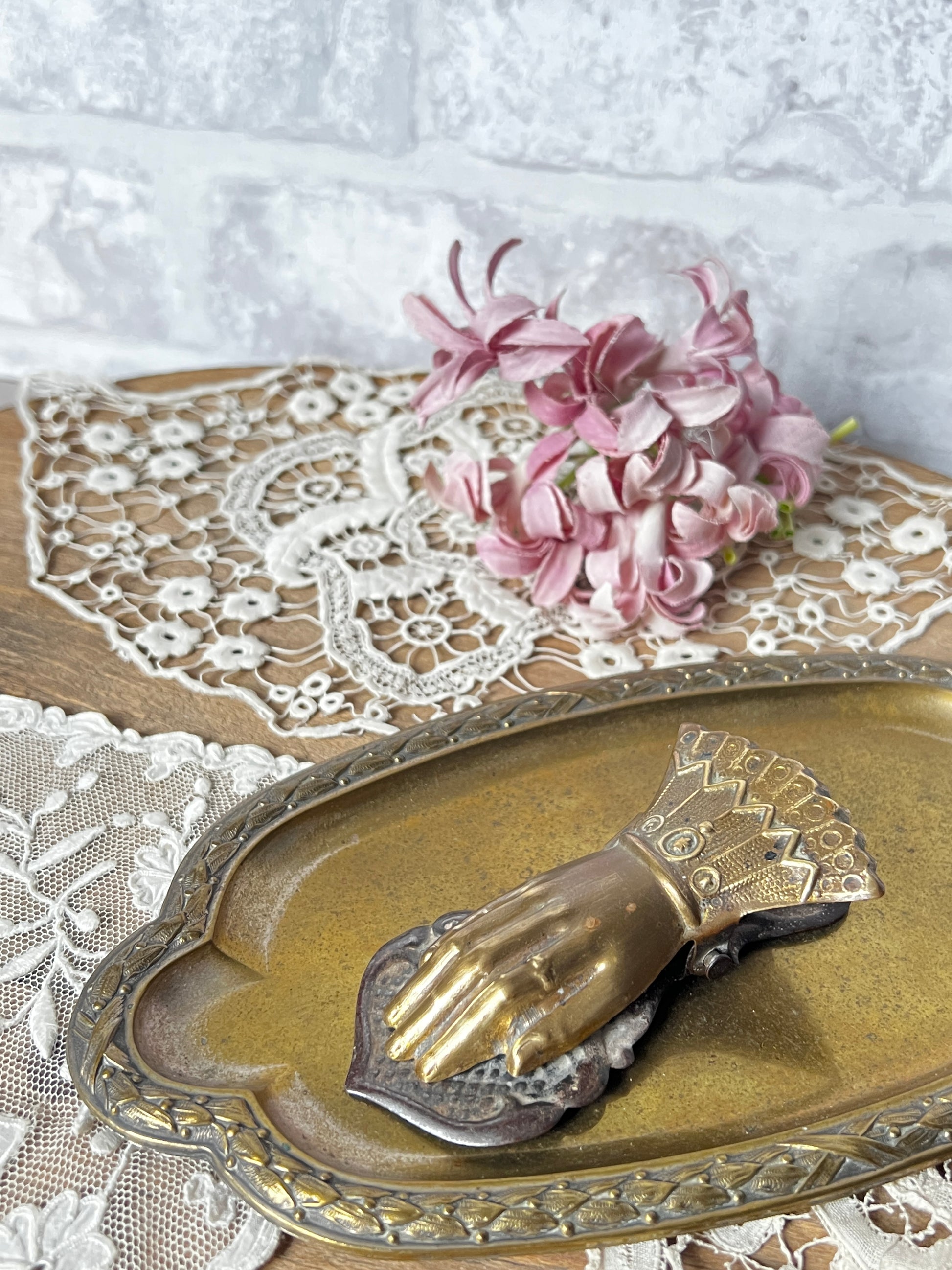 ハンドモチーフ部分は真鍮製で、台座部分はアイアン製