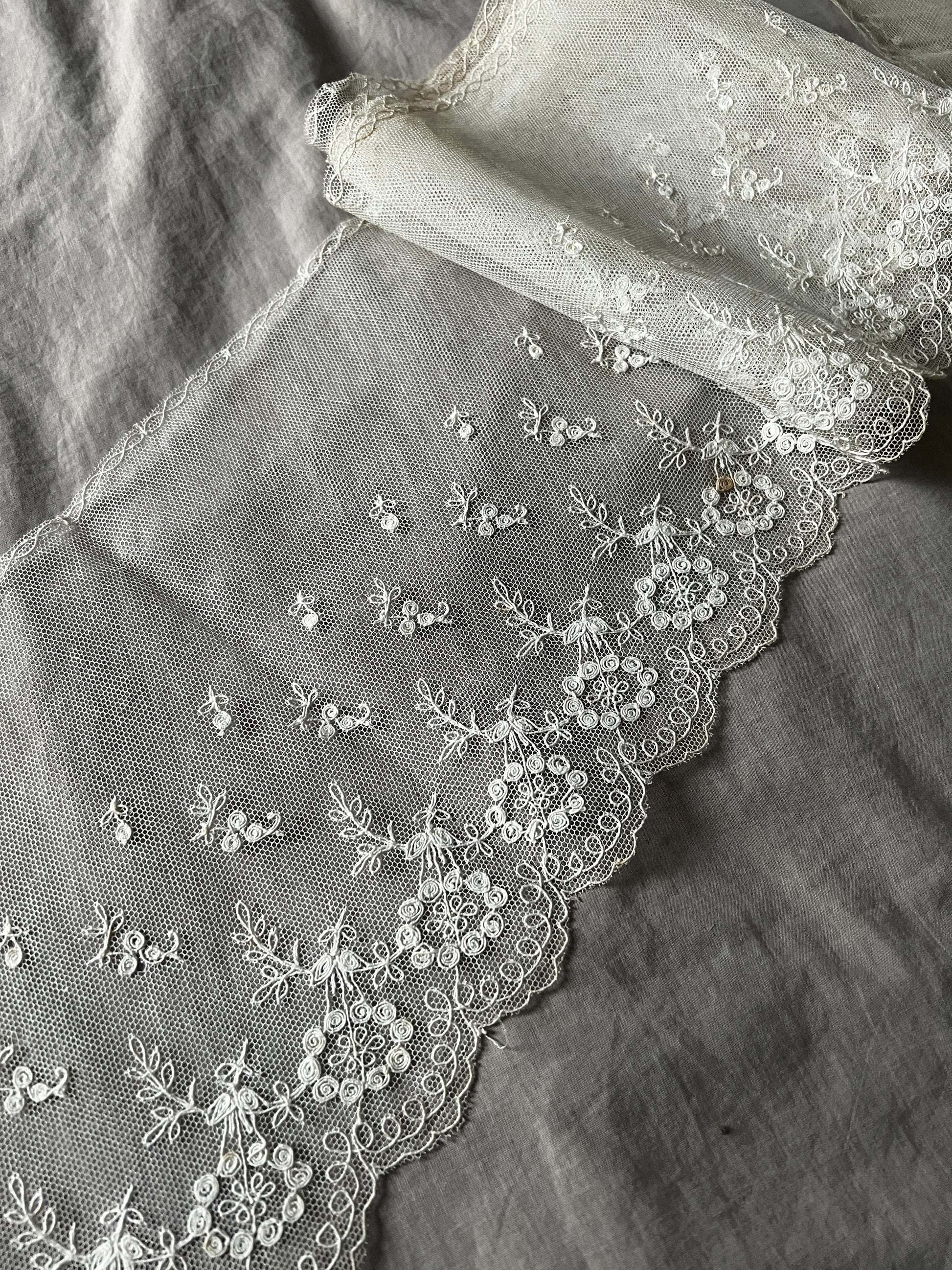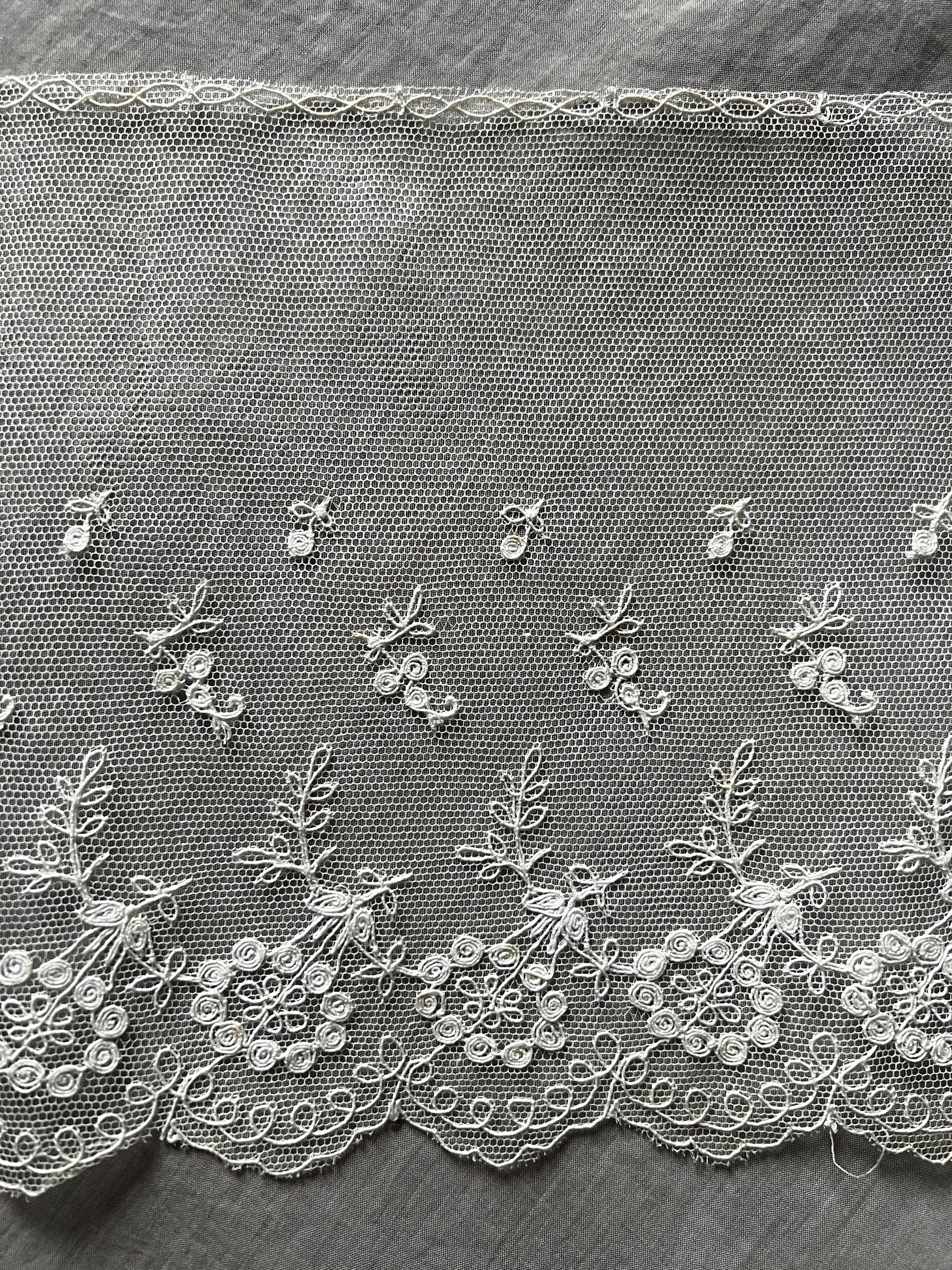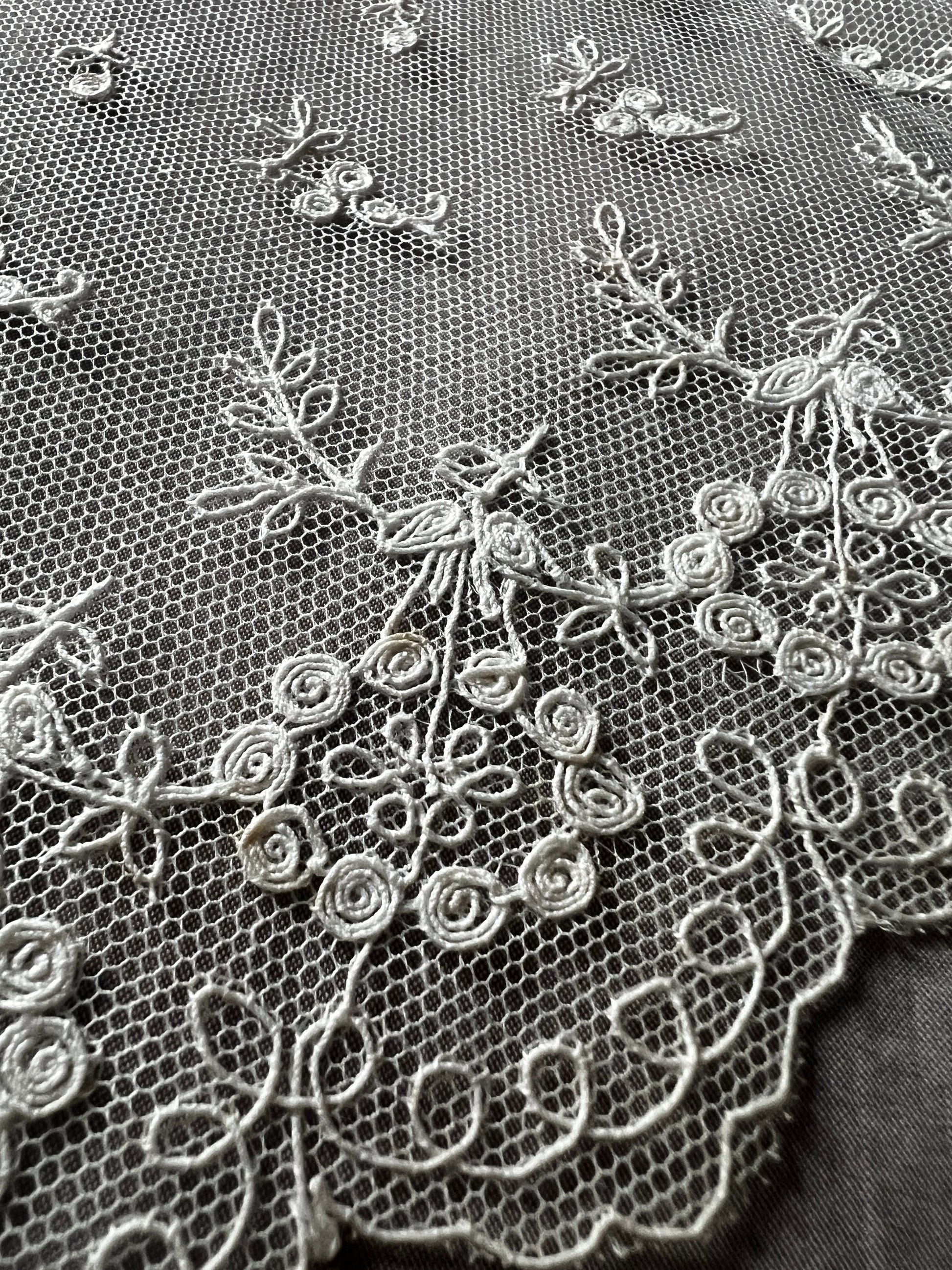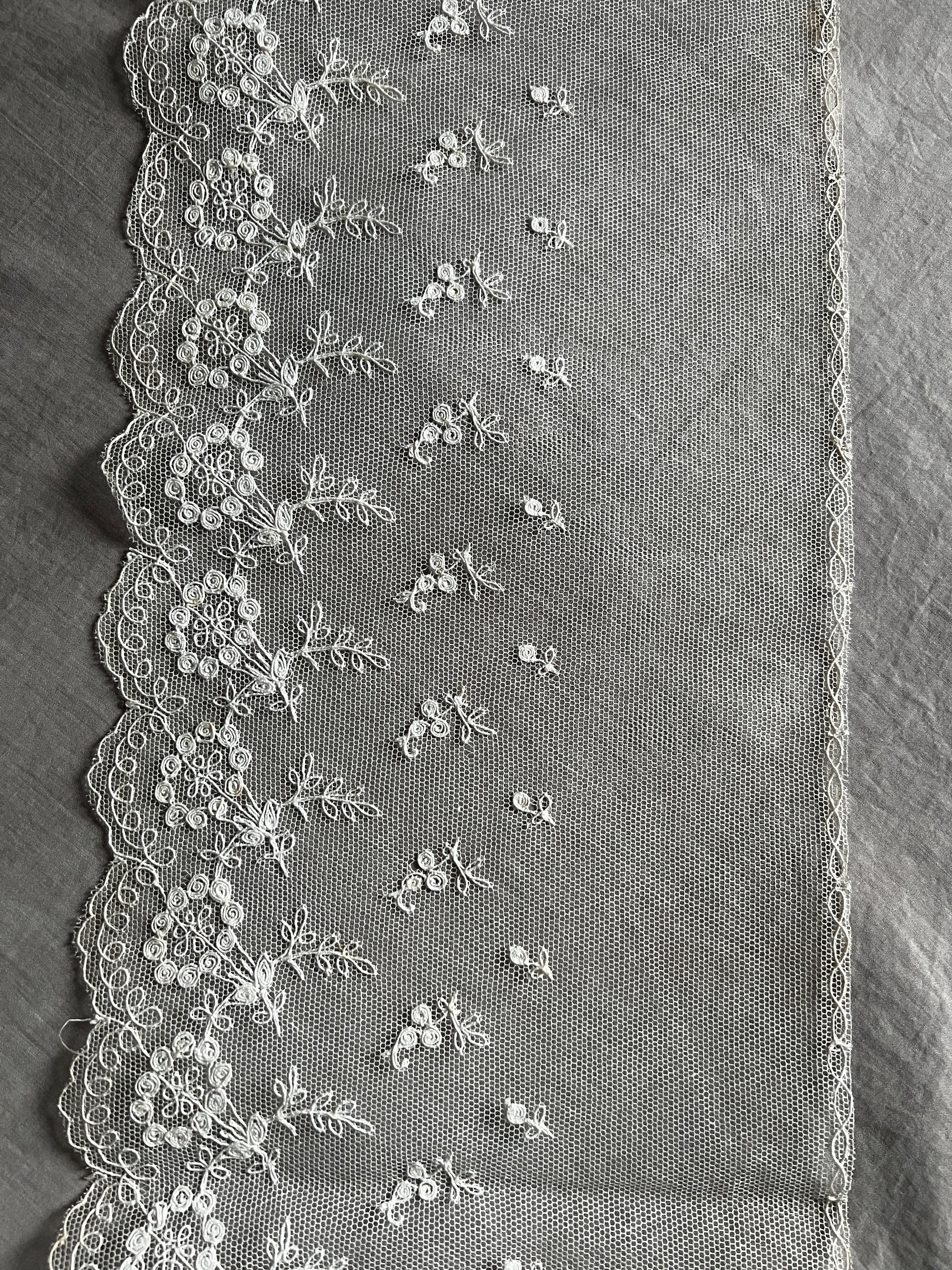アイボリーカラーのチュール地に可憐なお花の刺繍が施されたトリムです