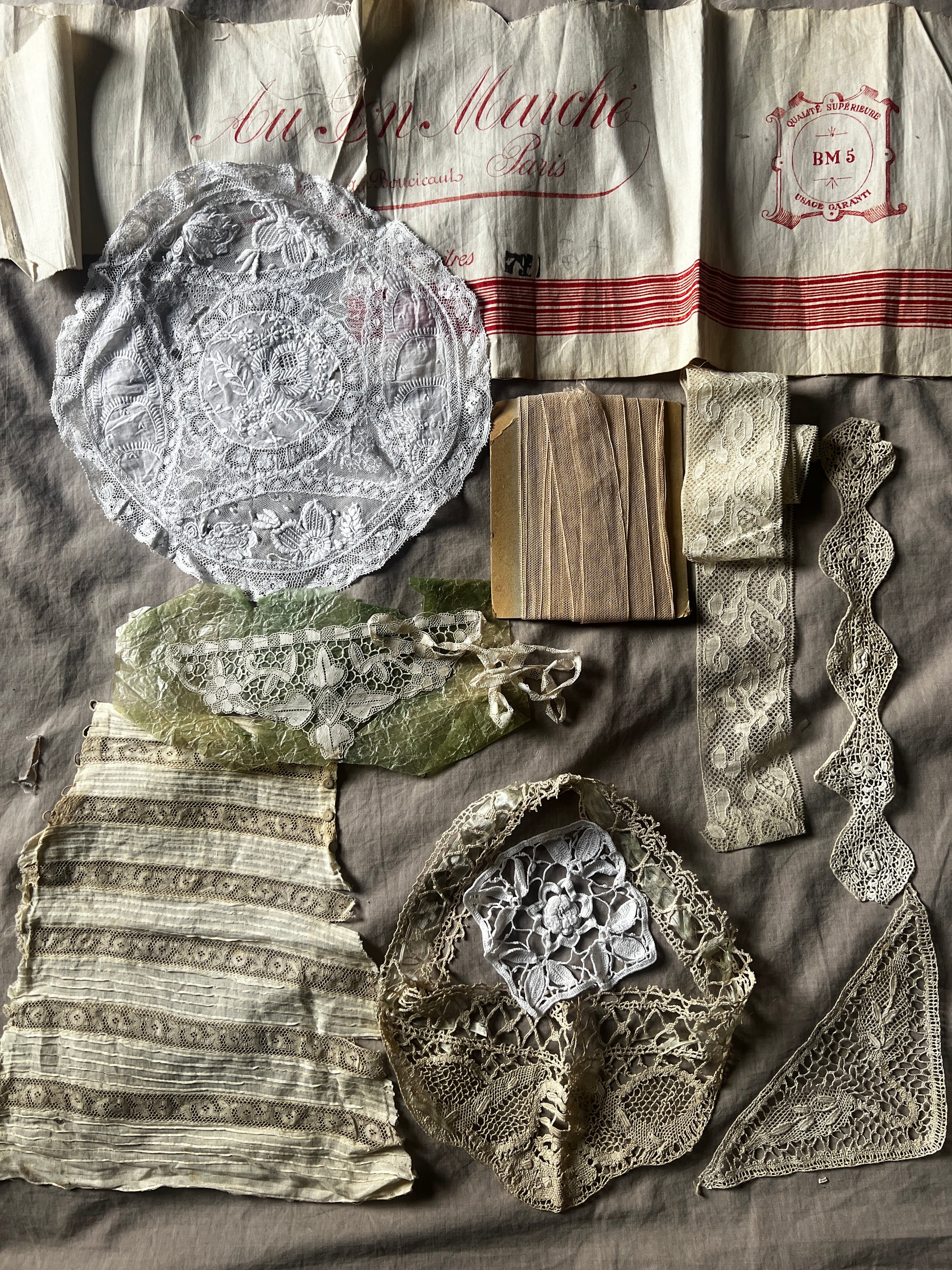 刺繍布やレース、クロスなどを詰め合わせたお得なセットです