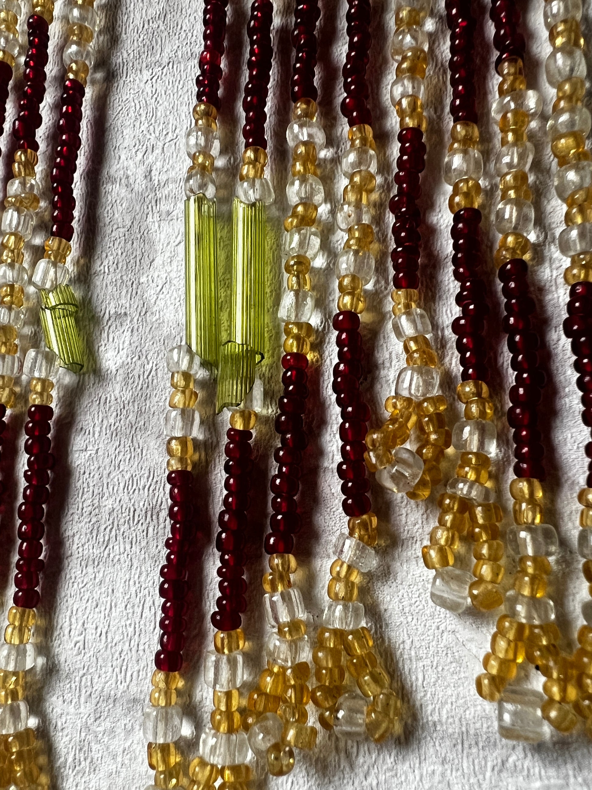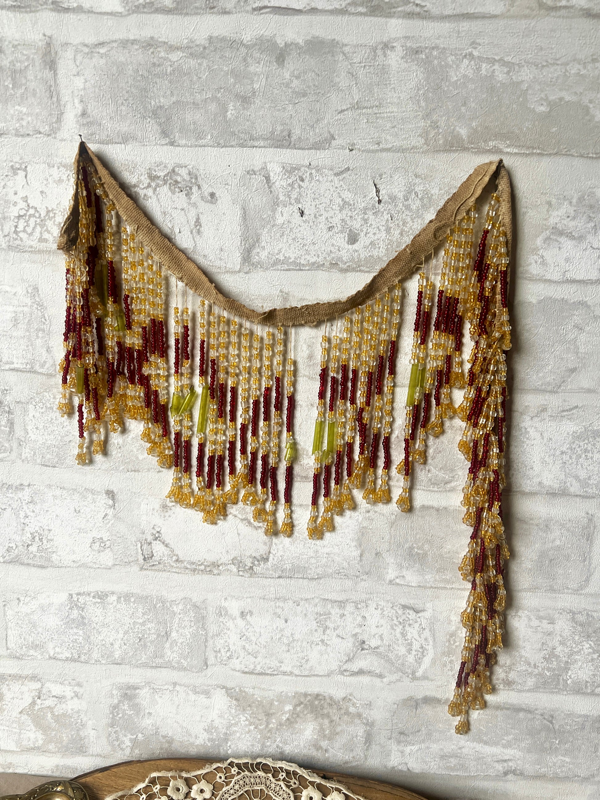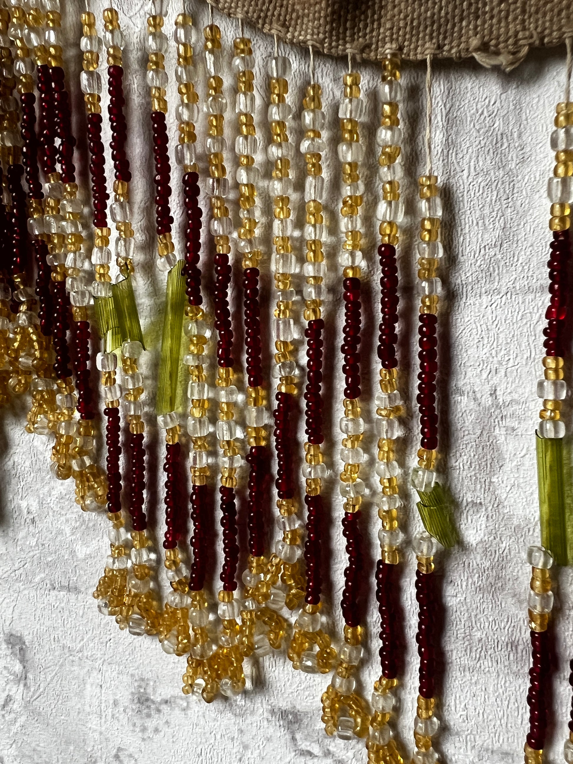 ガラスパーツの糸ゆるみや、長ビーズにわずかなカケ・割れが見られますのでフォトでご確認ください