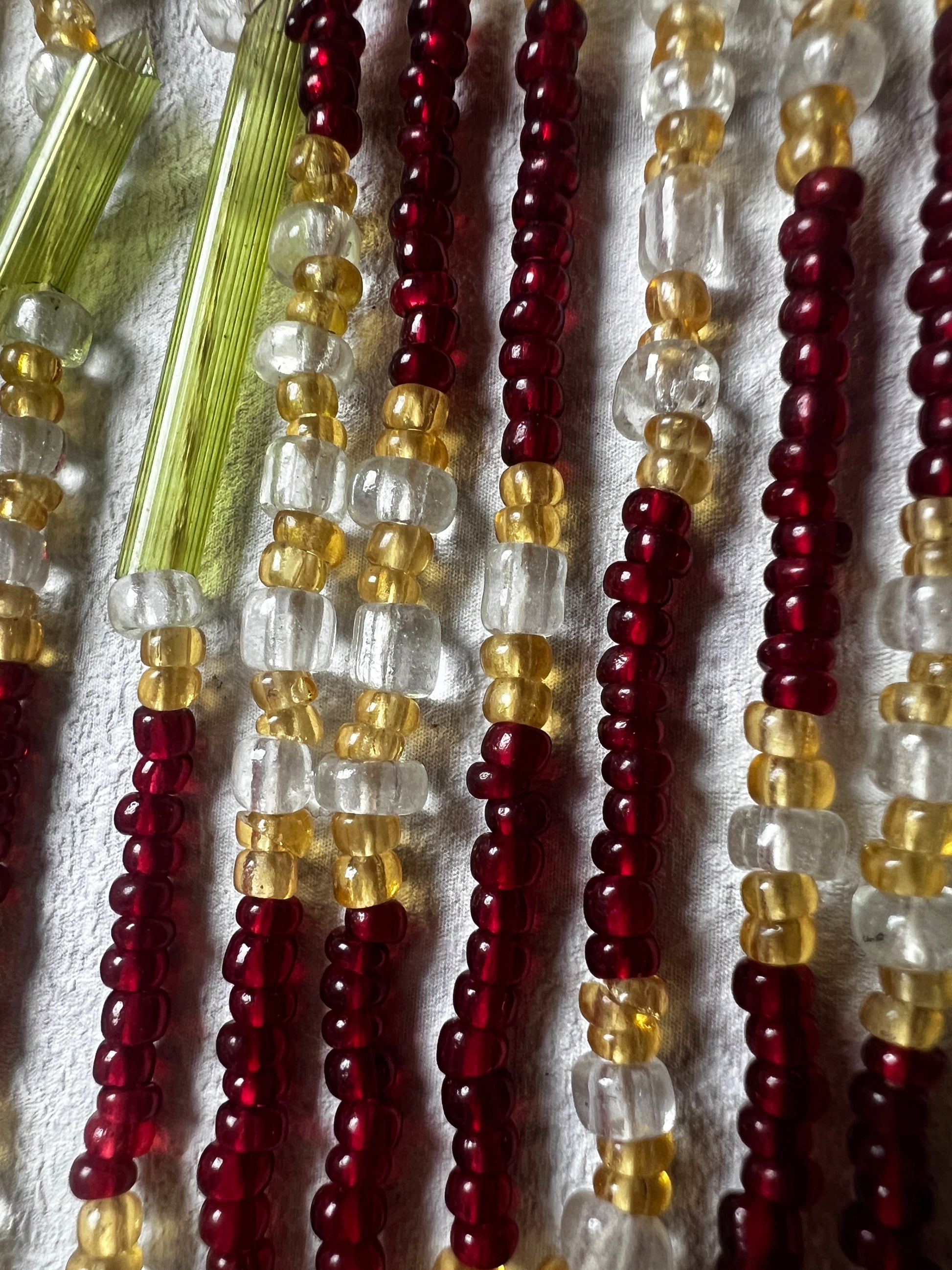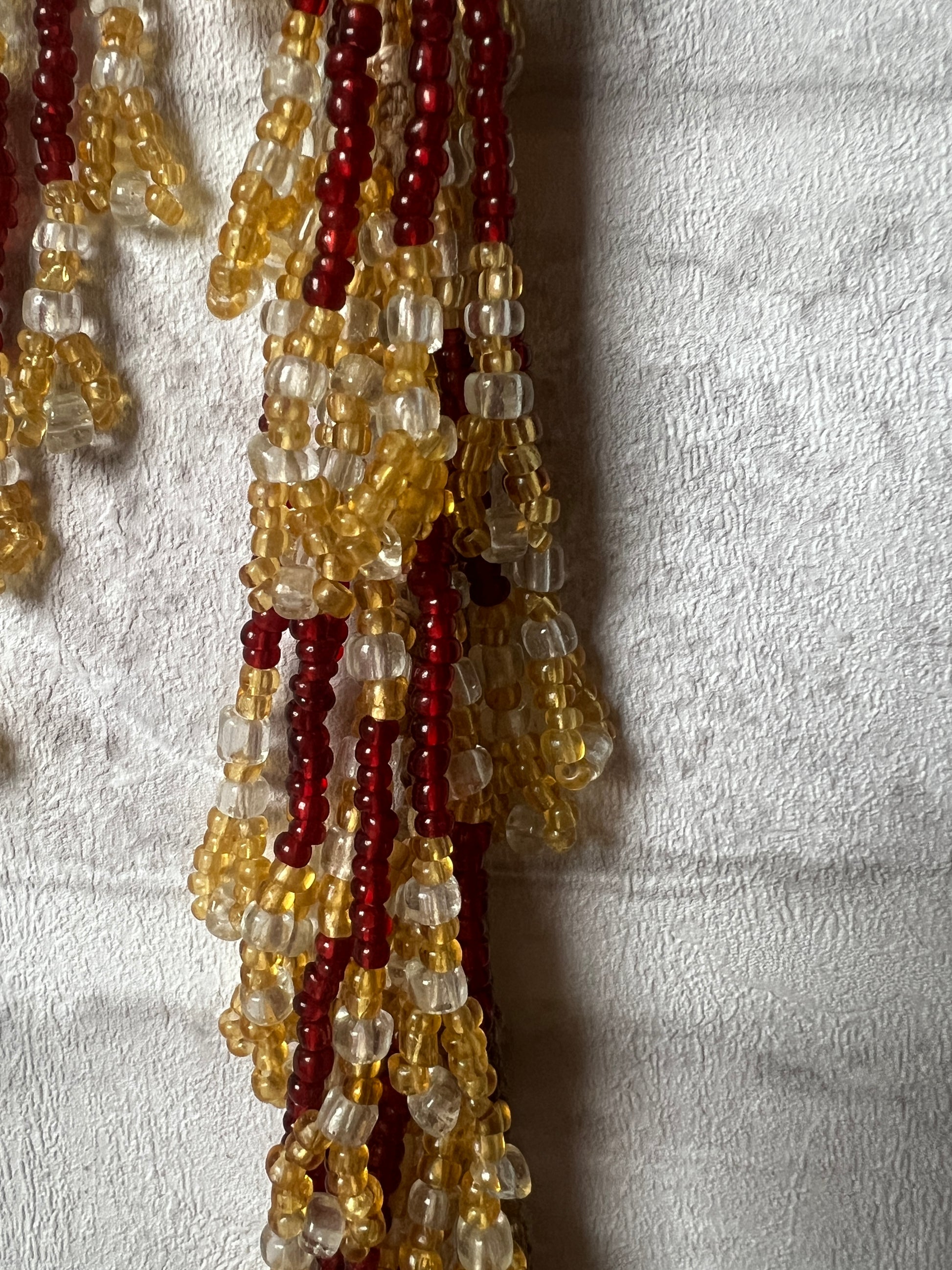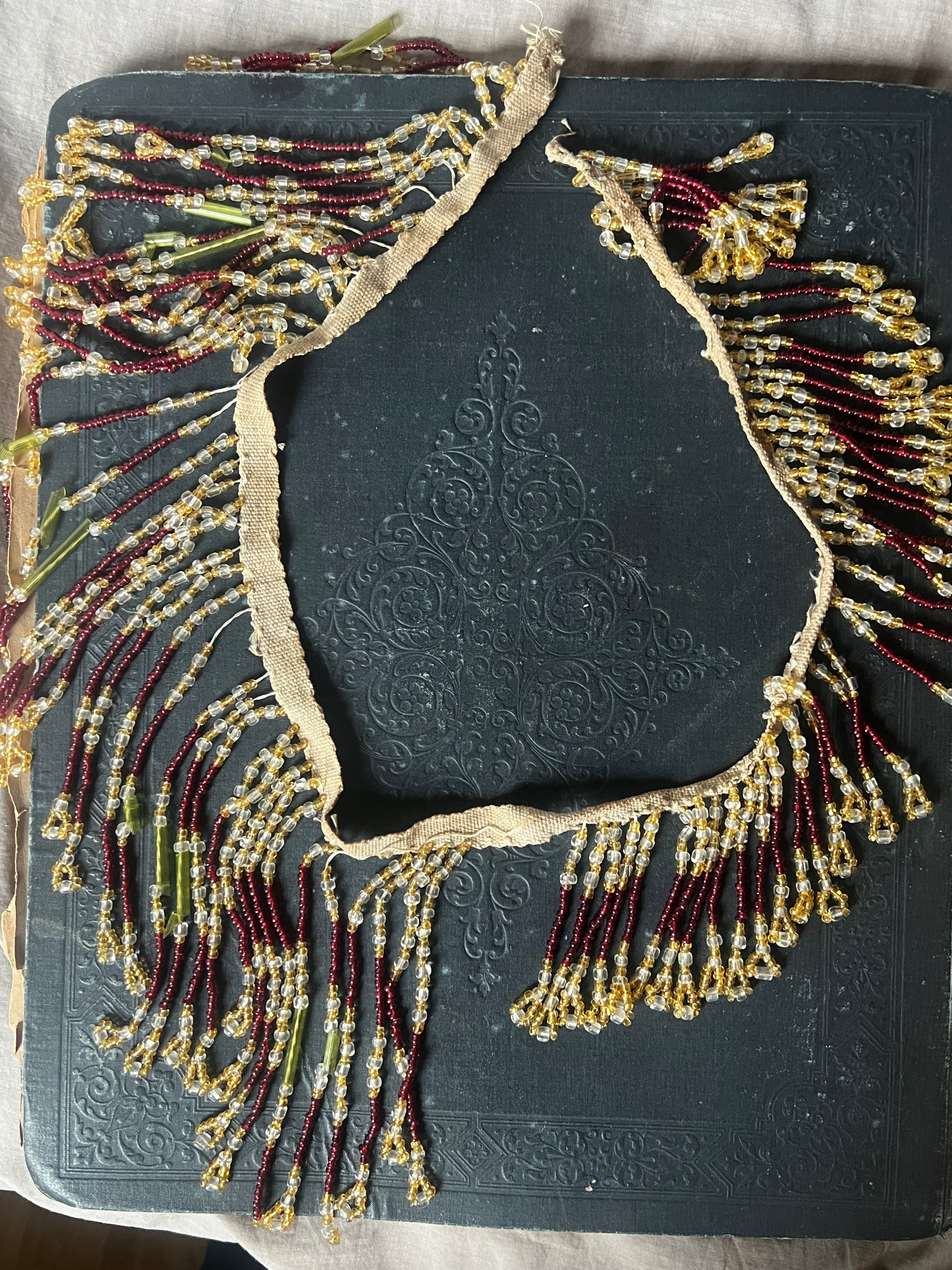 ガラスパーツの糸ゆるみや、長ビーズにわずかなカケ・割れが見られますのでフォトでご確認ください