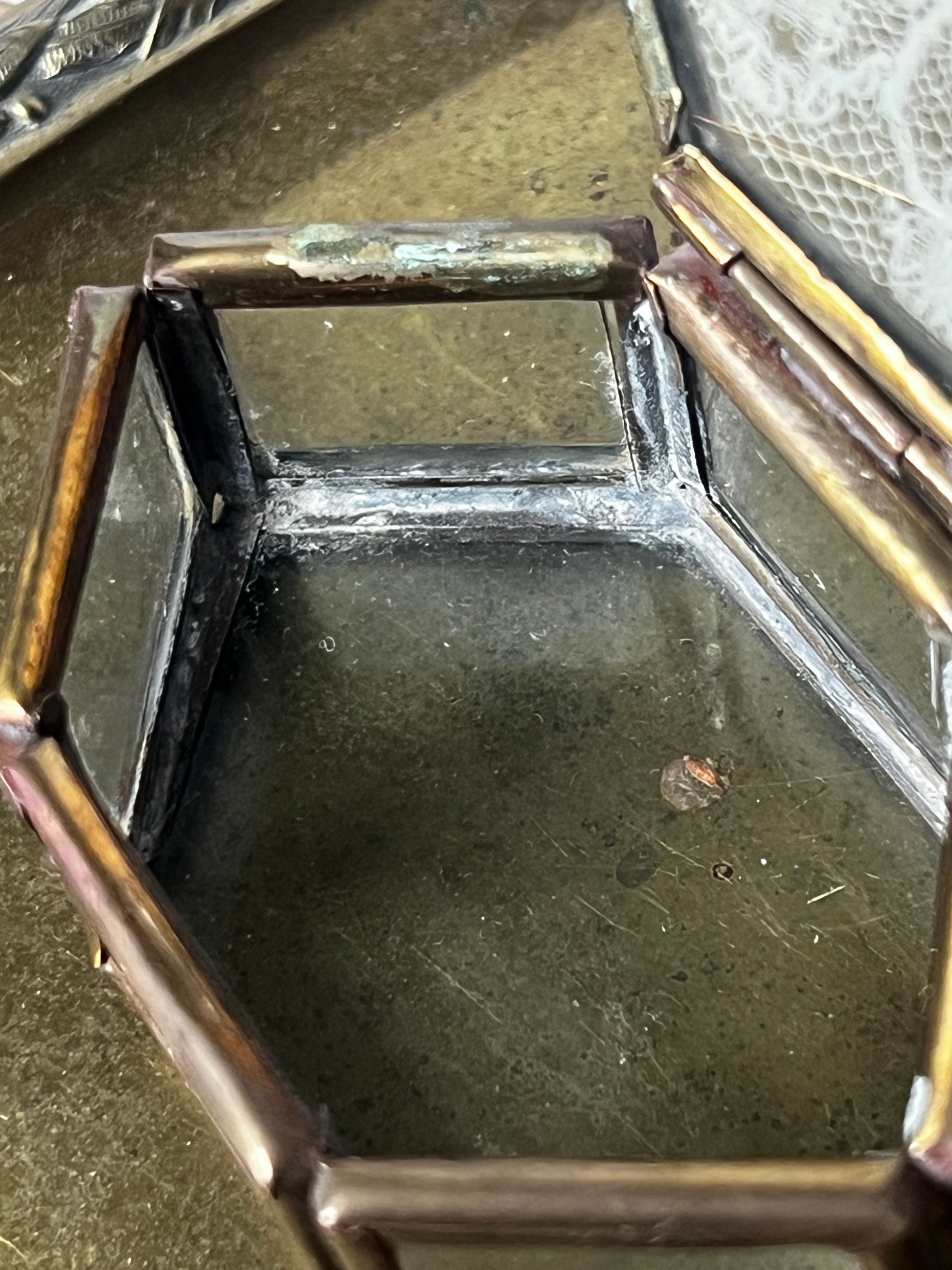 ガラス面や接合部には経年による細かな傷やくすみ、剥離が見受けられますのでフォトでご確認ください