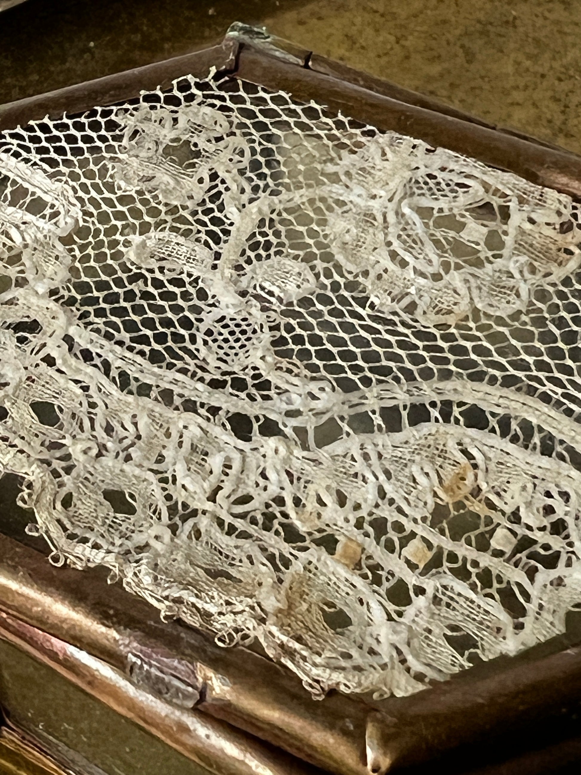 蓋部分には繊細なレースがあしらわれ、光を透かすたびに優美な表情を見せてくれます