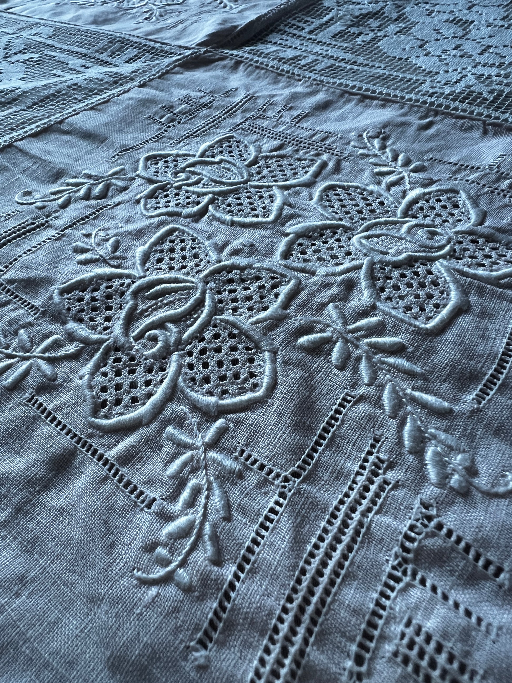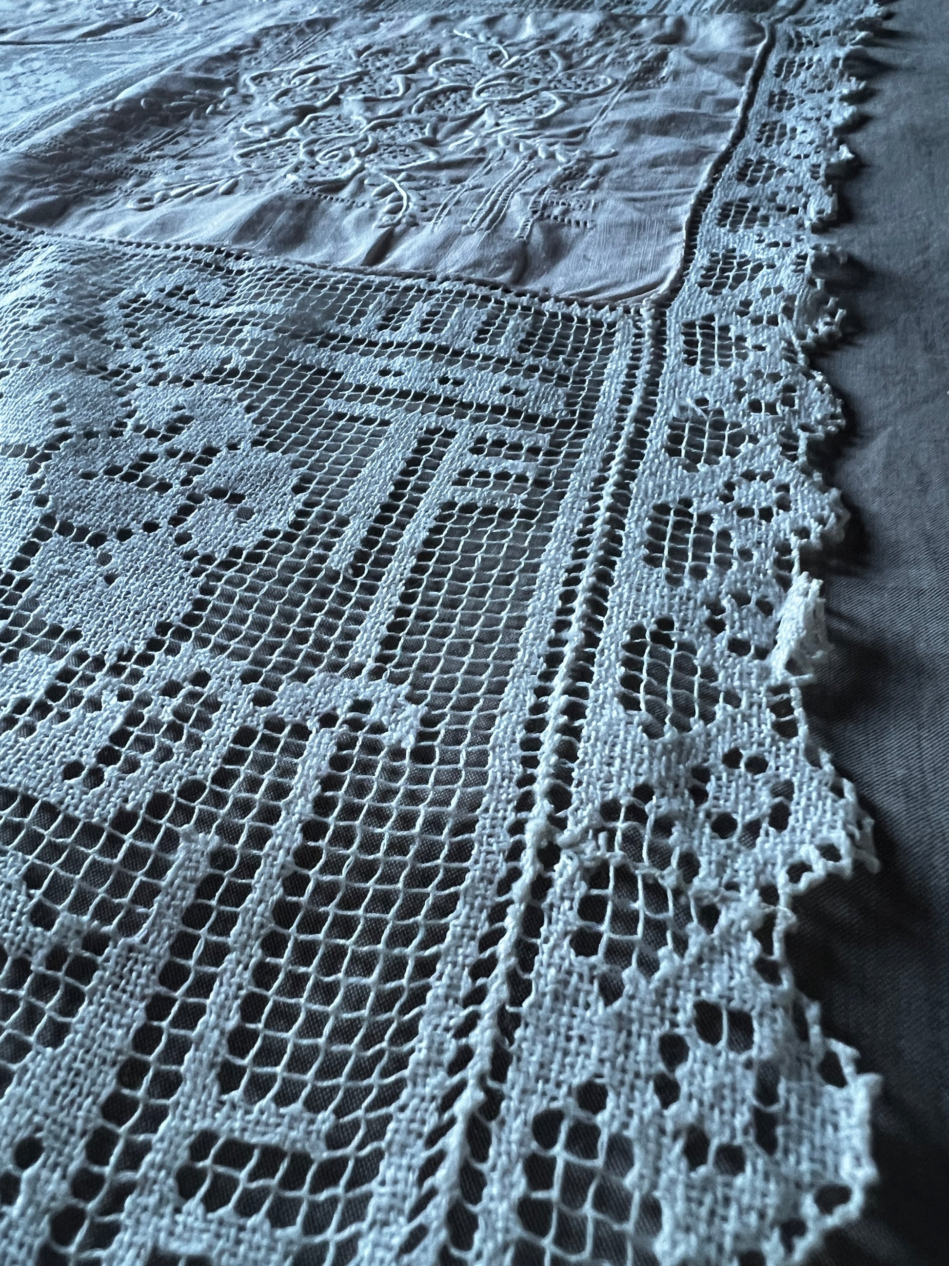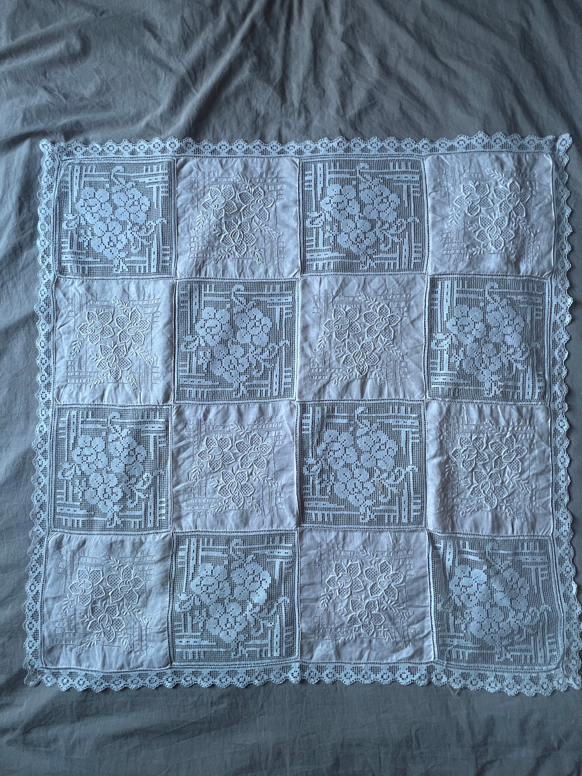 刺繍とレースの正方形クロス