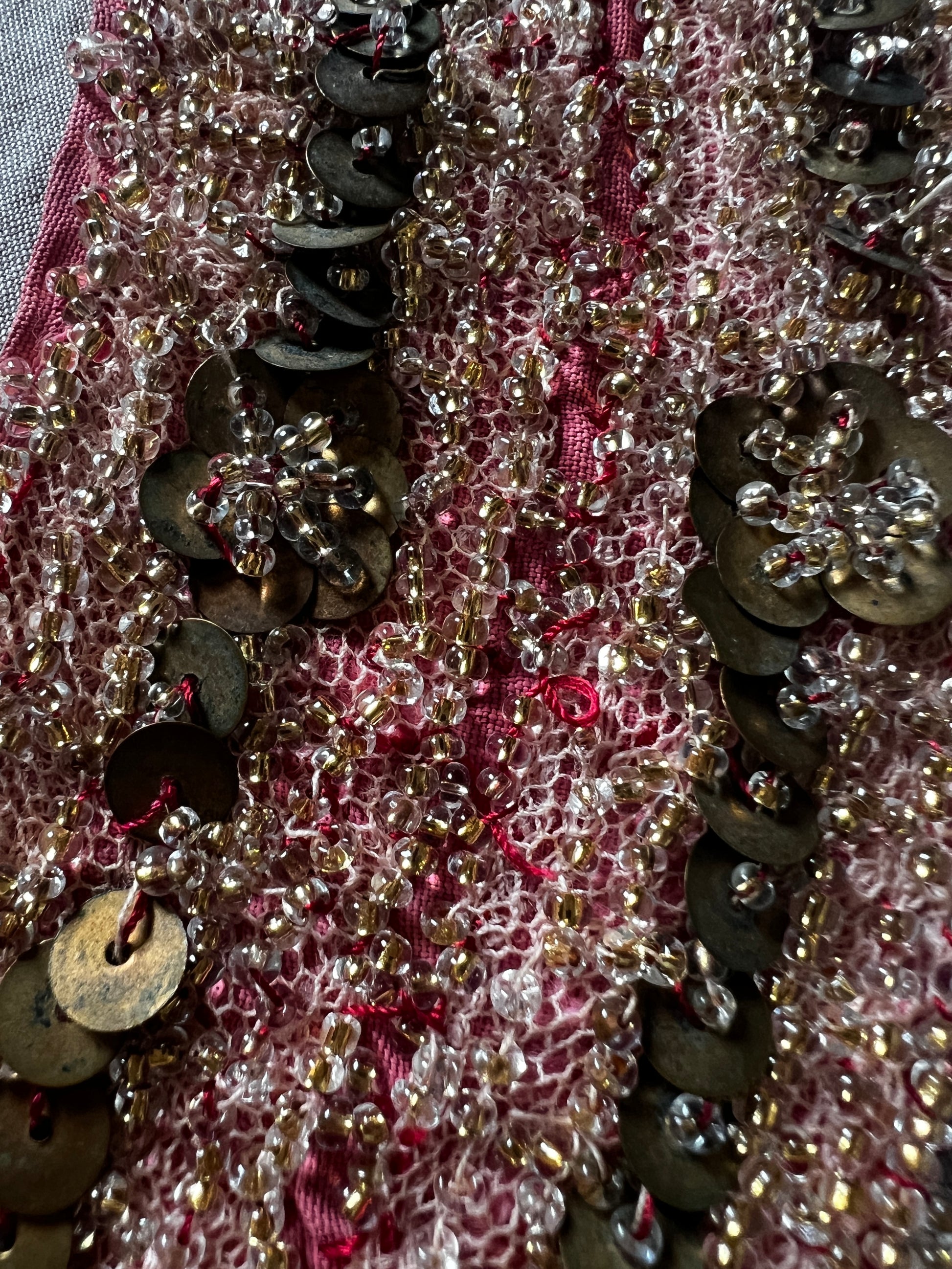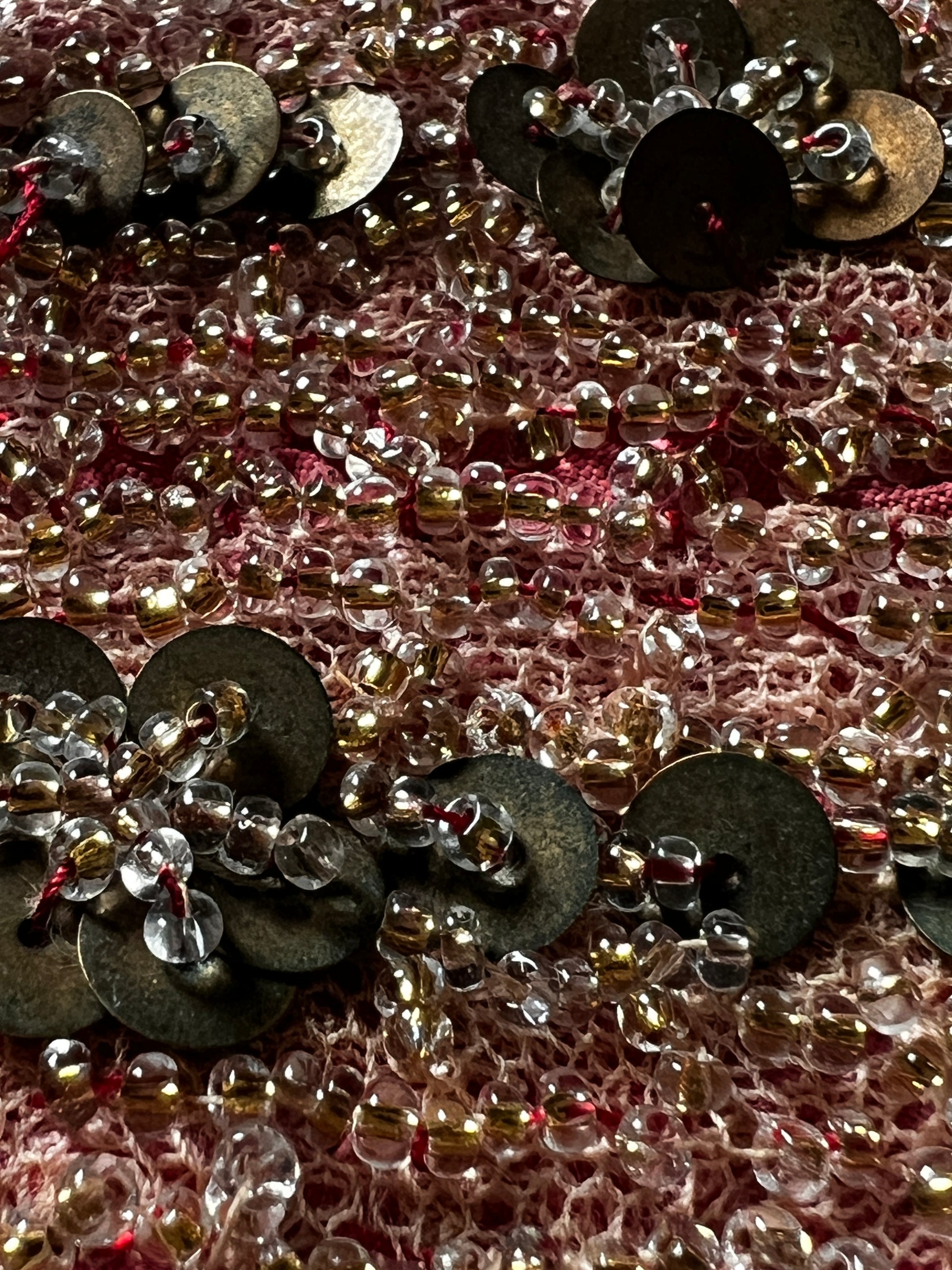 光の角度によってビーズがきらめき、ドレスやブラウスに華やぎを与えてくれます