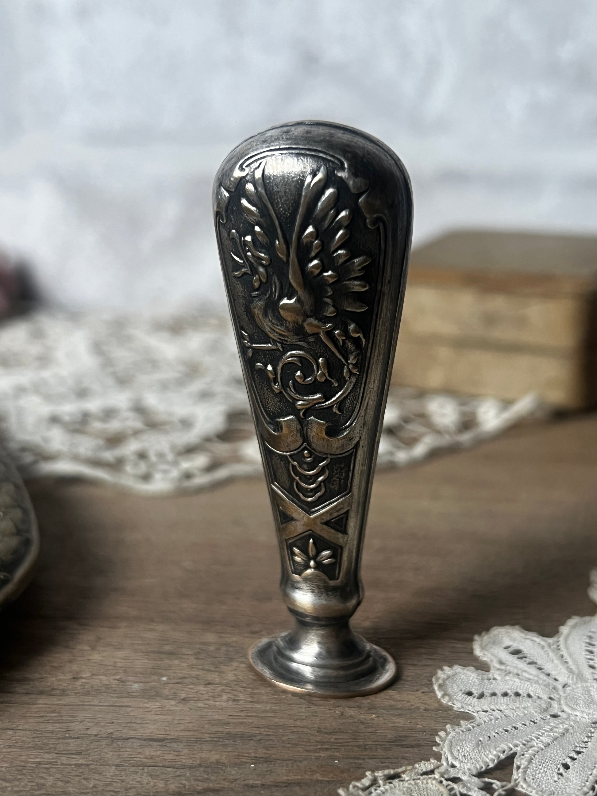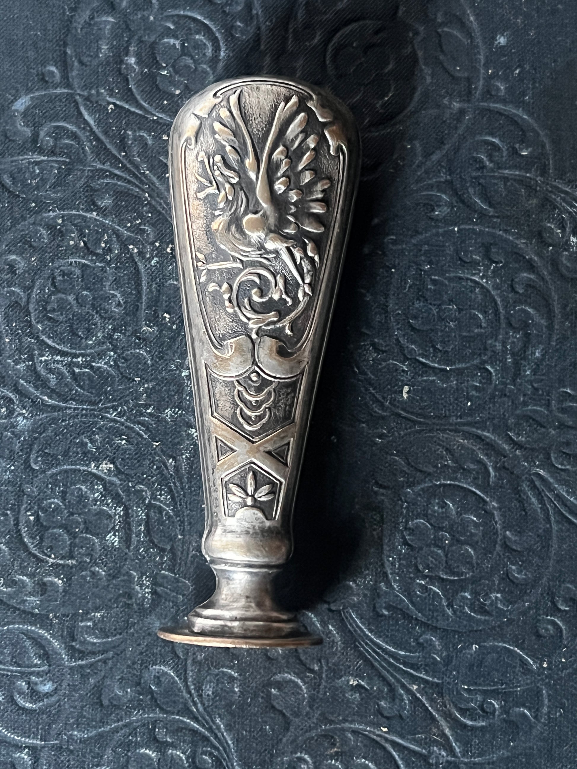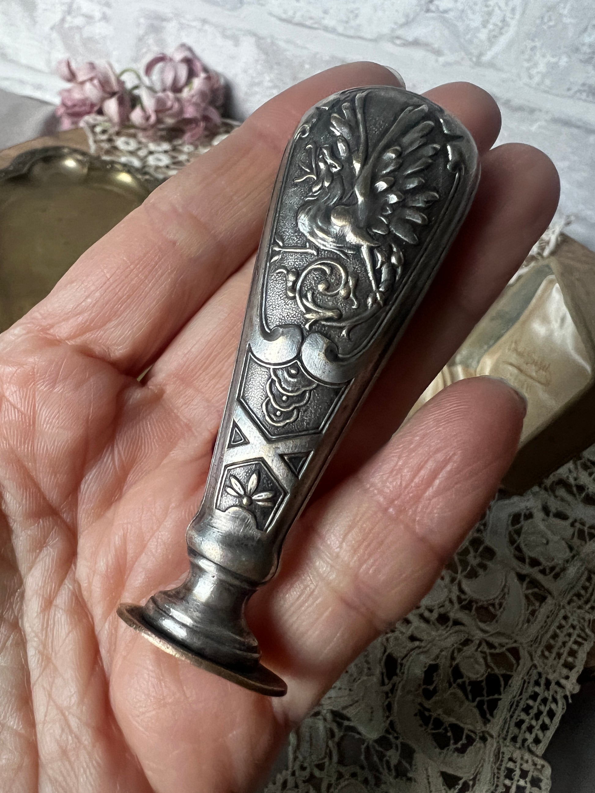 メタル製の細工が美しい柄に真鍮製のヘッドがついたシーリングスタンプです