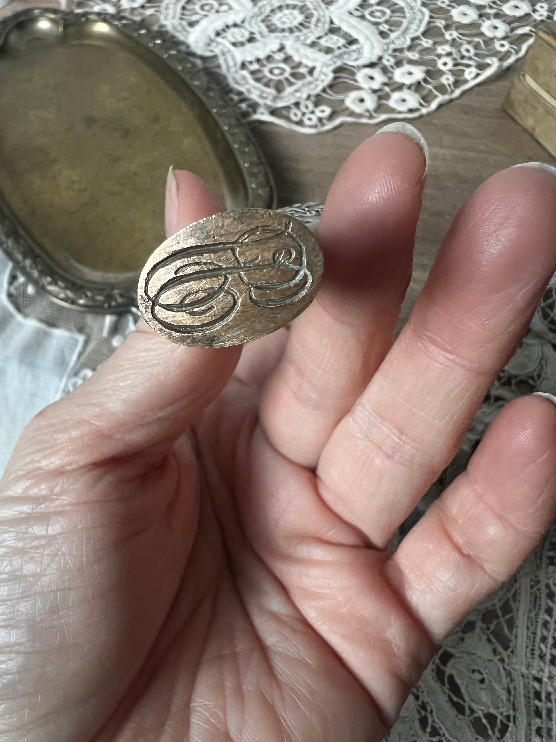 楕円形のヘッド部分には美しい字体でモノグラムが刻まれており、繊細ながらしっかりとした造り