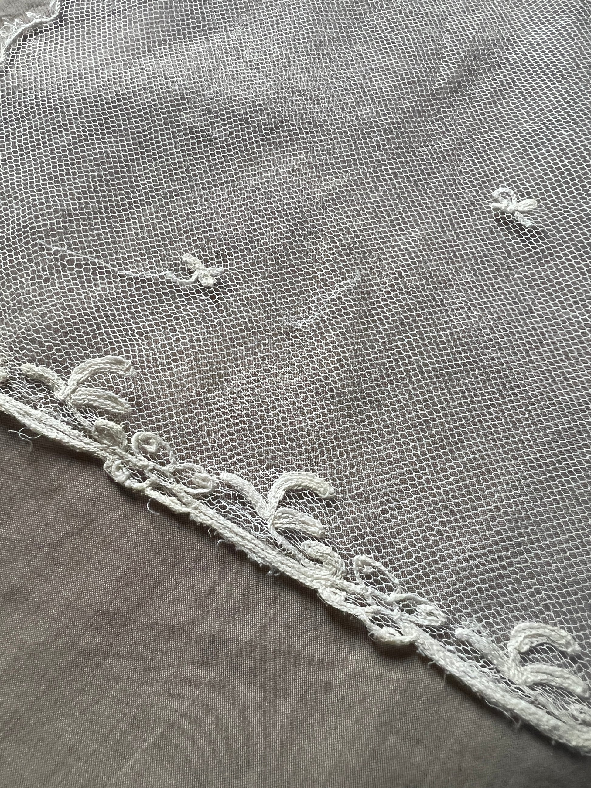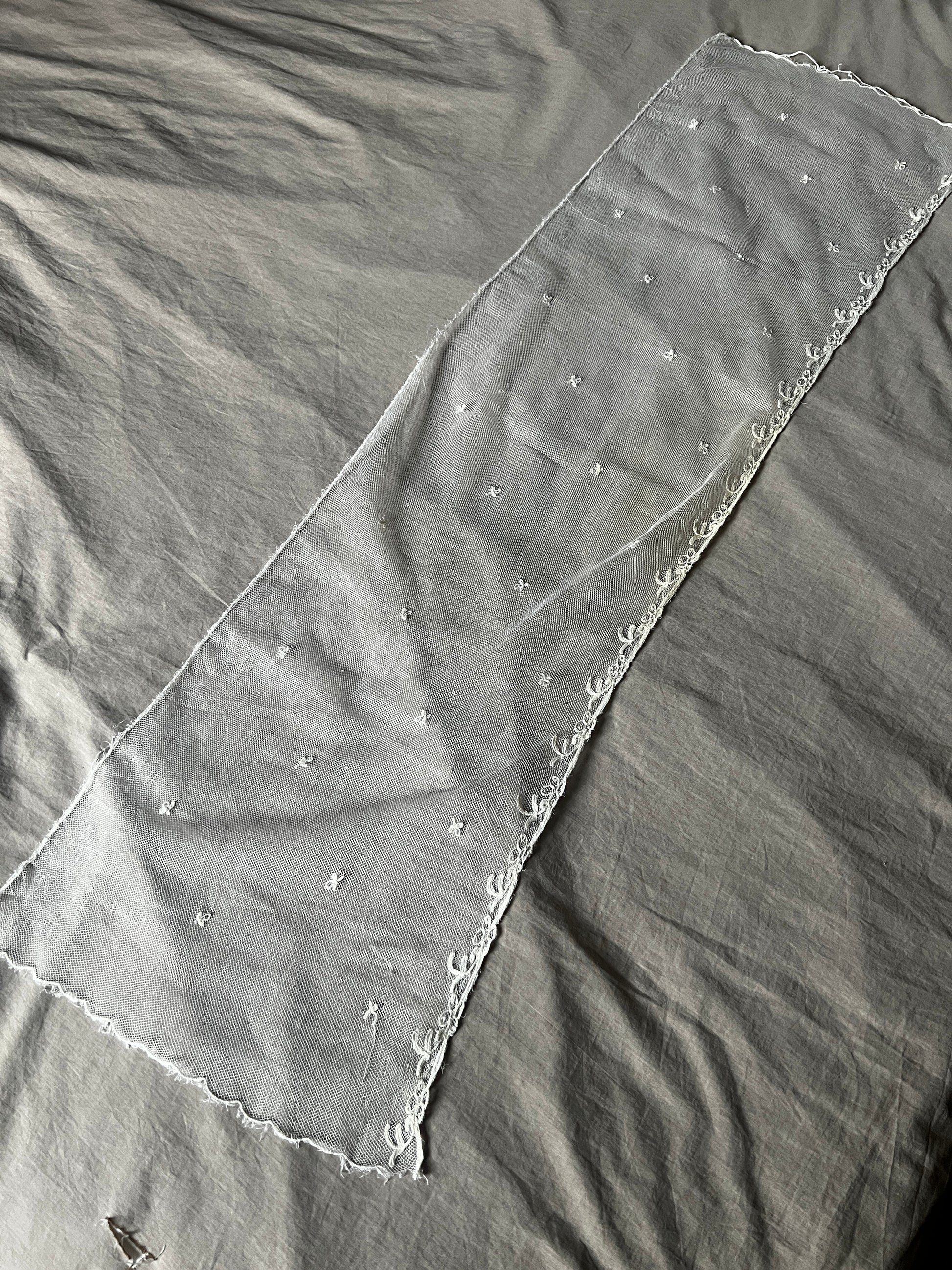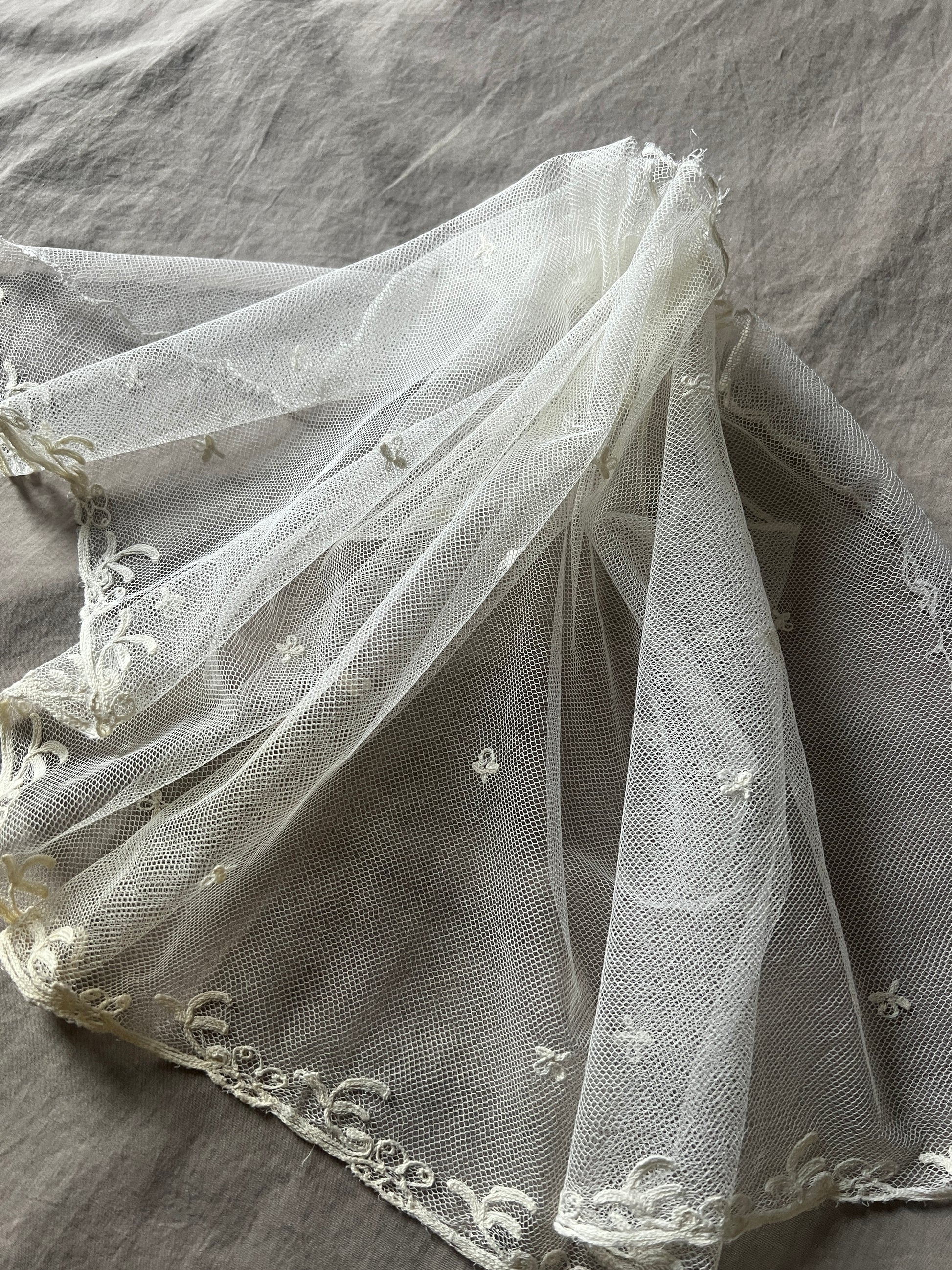 柔らかなチュール地に繊細な刺繍が施された、エクリュカラーのミニヴェールです