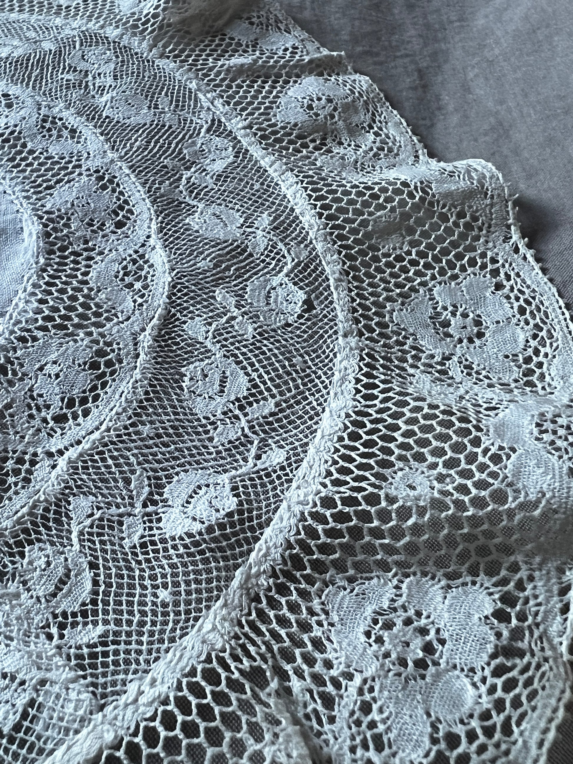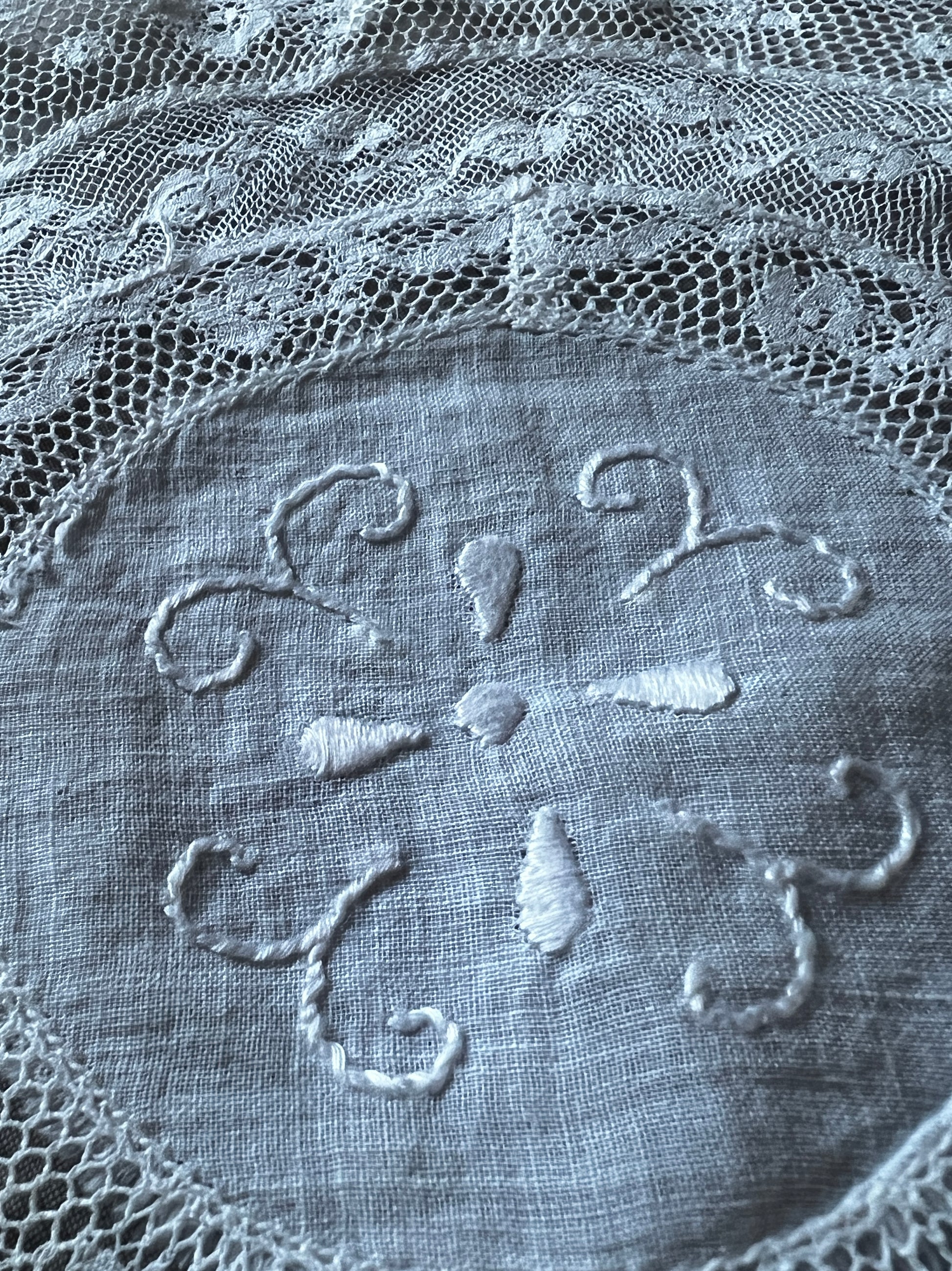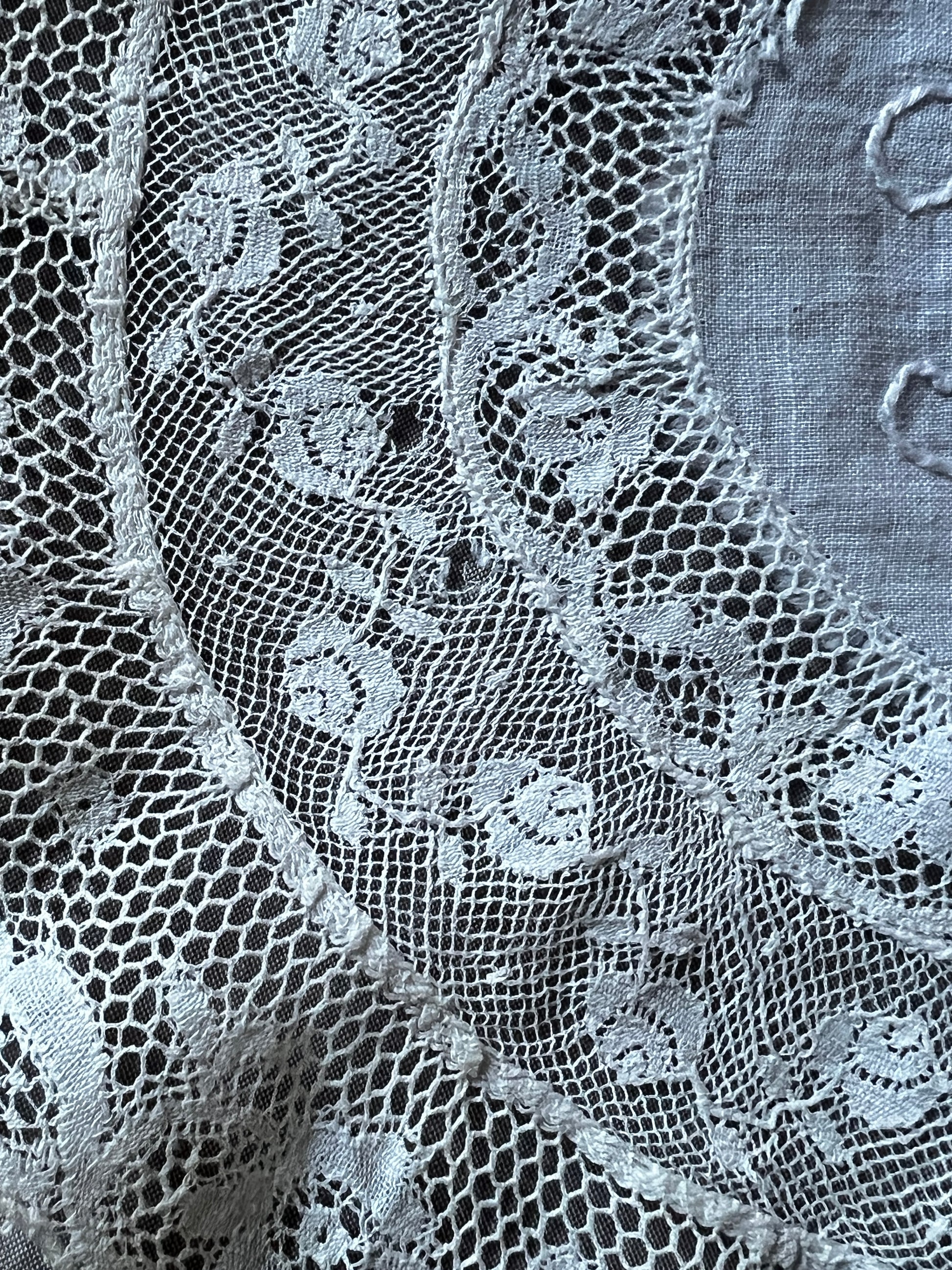 刺繍布とヴァランシエンヌレースを組み合わせて仕立てられたドイリーです