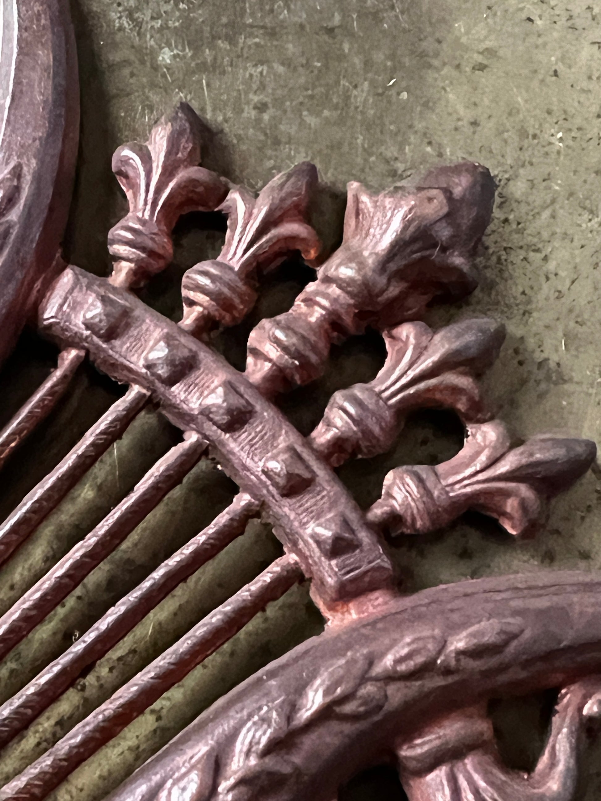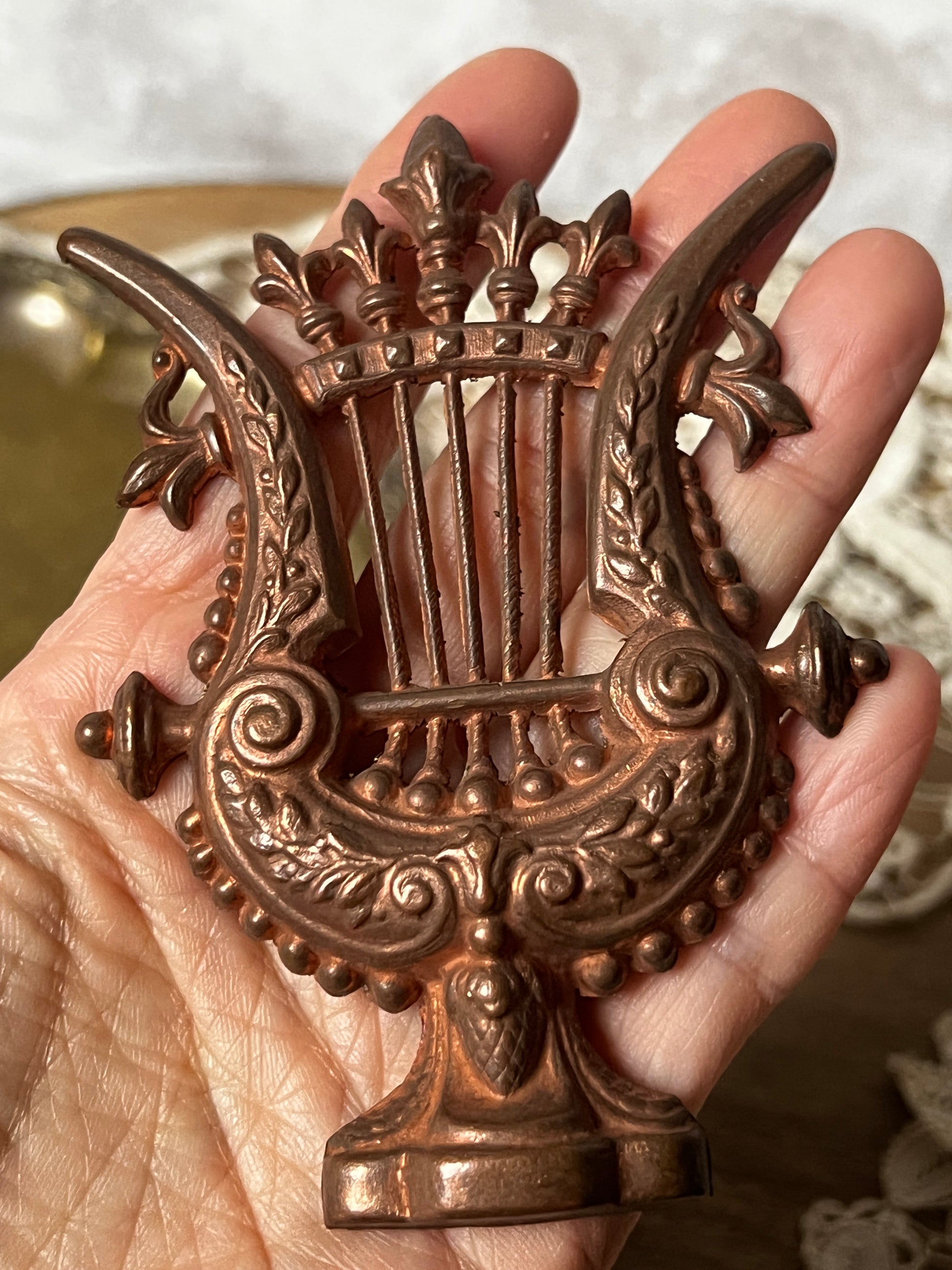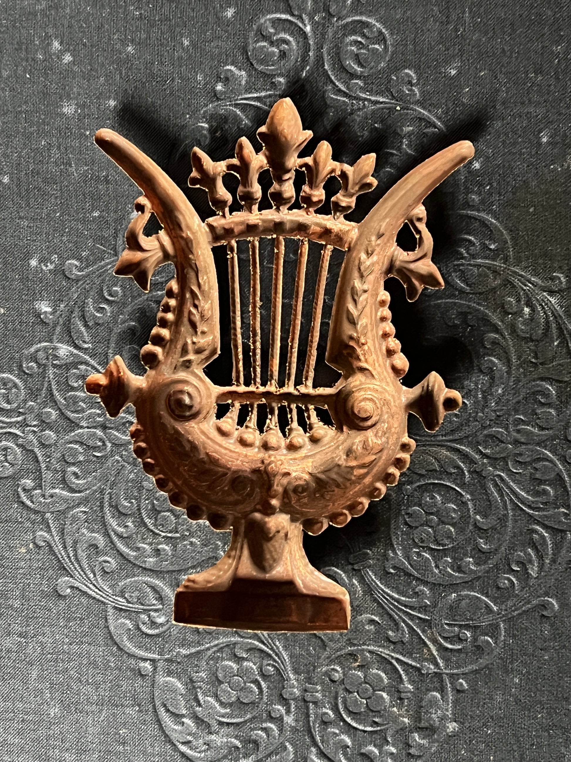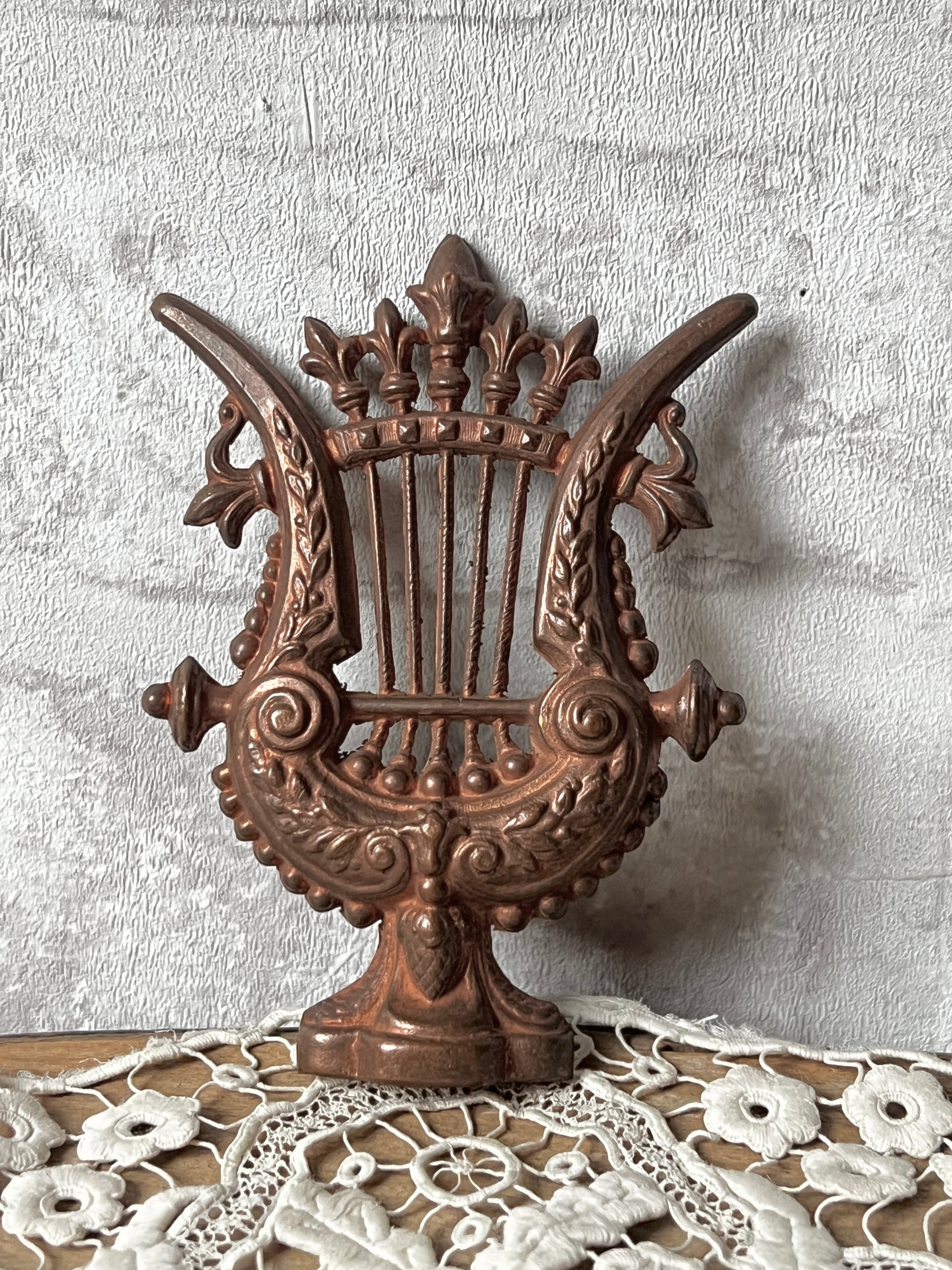 打ち出し加工で繊細に竪琴を描いた、ブロンズ製の美しいレリーフです