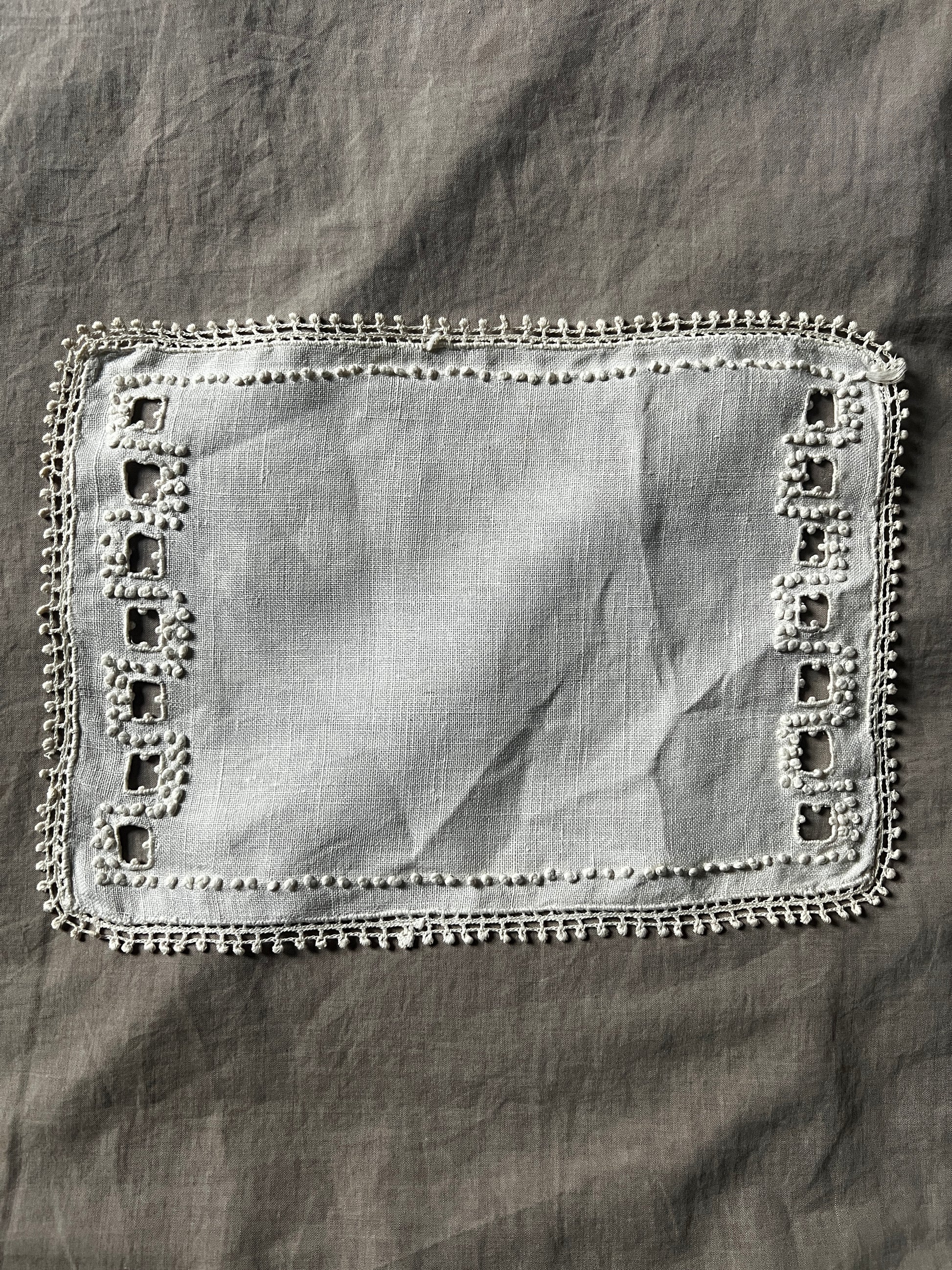 フレンチノットの粒々が愛らしく並んだ、刺繍のミニクロスです