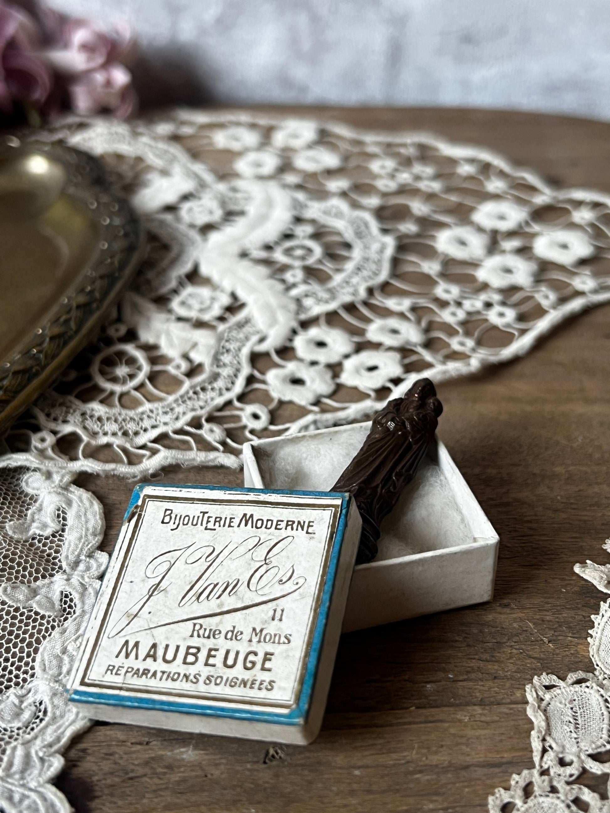 た「Bijouterie Moderne J. Van Co.」という宝飾店の古い紙箱に収められています