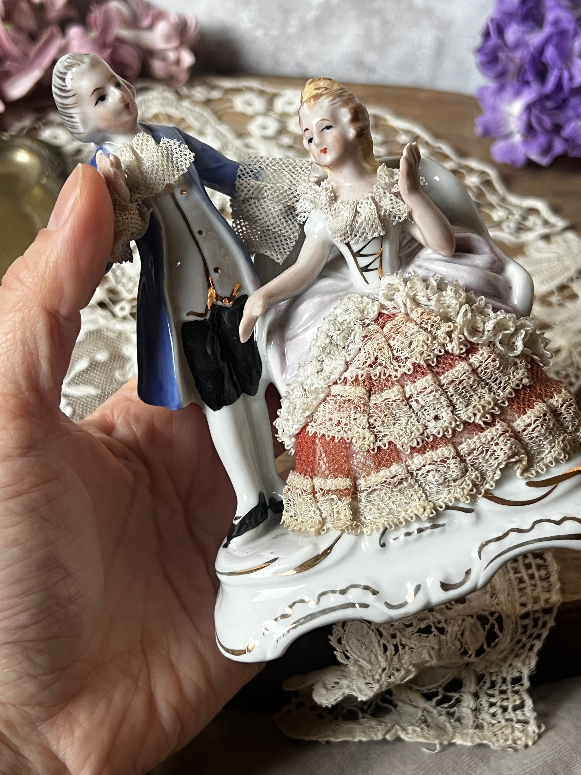 レース装飾磁器フィギュリン (ロココスタイル)