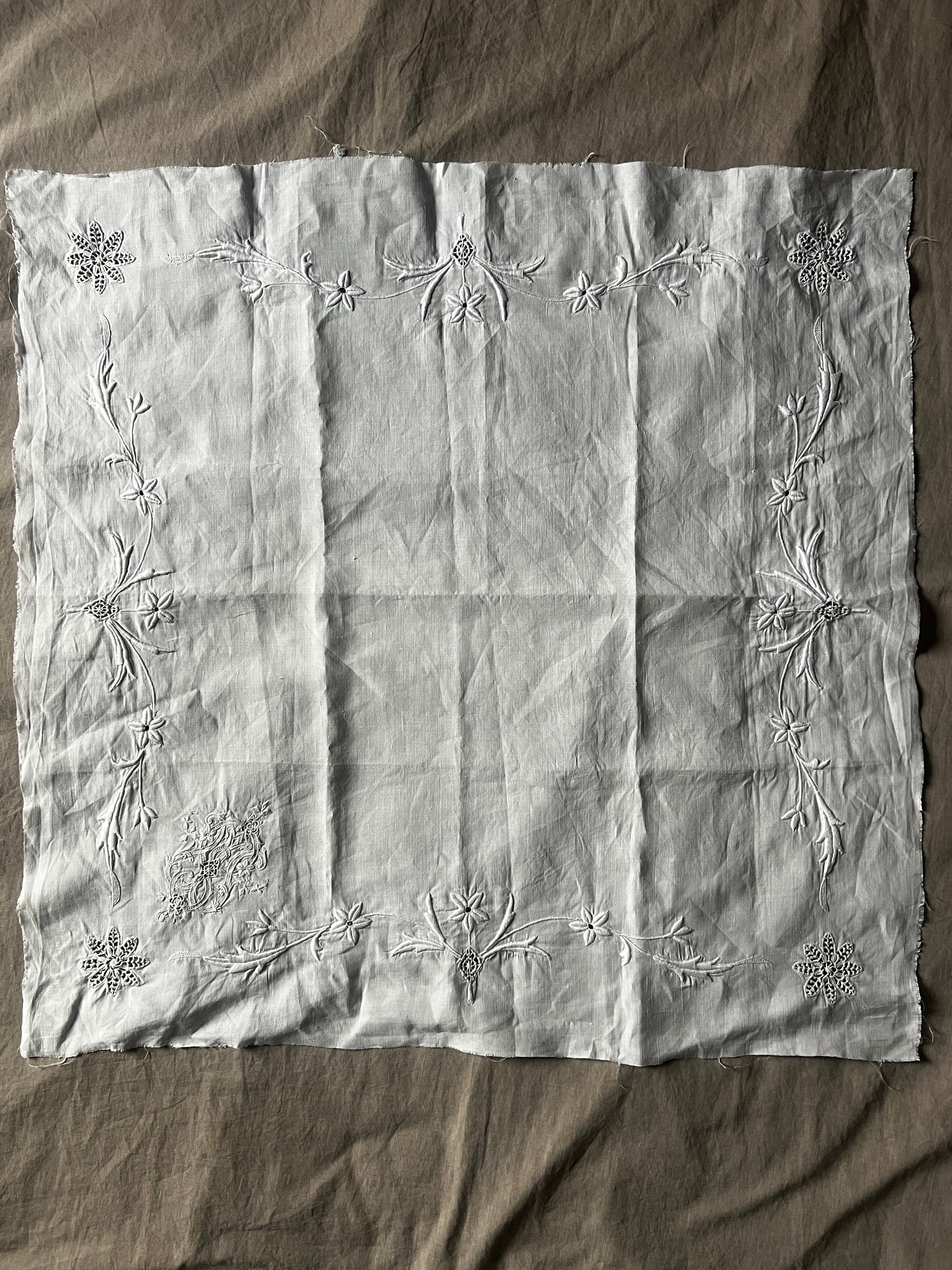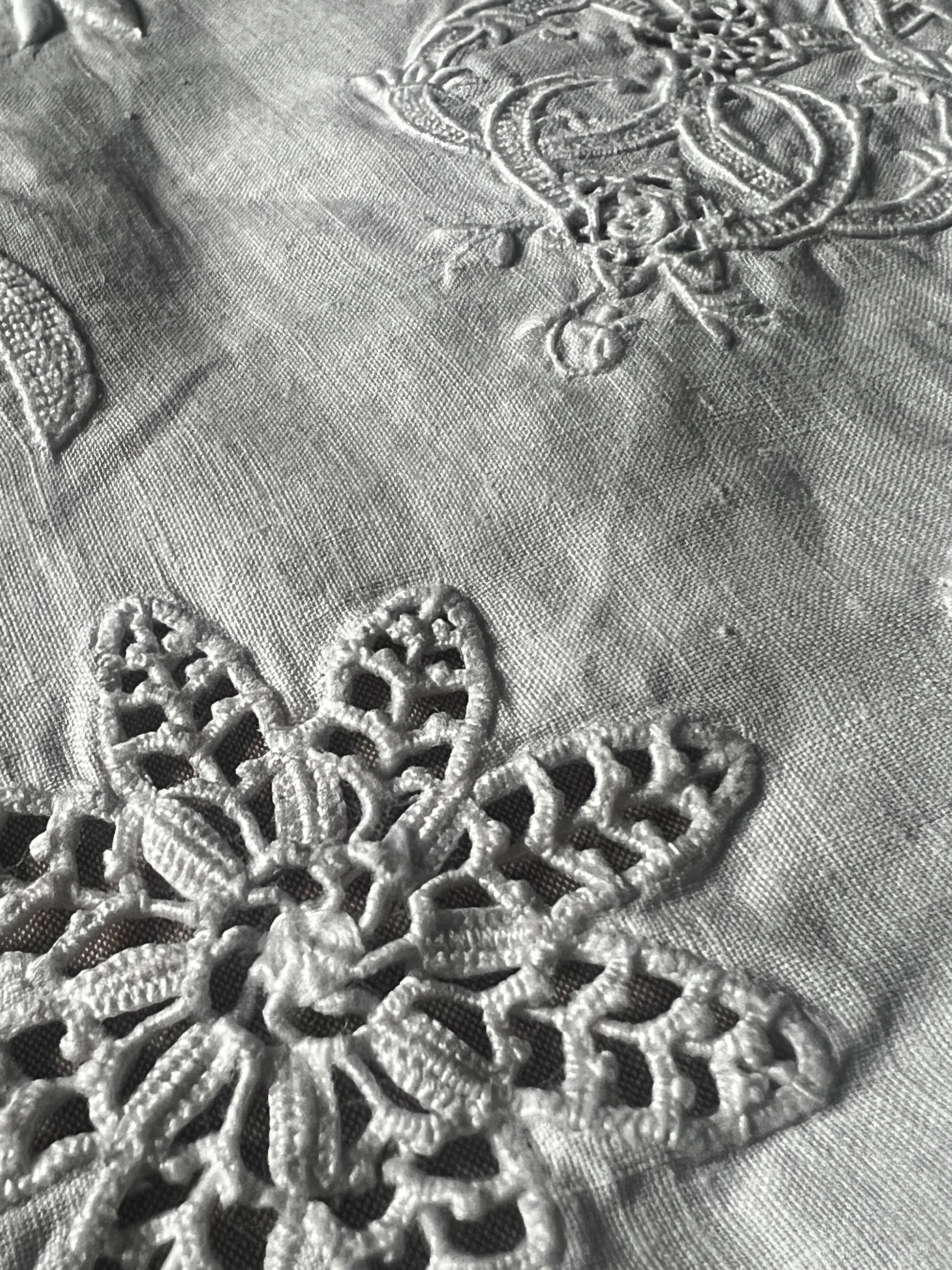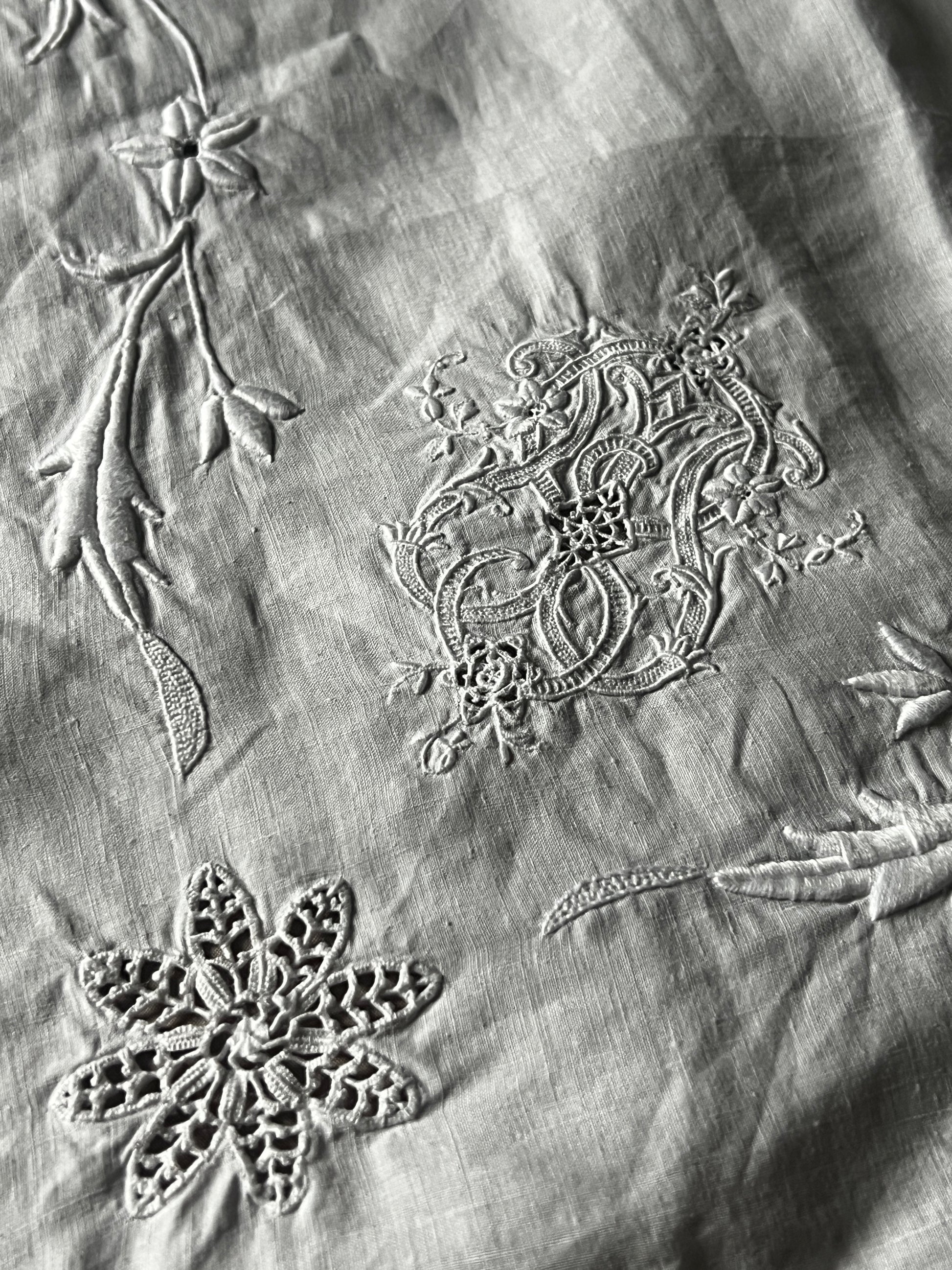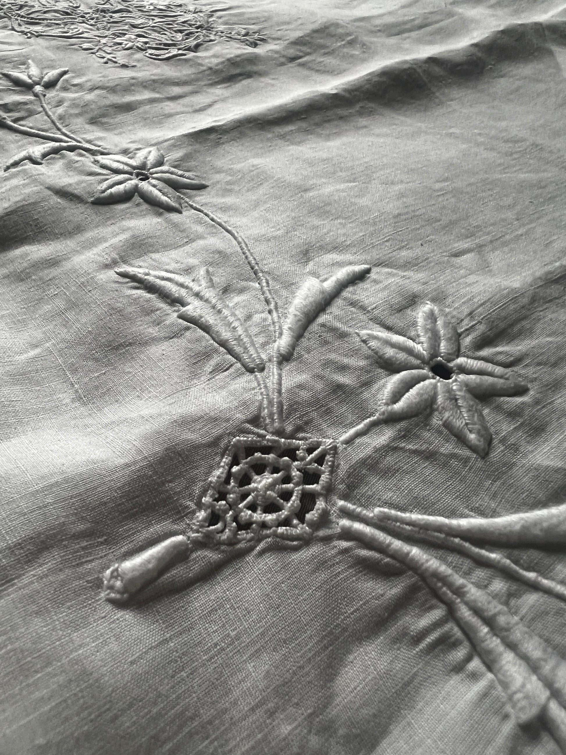 アンティーク刺繍ならではの清らかな雰囲気をお楽しみいただける一枚です