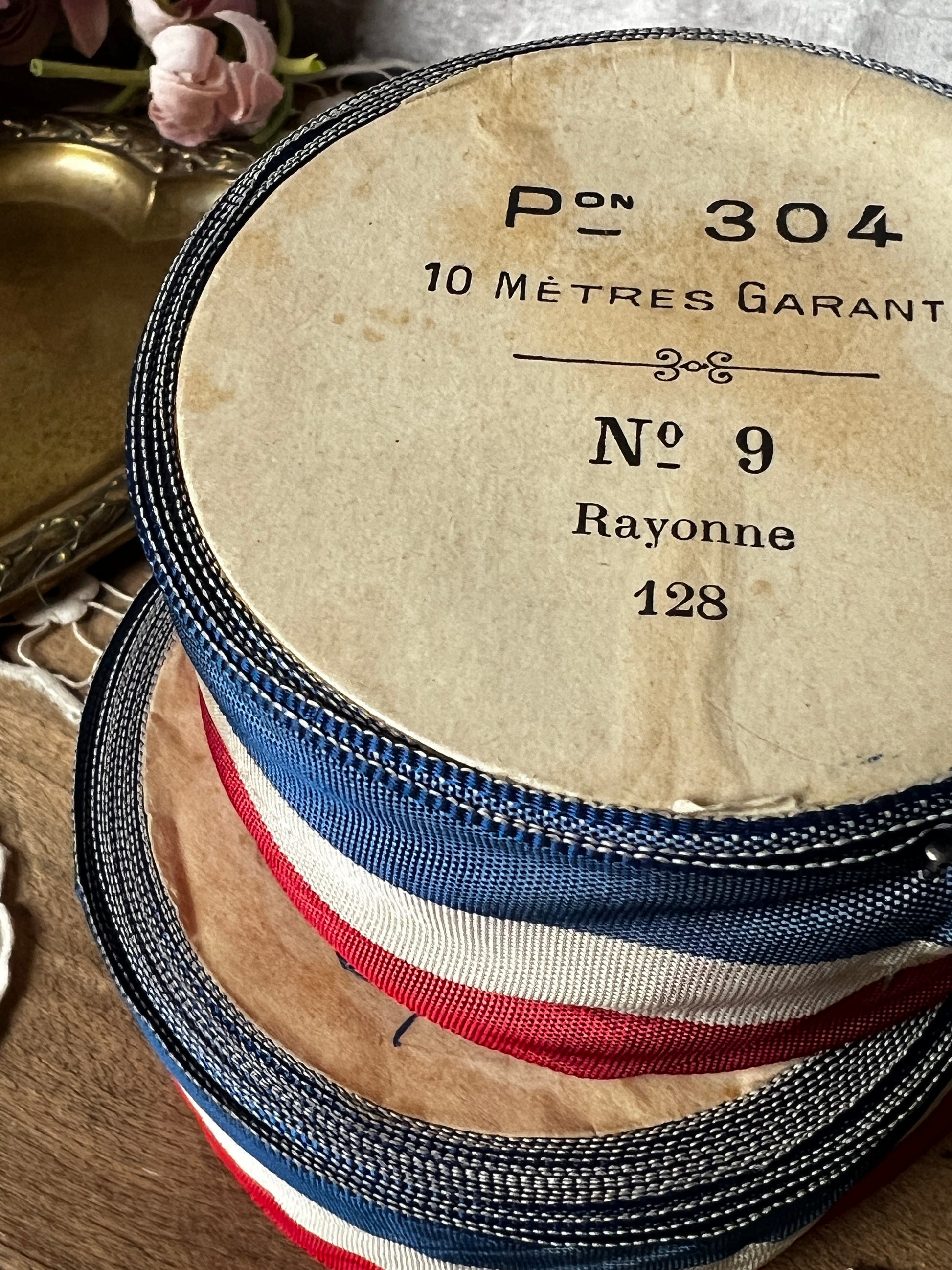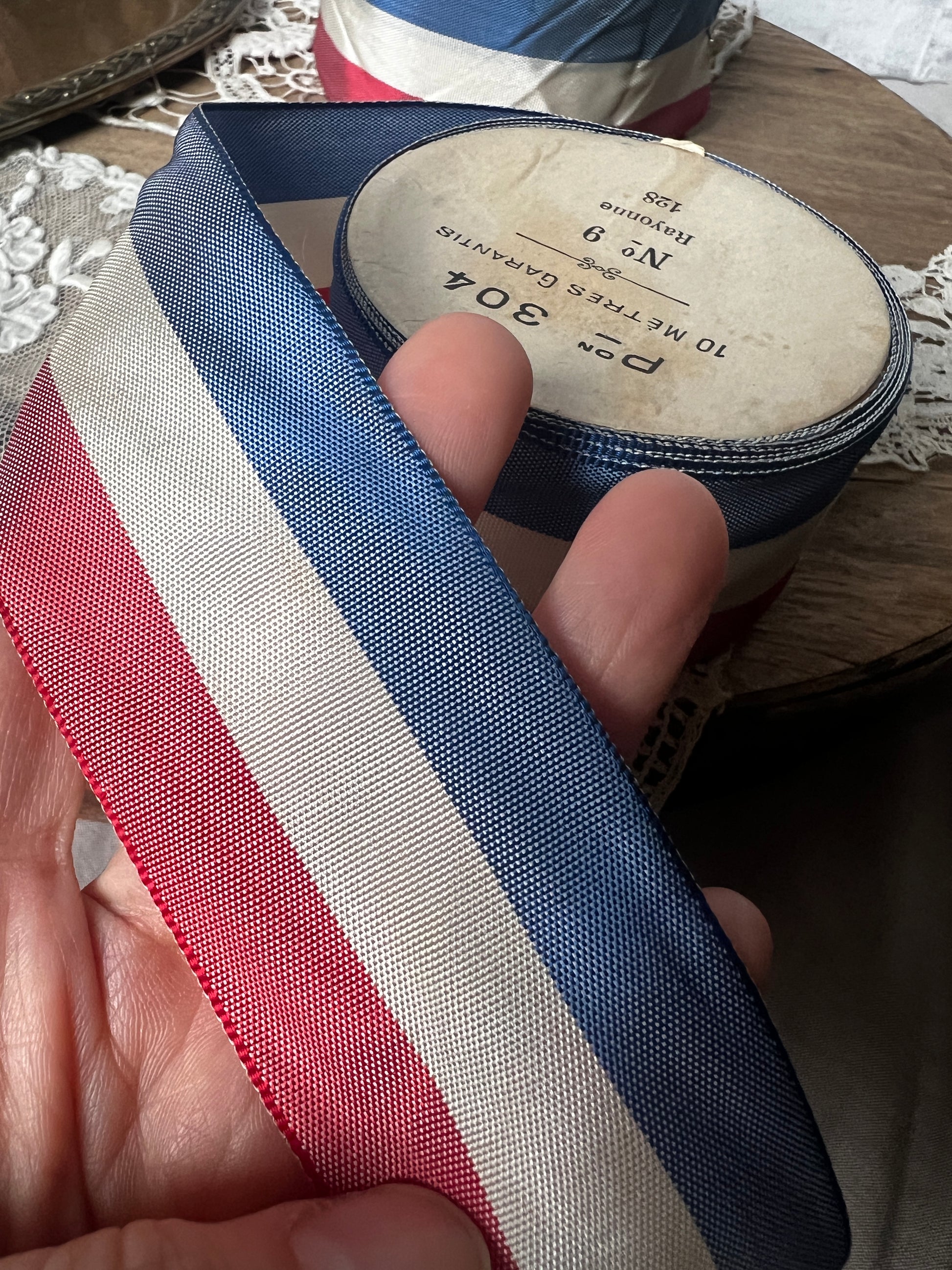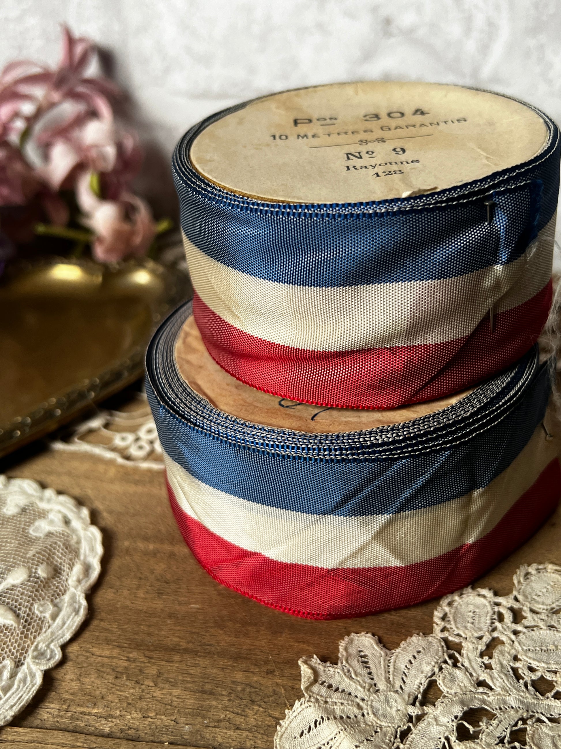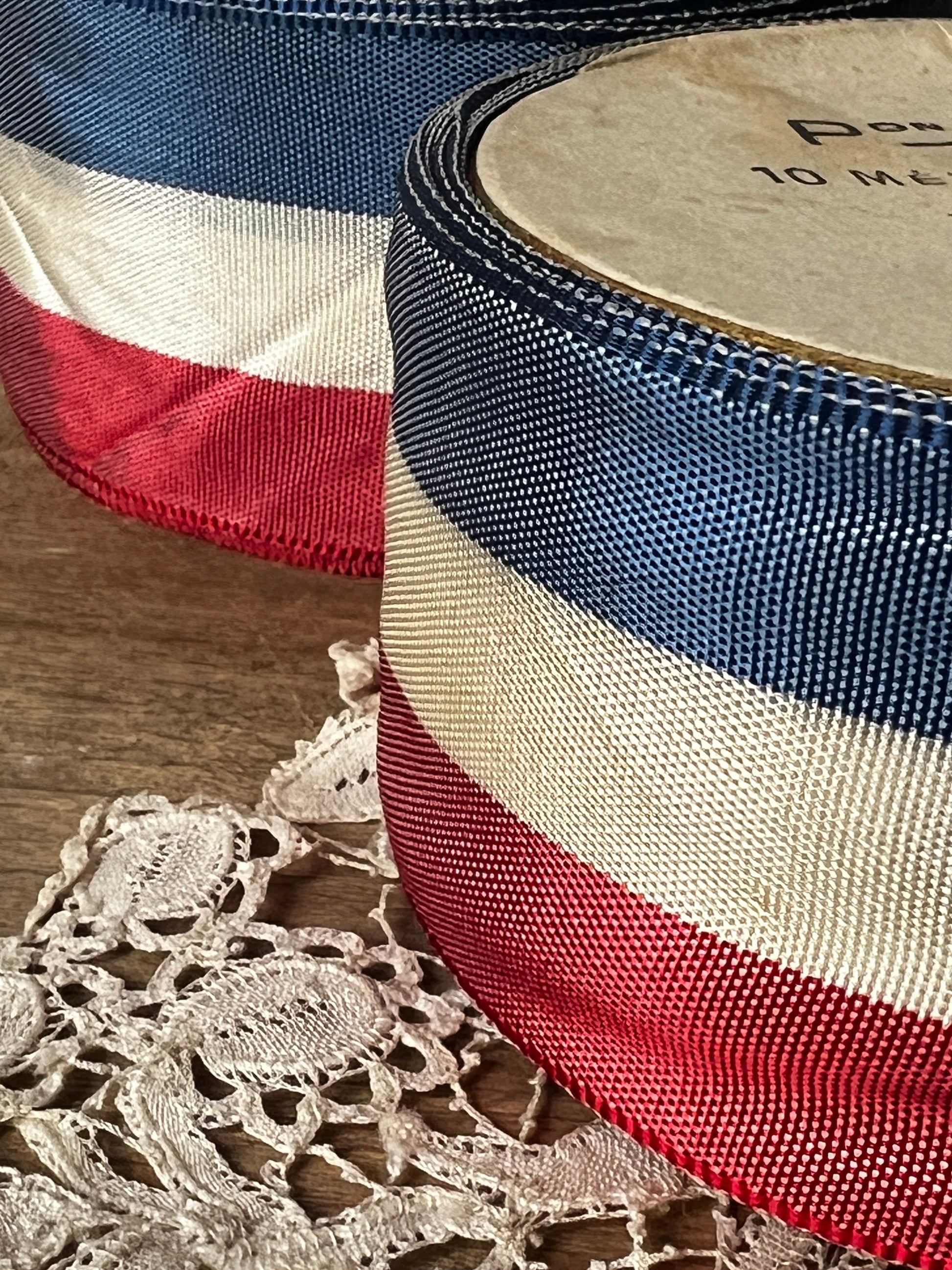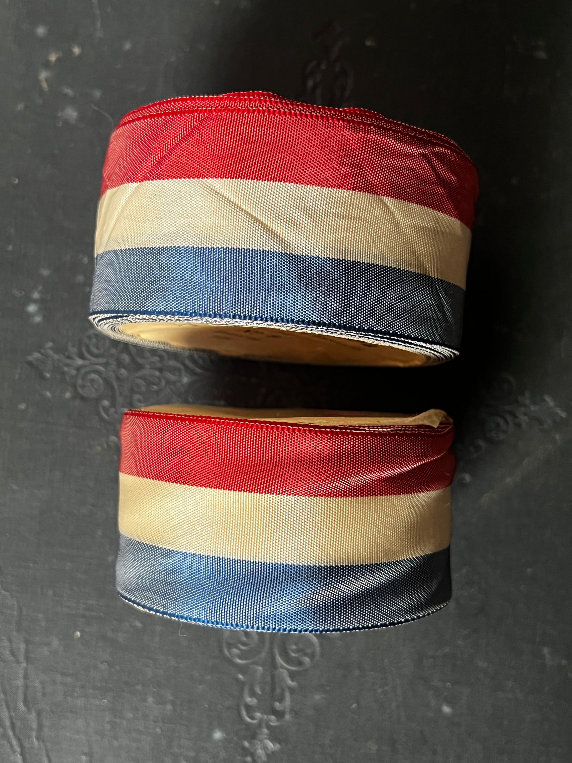 くすんだトーンがどこかノスタルジックな雰囲気を漂わせる、トリコロールカラーのリボン2巻きセットです
