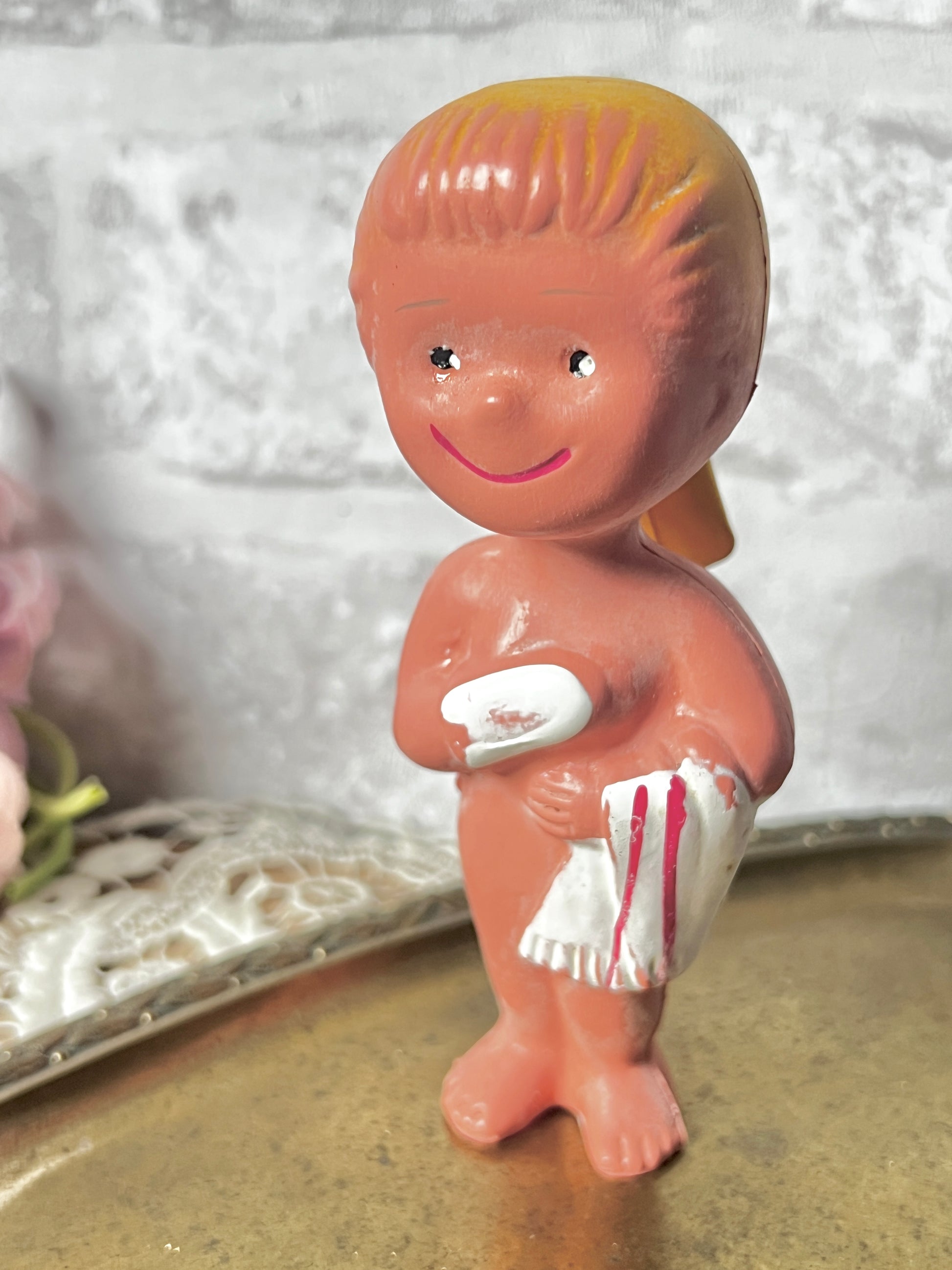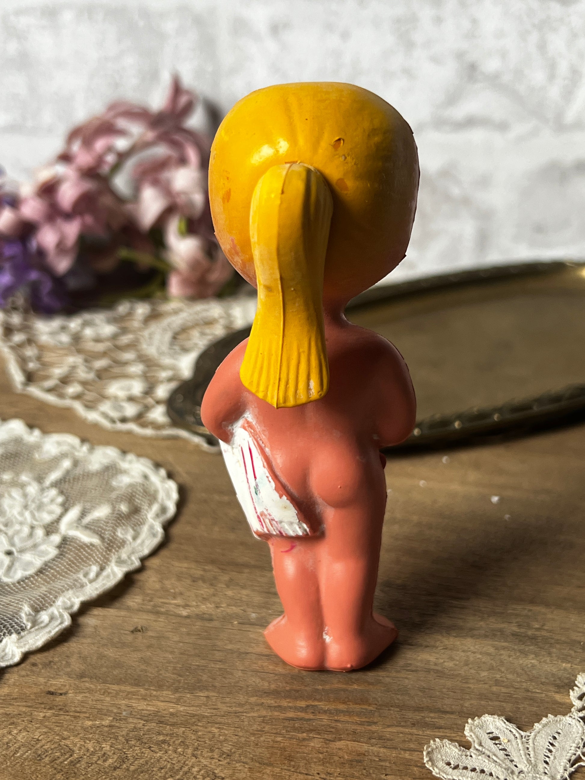 ボトルプッペはポニーテールの女の子をかたどった愛らしいデザインで、ポニーテール部分が取り外し可能となっており、この穴からオードコロンを注ぎ入れて使用する仕様になっています