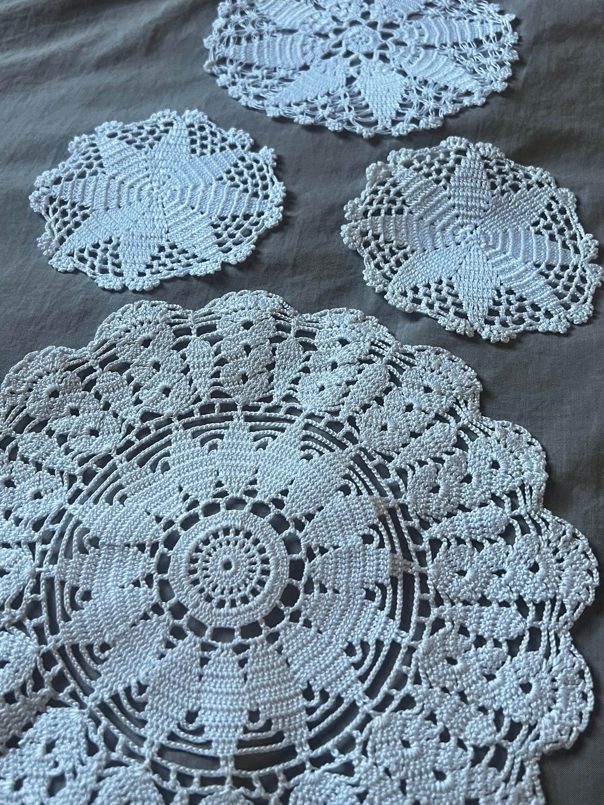 手編みならではの温かみが感じられるドイリー4枚セットです