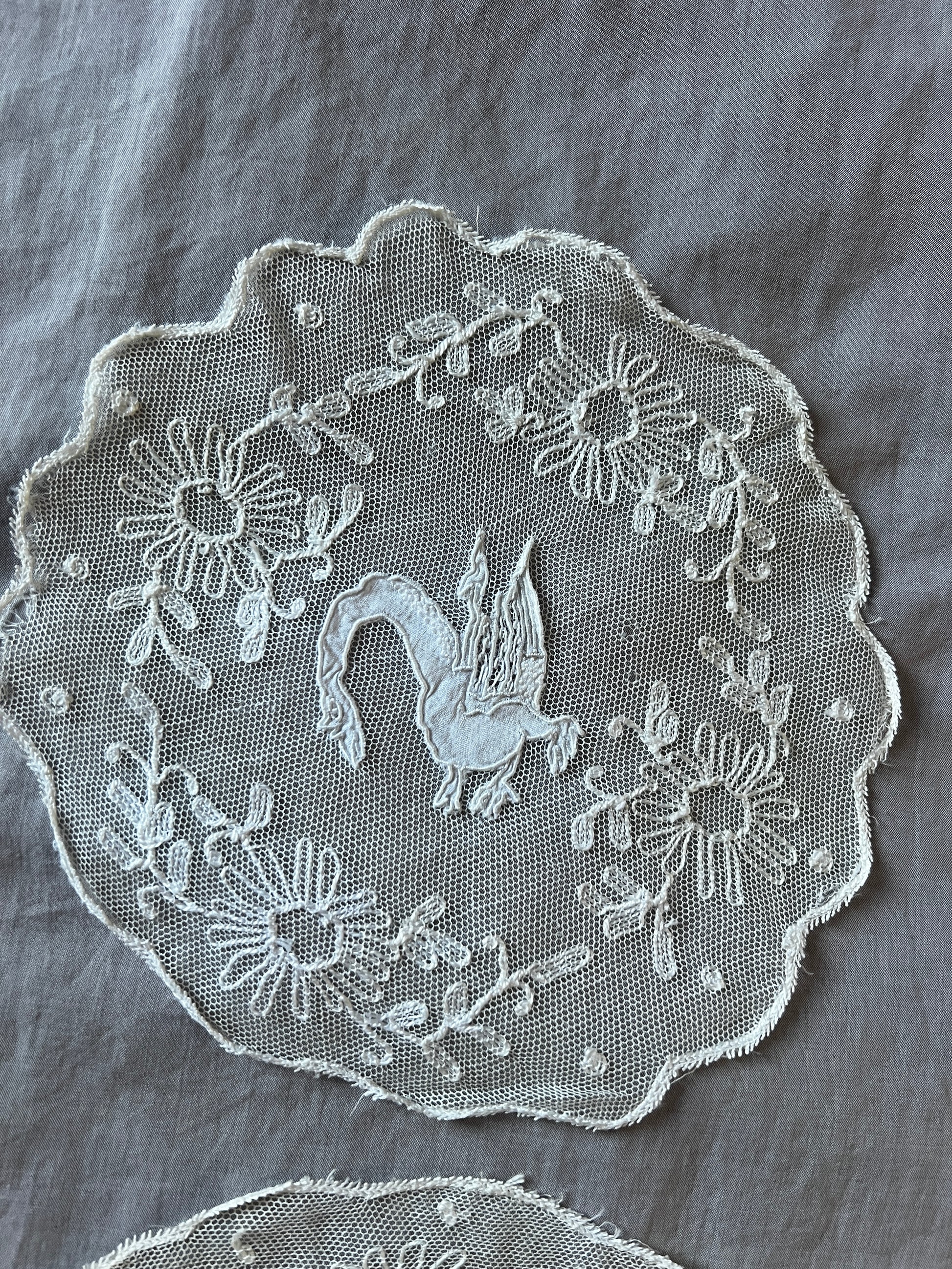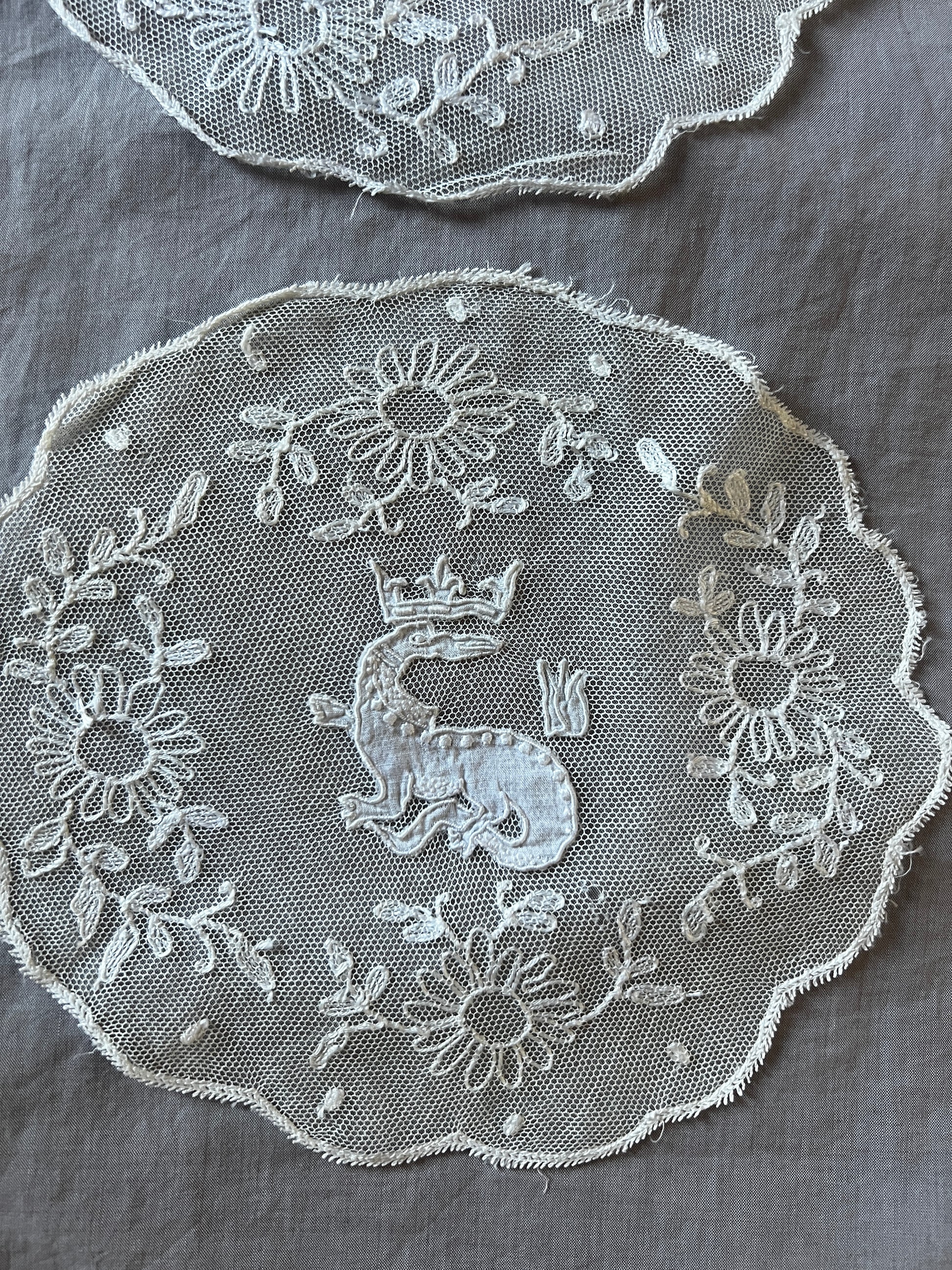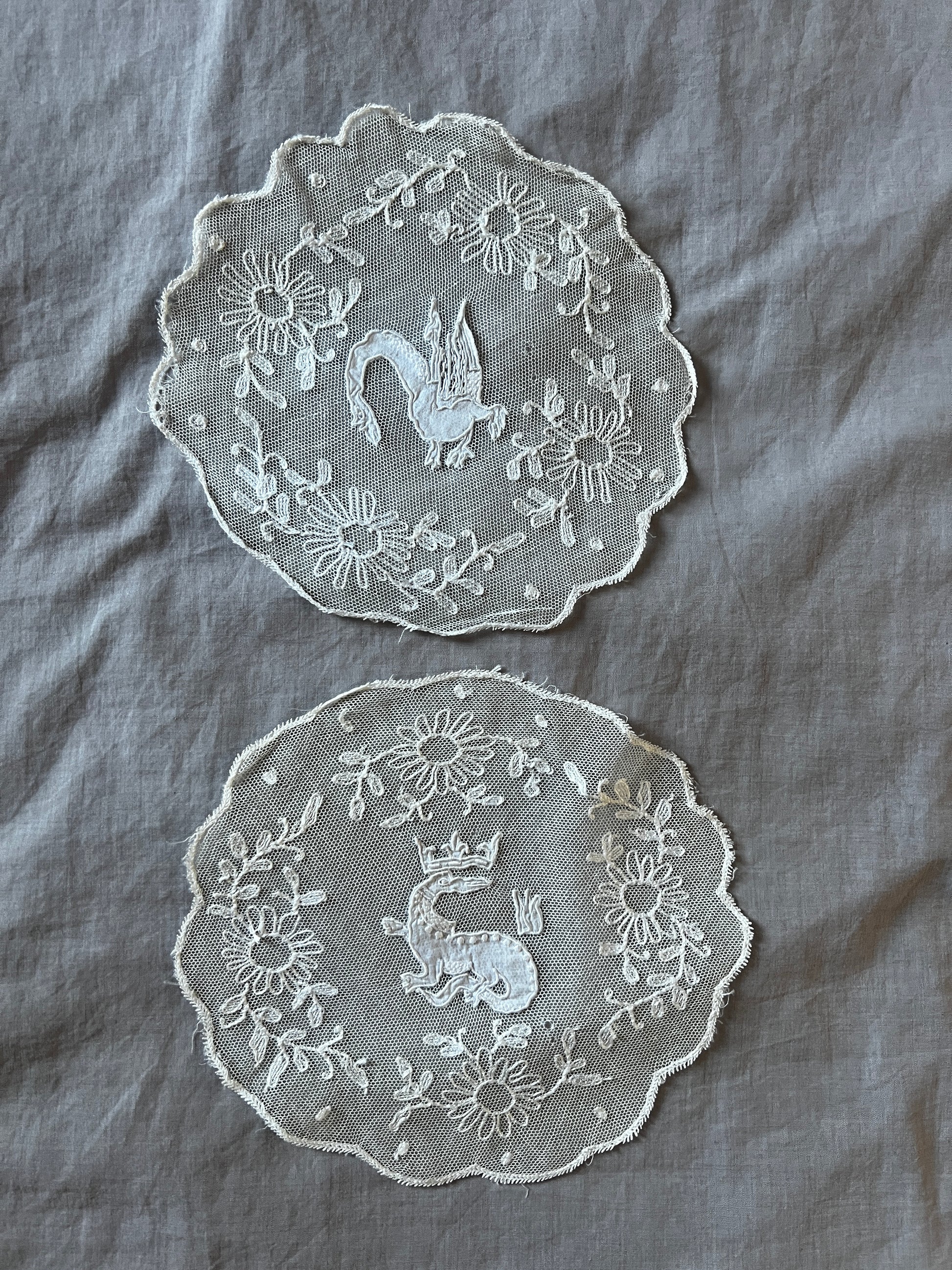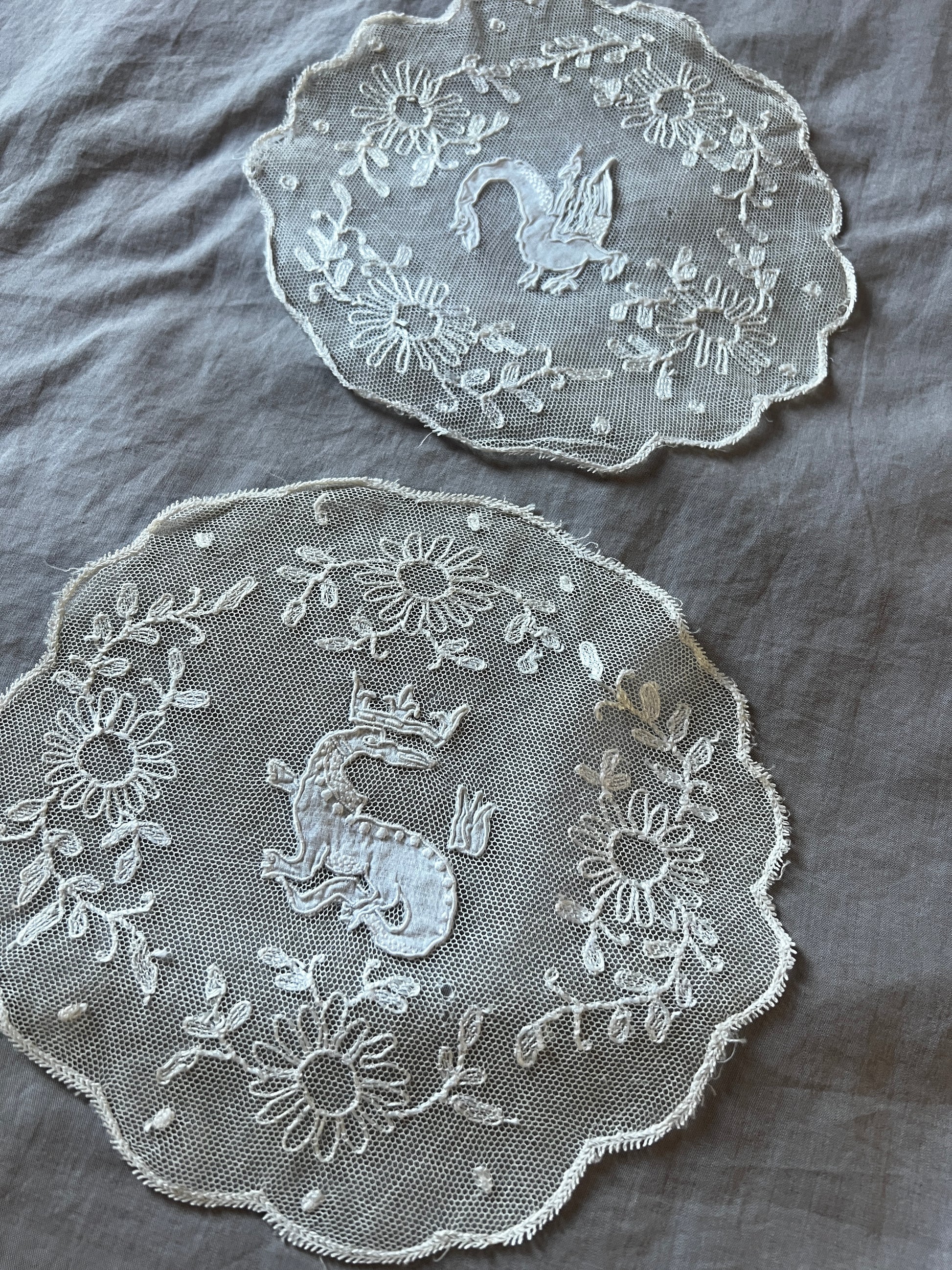 チュール刺繍レースのドイリー2枚セットです