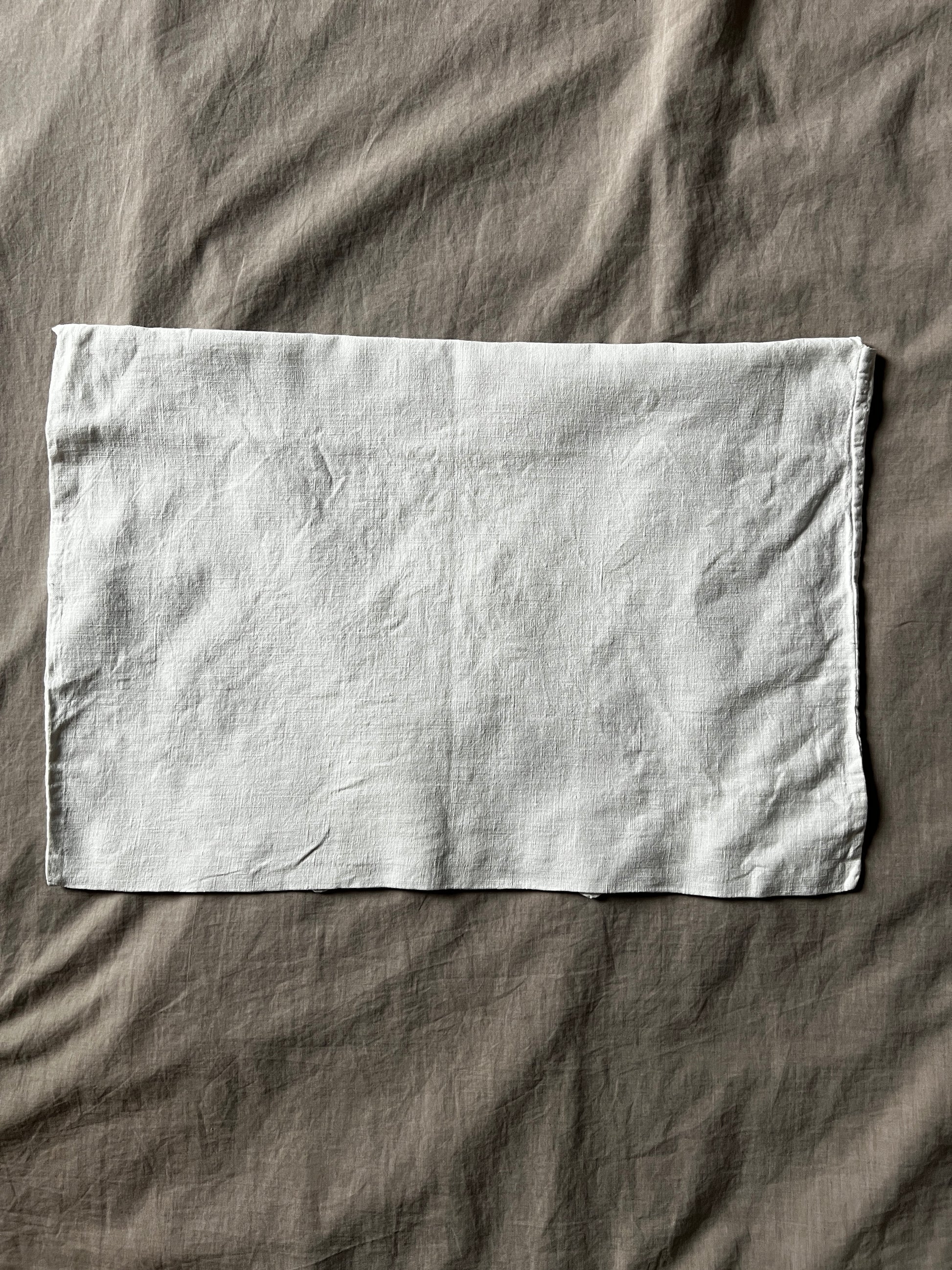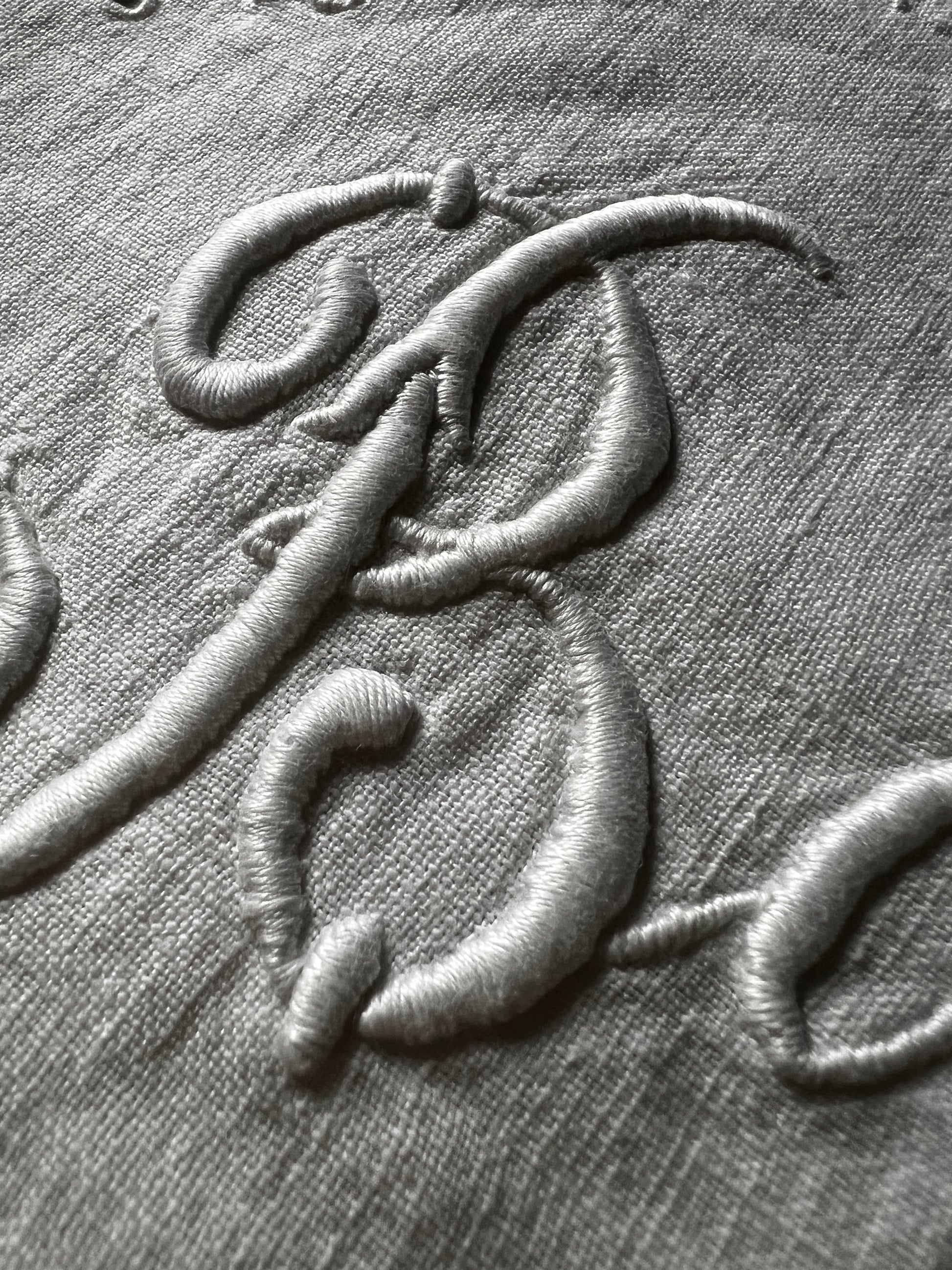 モノグラム刺繍と数字の刺繍が施されていることから、寄宿舎などで使われていたのではないかと推測されます