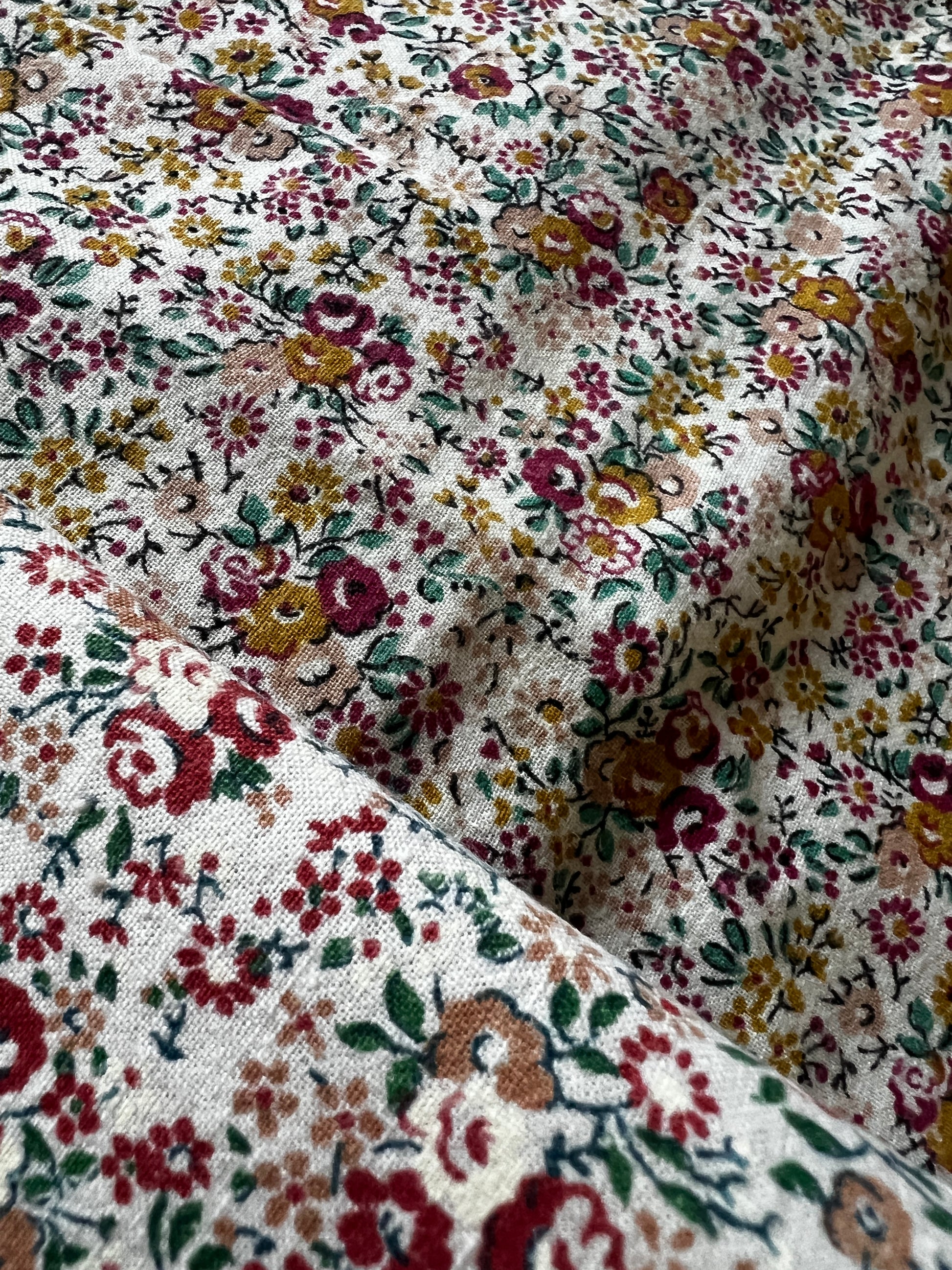 レトロな色合いと素朴な小花柄が温かみを感じさせ、ハンドメイド作品に取り入れれば優しい印象に仕上がります