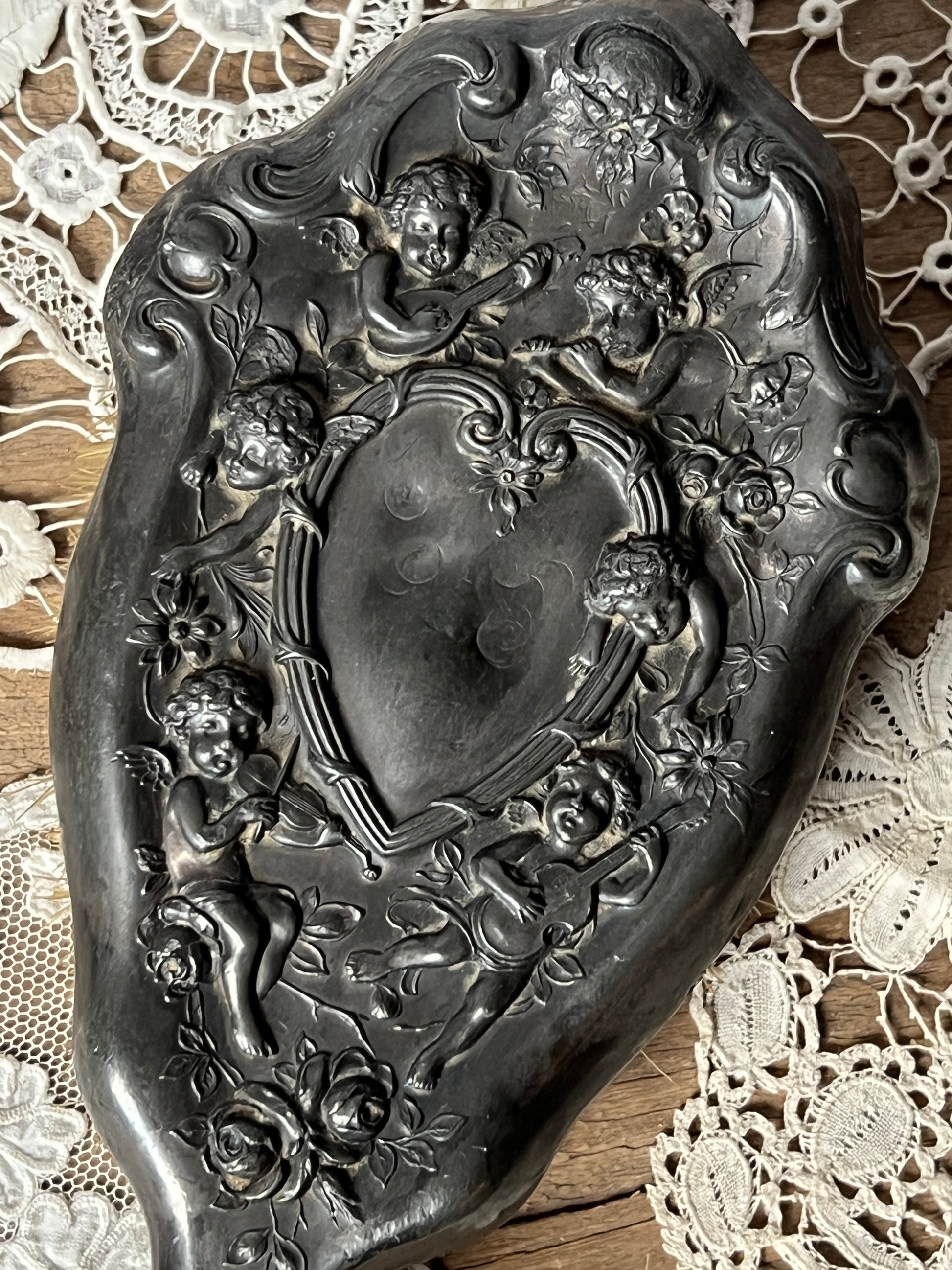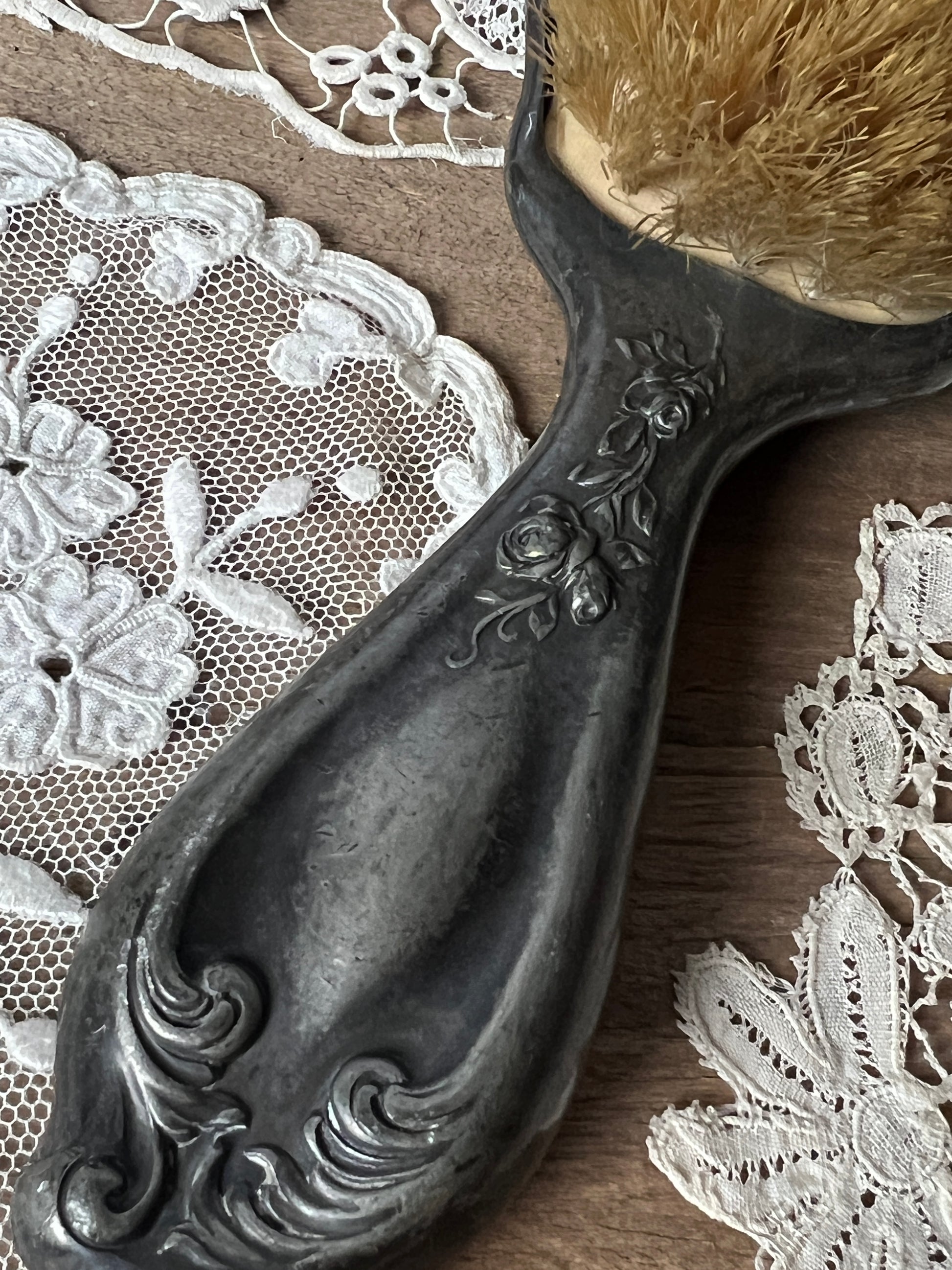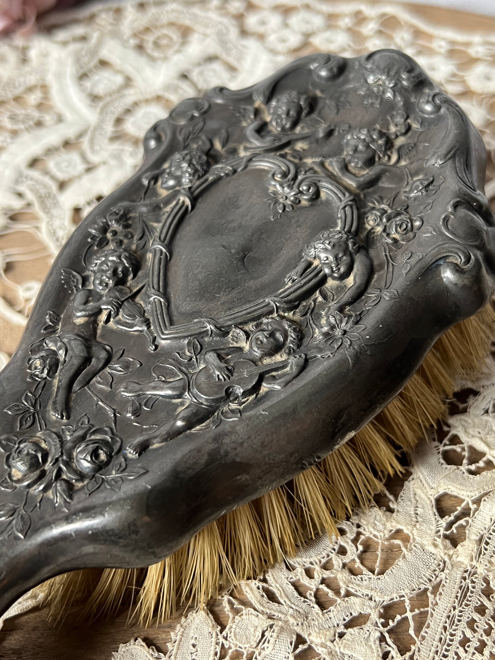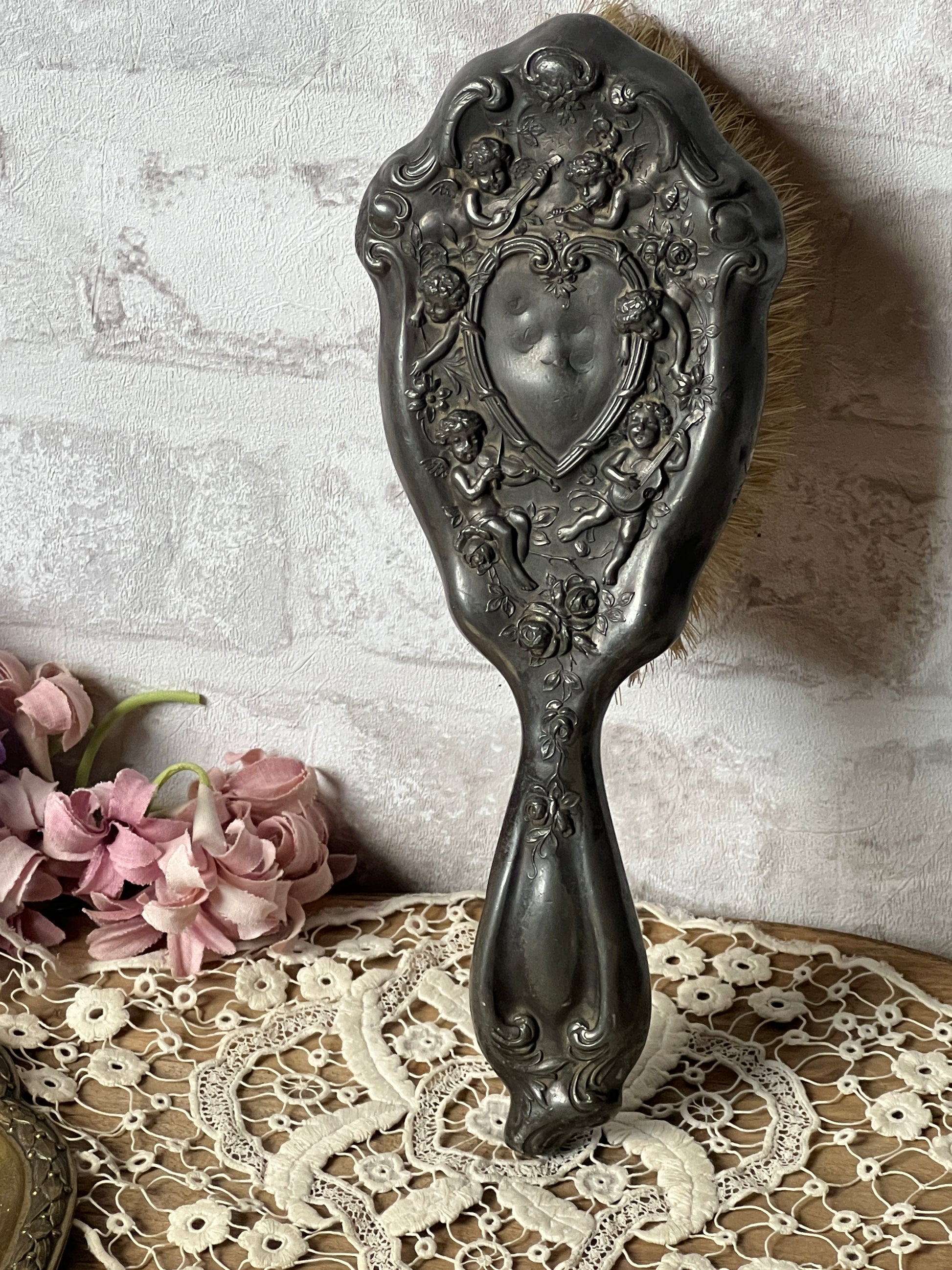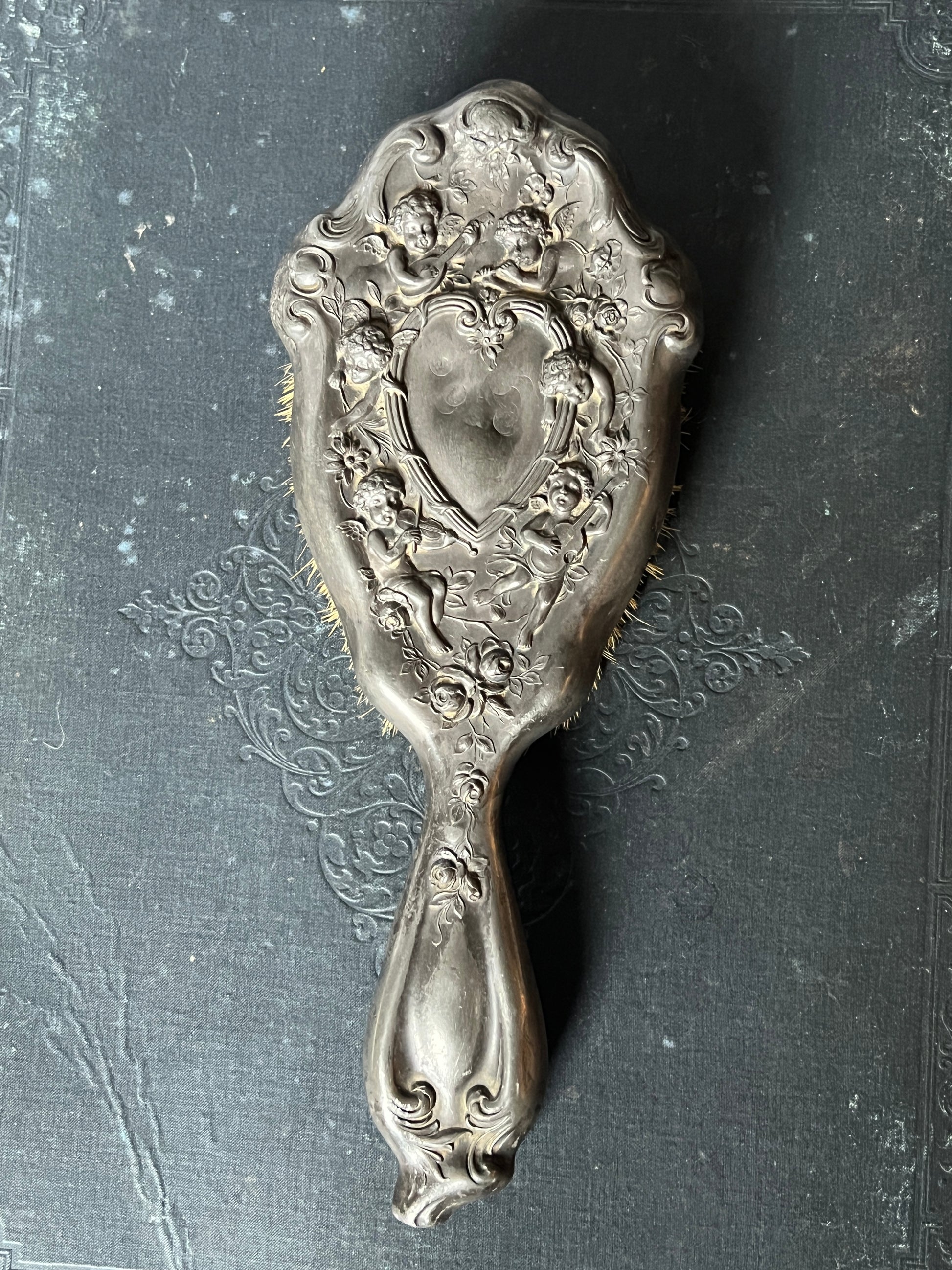 ヴィクトリアン時代の優雅な様式の繊細な浮き彫り細工が施されたアンティーク・ヘアブラシです