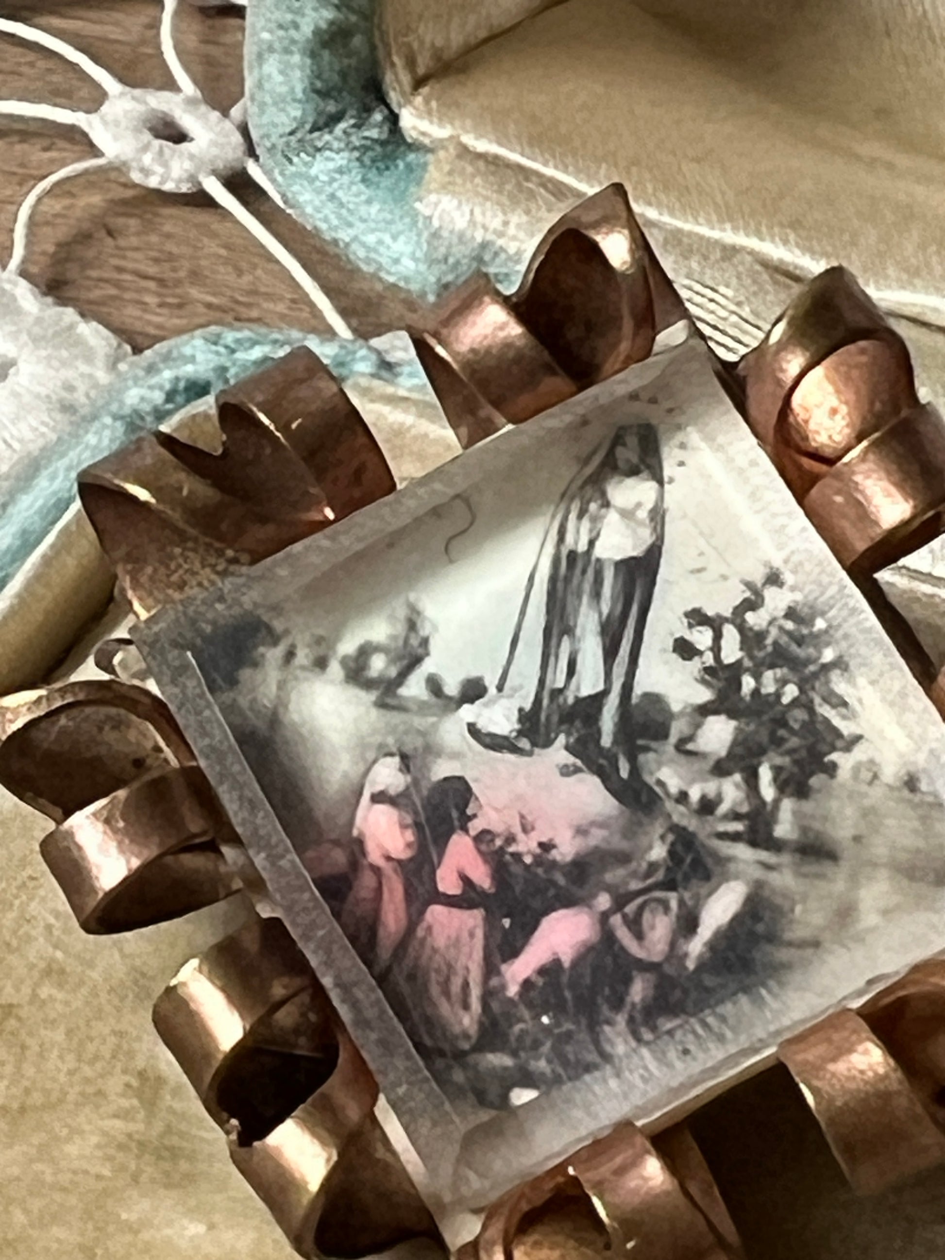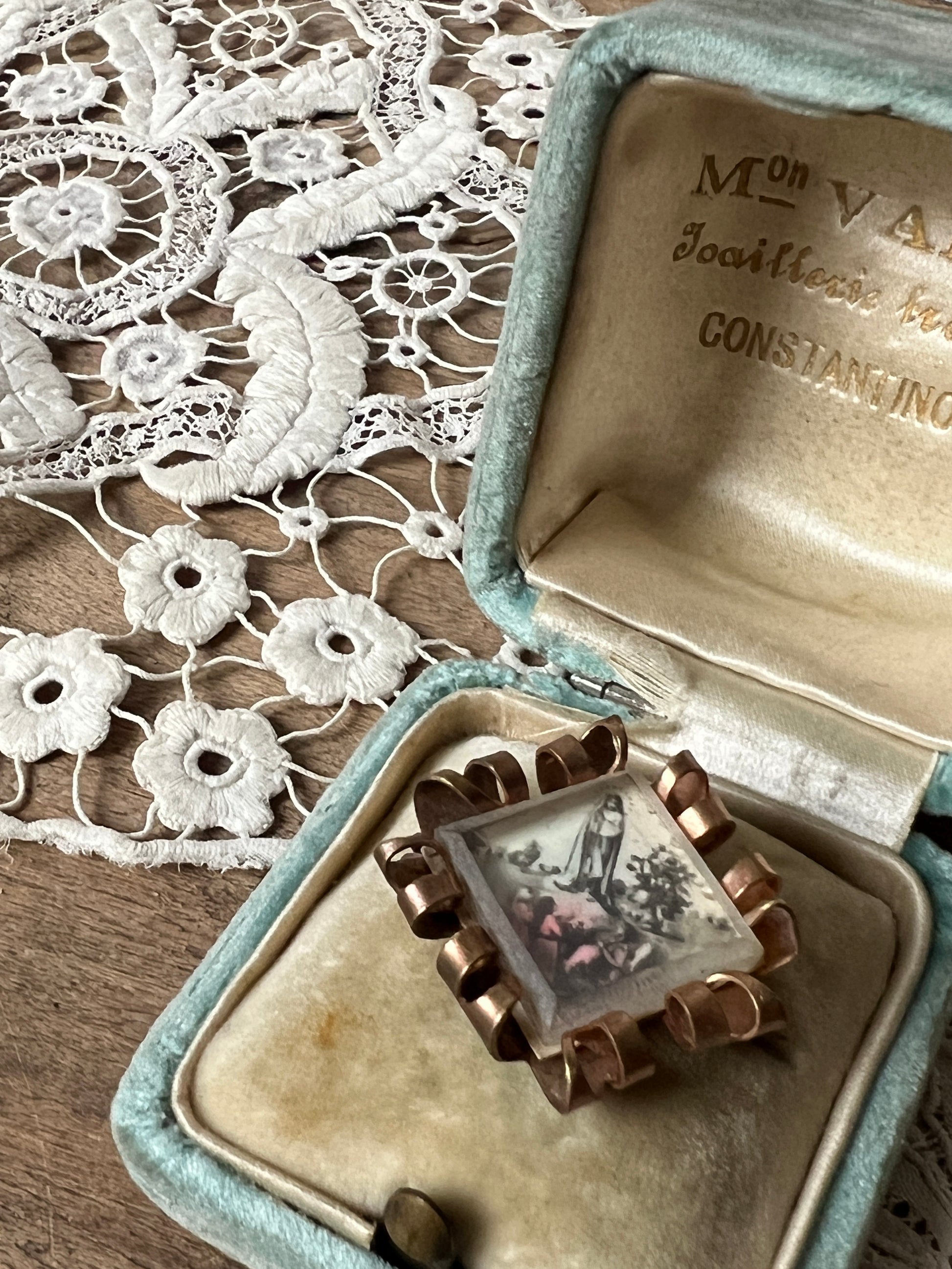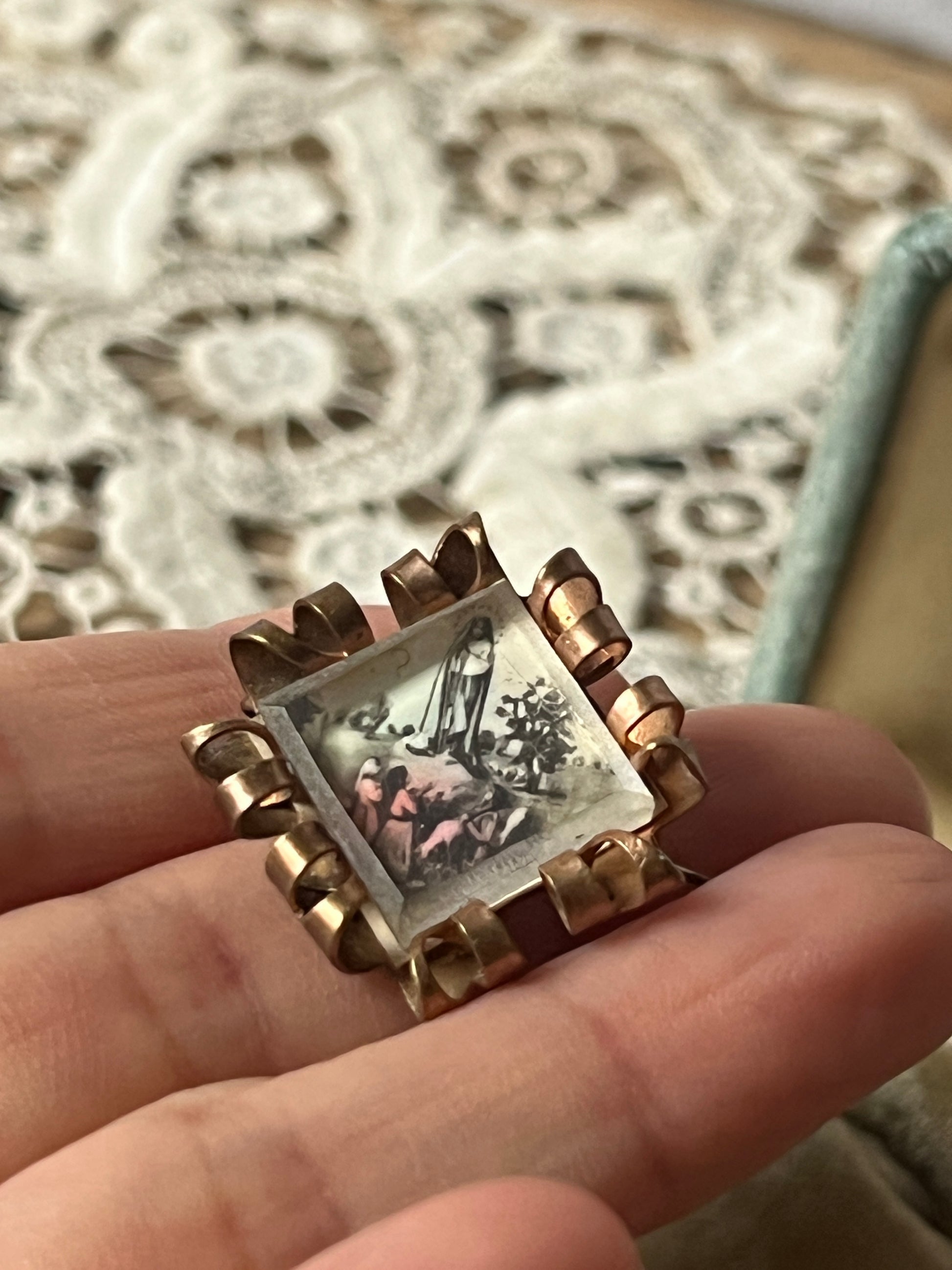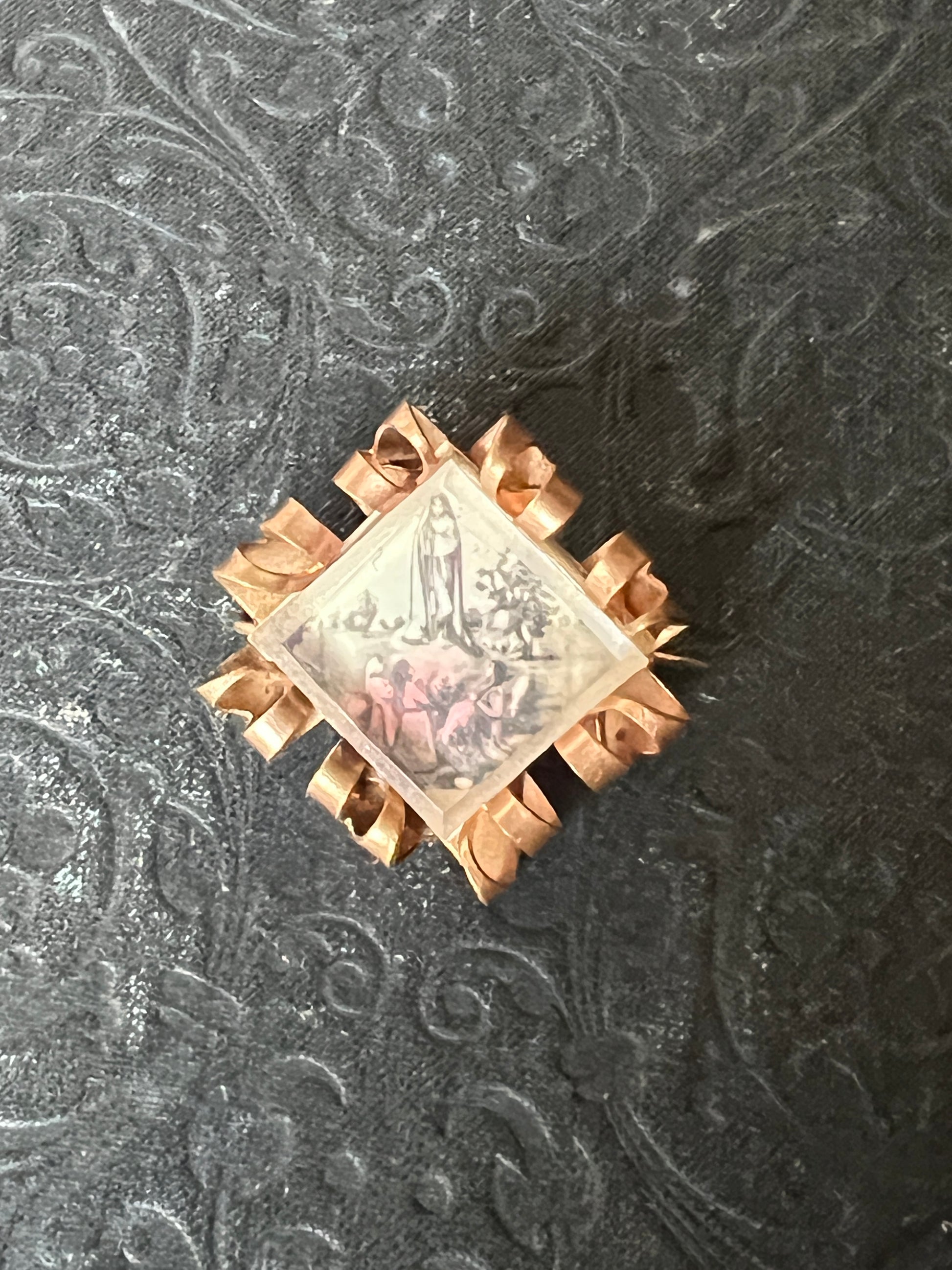 聖母出現の情景が描かれたアンティークブローチです