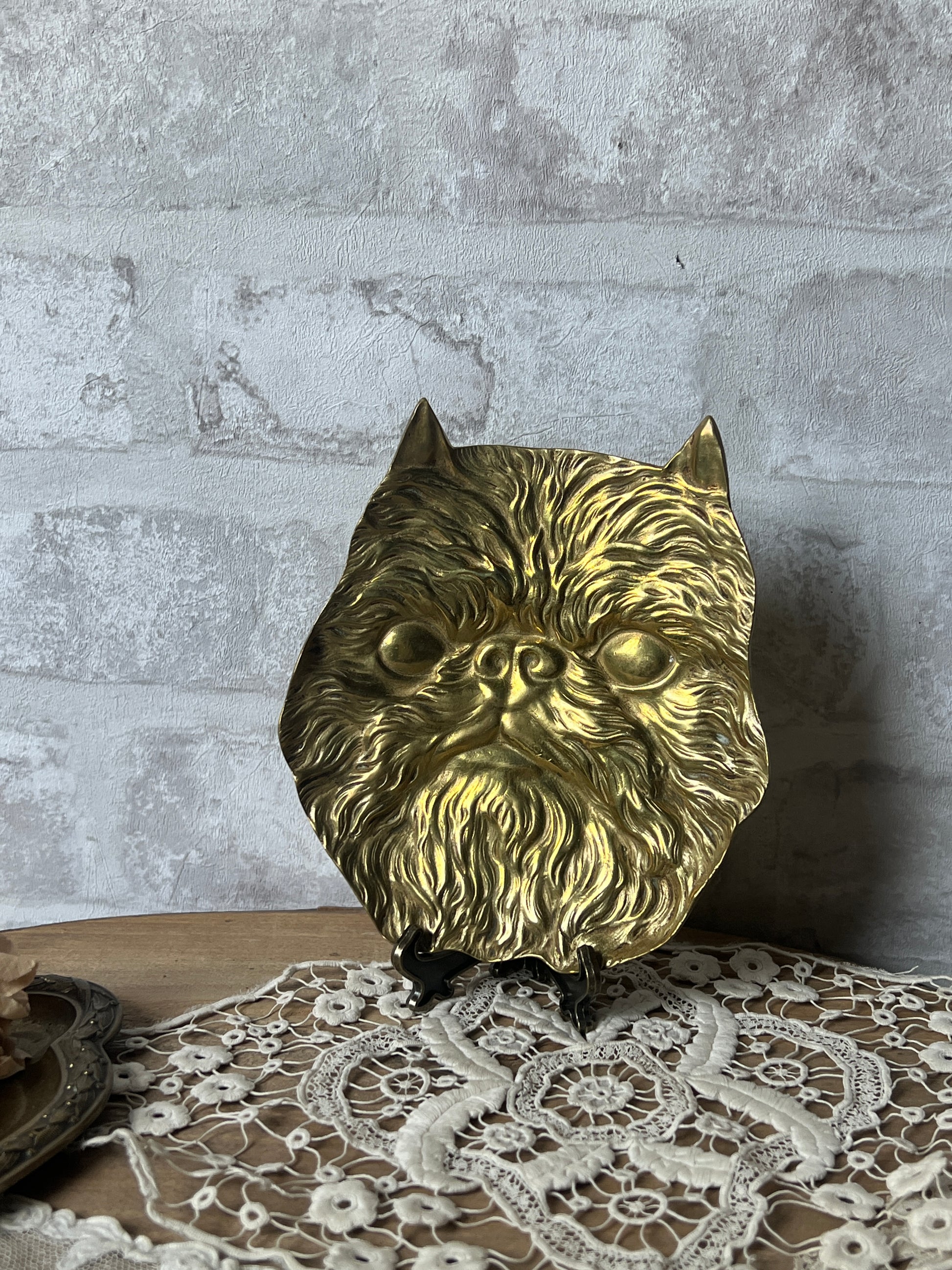 ユーモラスで愛嬌たっぷりな表情が目を引く真鍮製トレイです