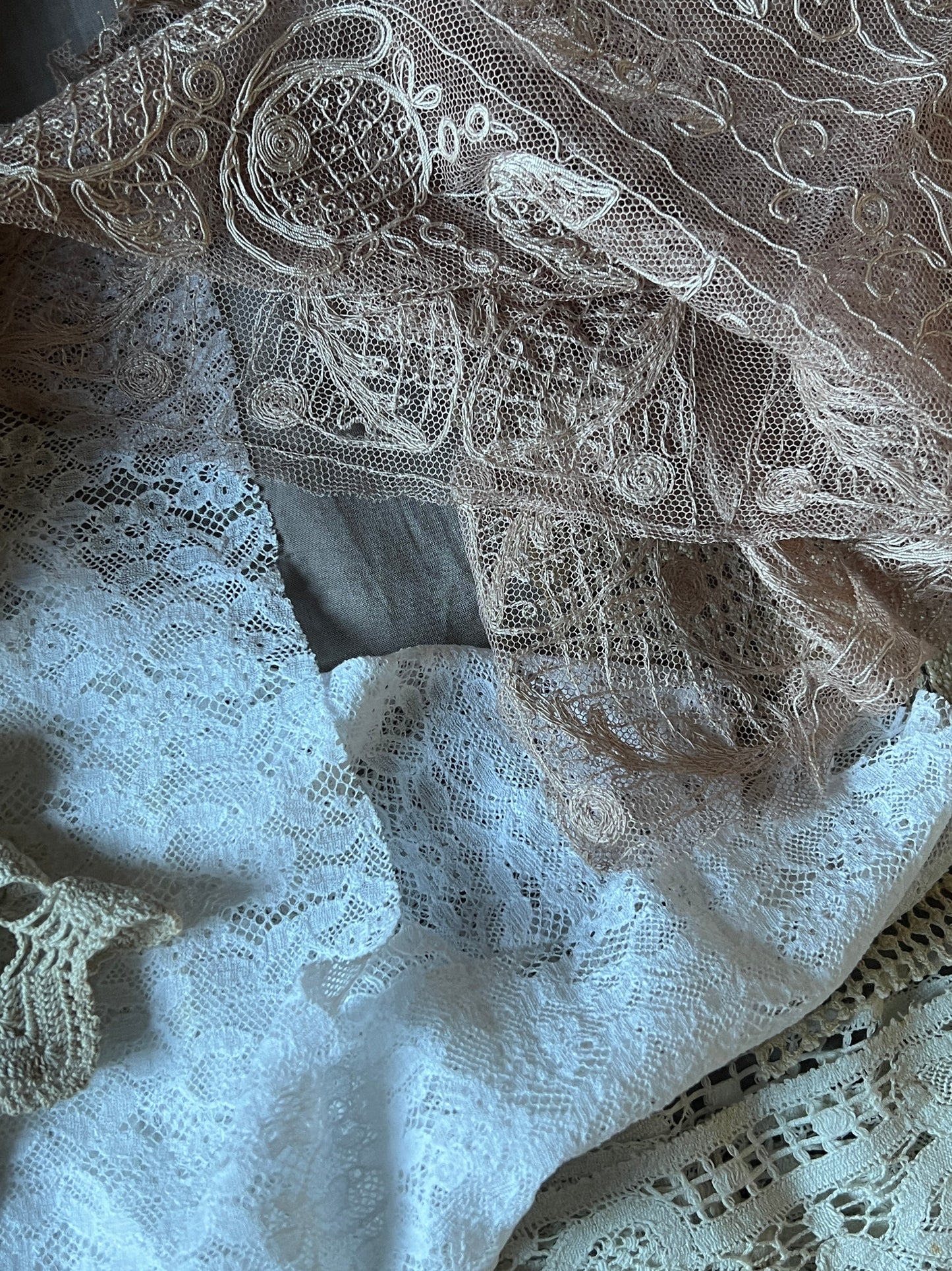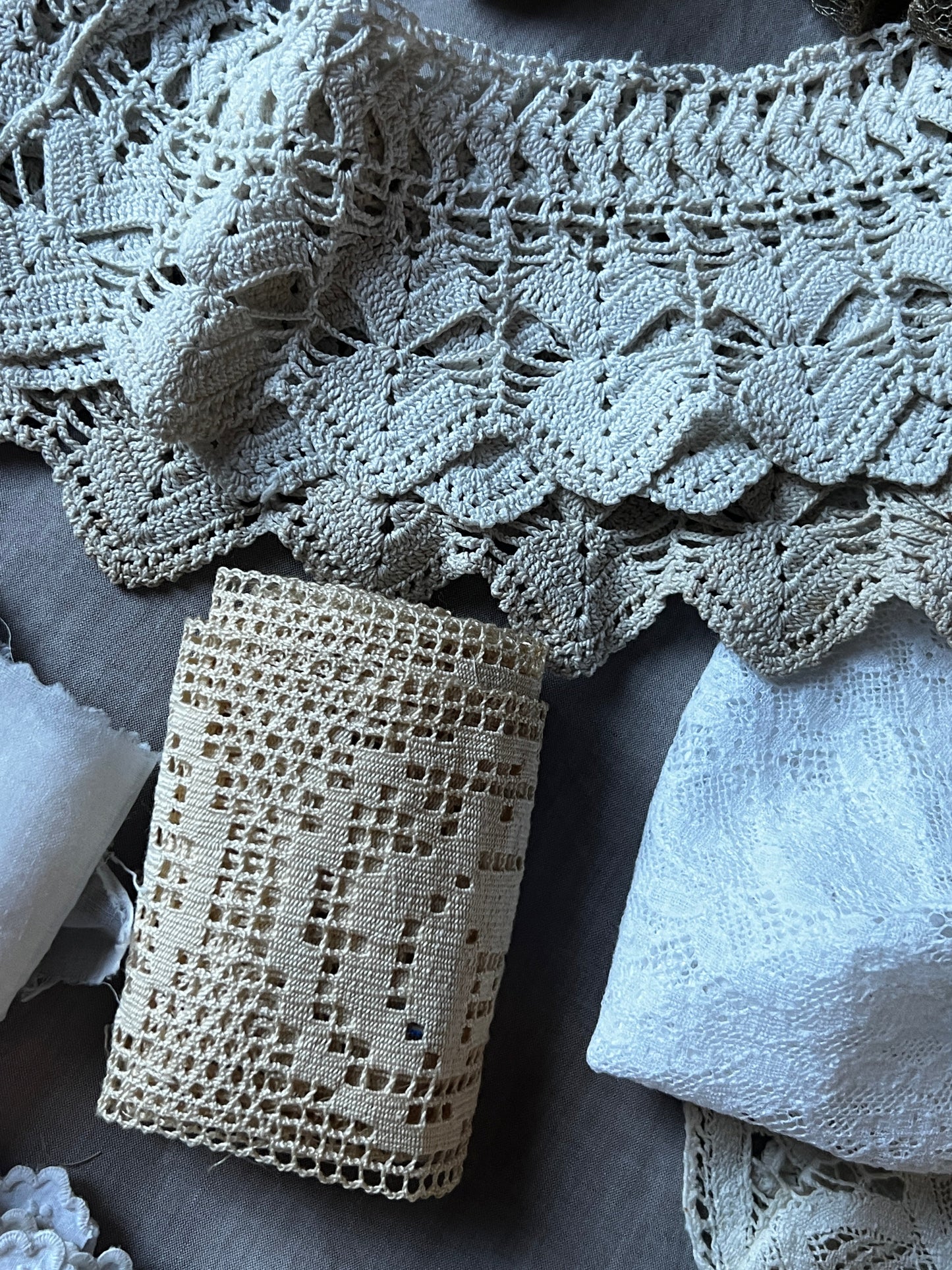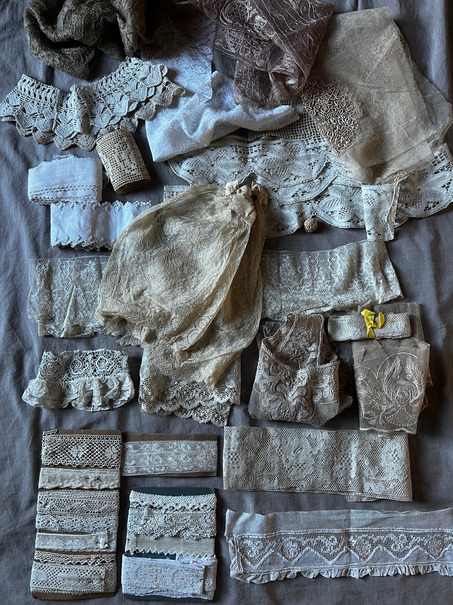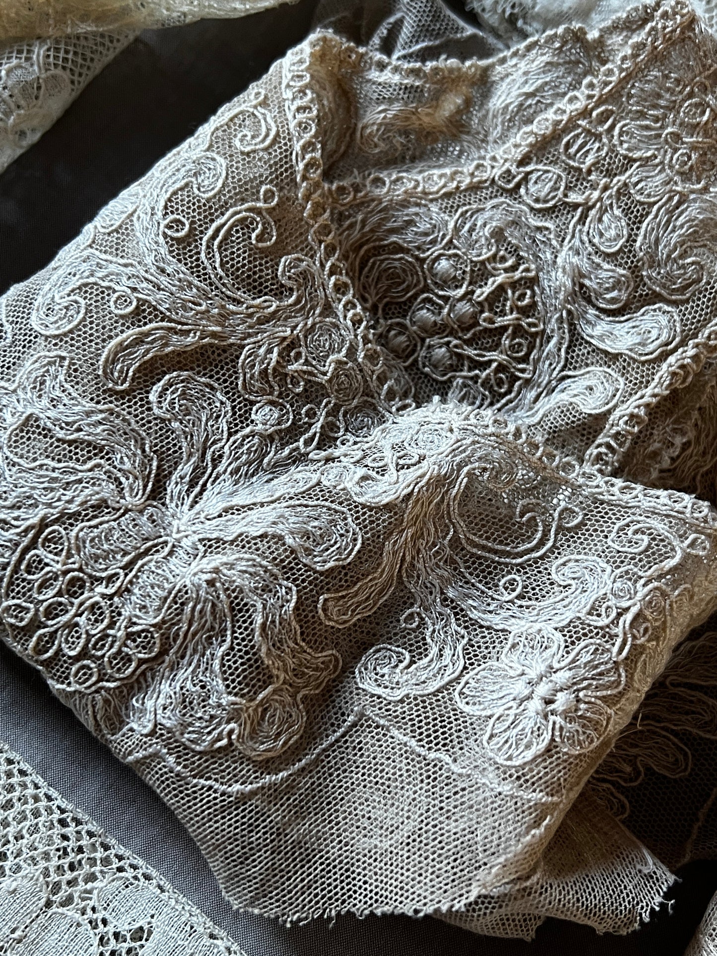 刺繍トリムの端布やパーツなど材料として使えそうなものをいろいろセットにしました